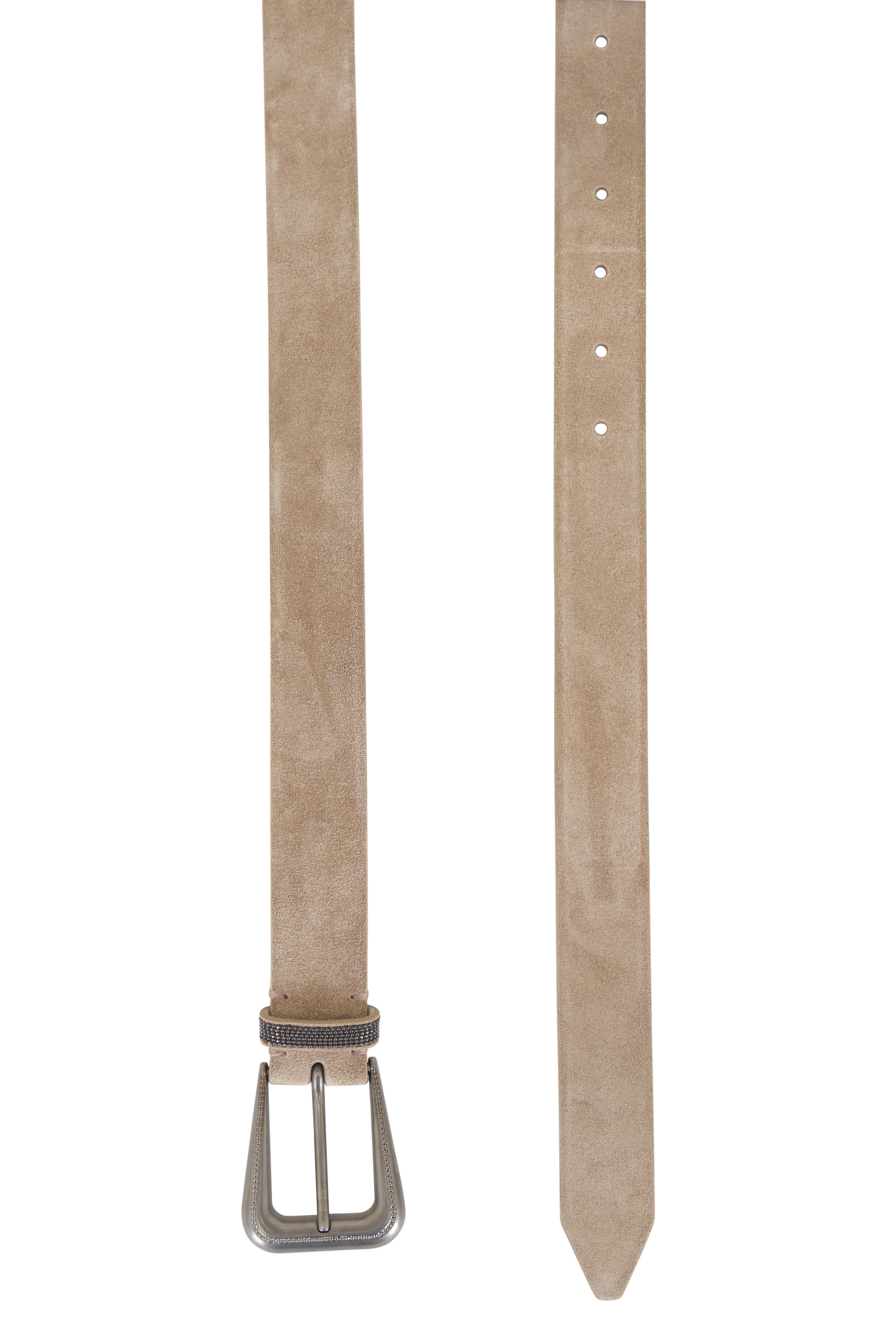 Suede. Squared buckle. Pointed tip. Single loop keeper. Monili detailing. Made in Italy. Width: 30mm.