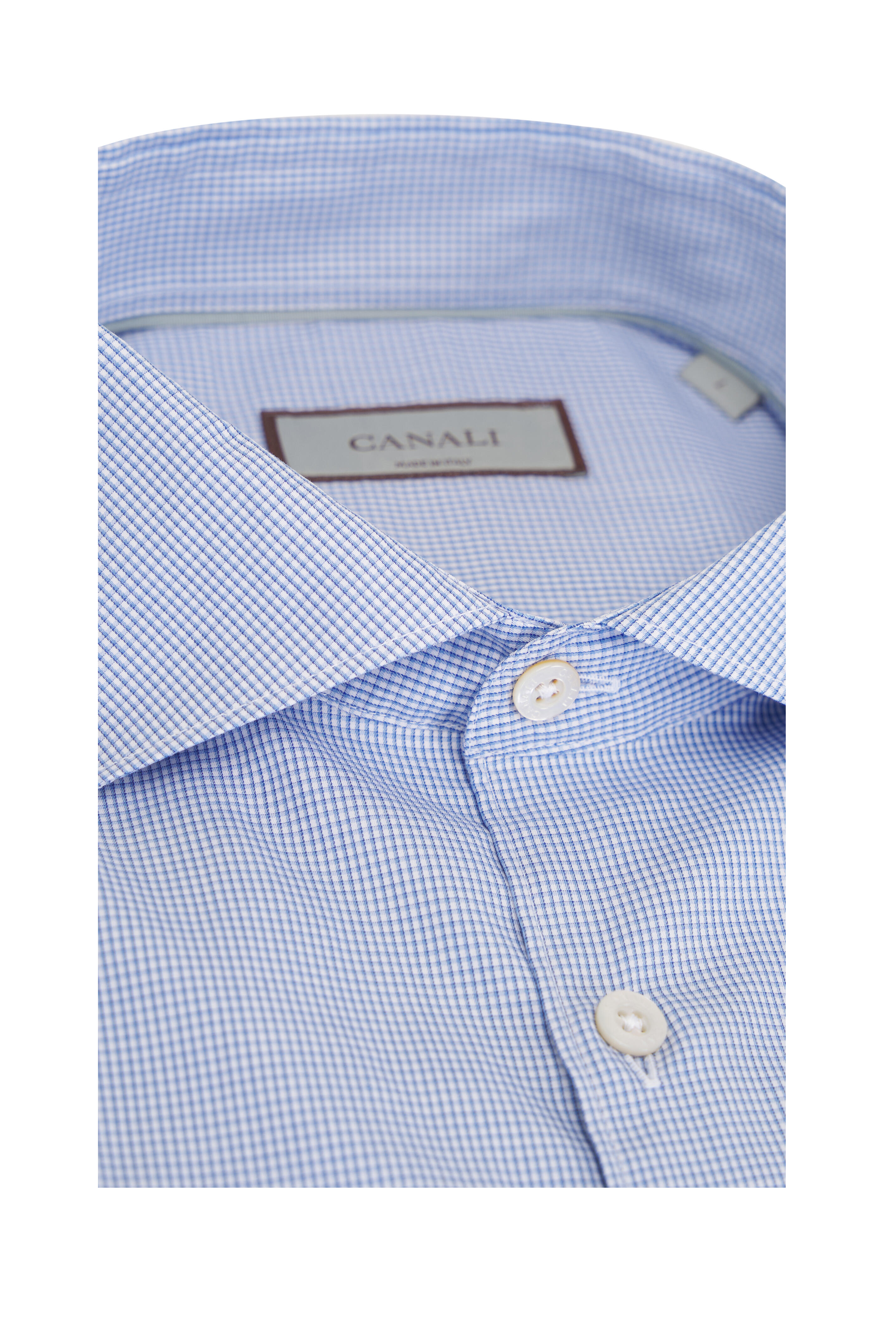 Spread collar. French front button placket. Single button barrel cuffs. Made in Italy. 100% cotton. Machine wash.