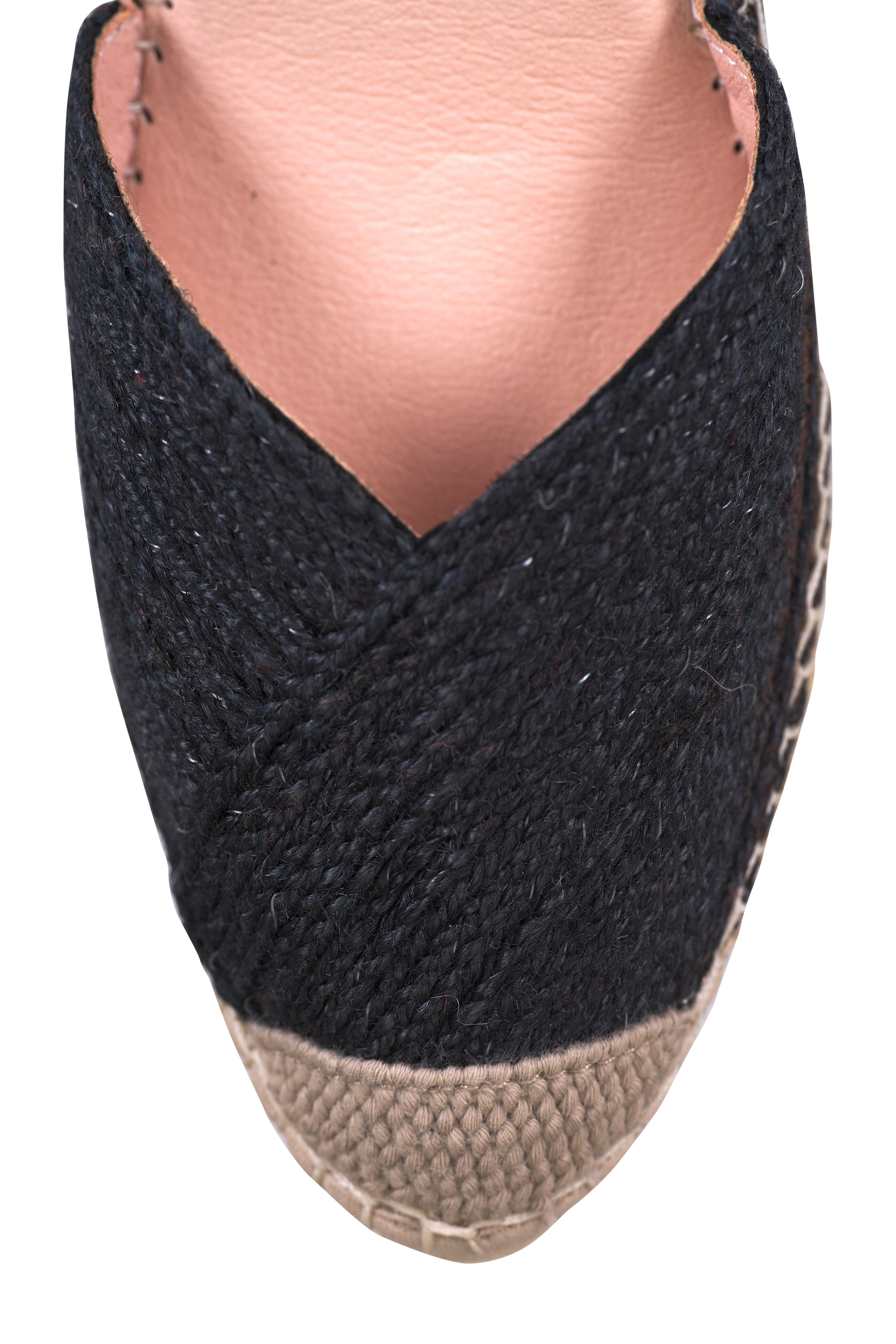 - Braided raffia upper