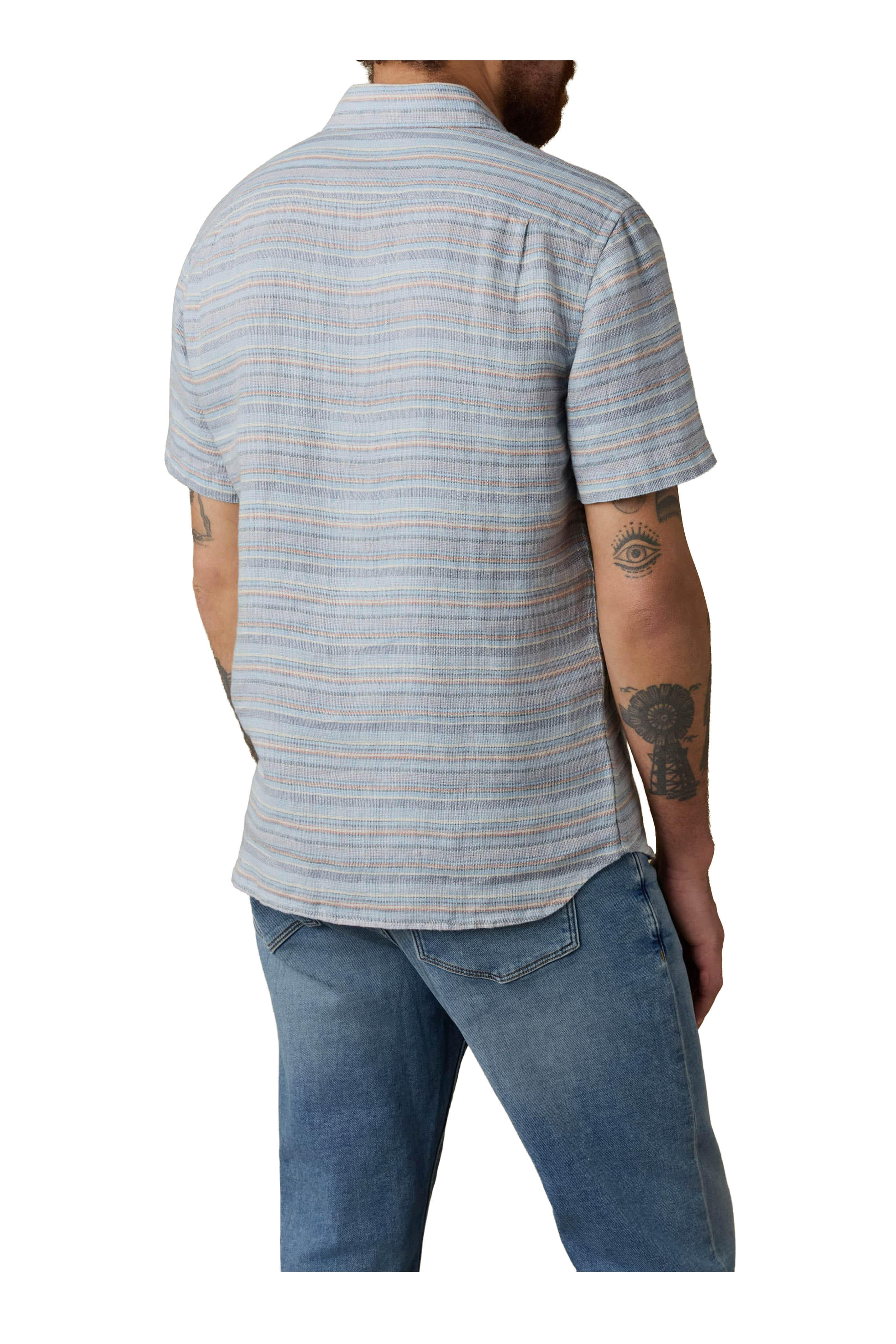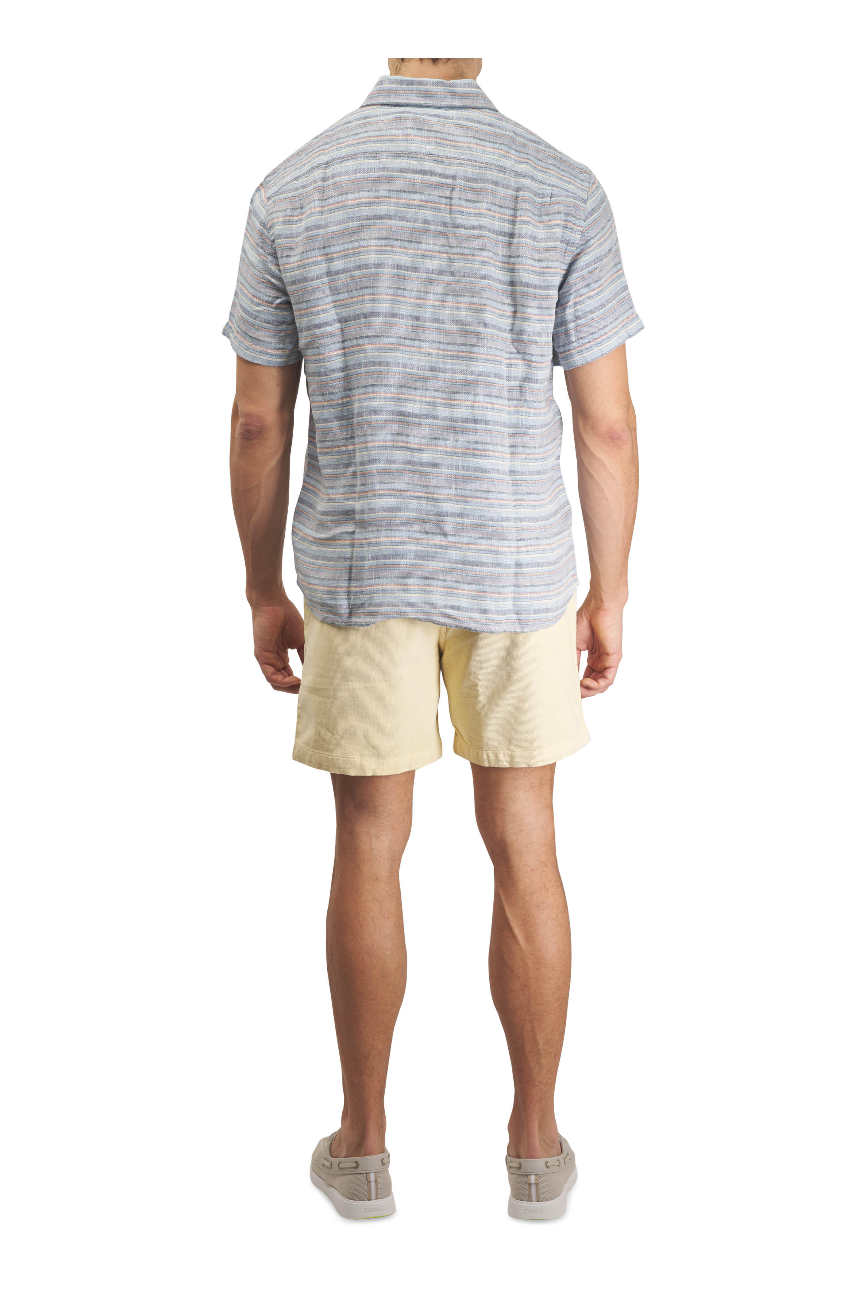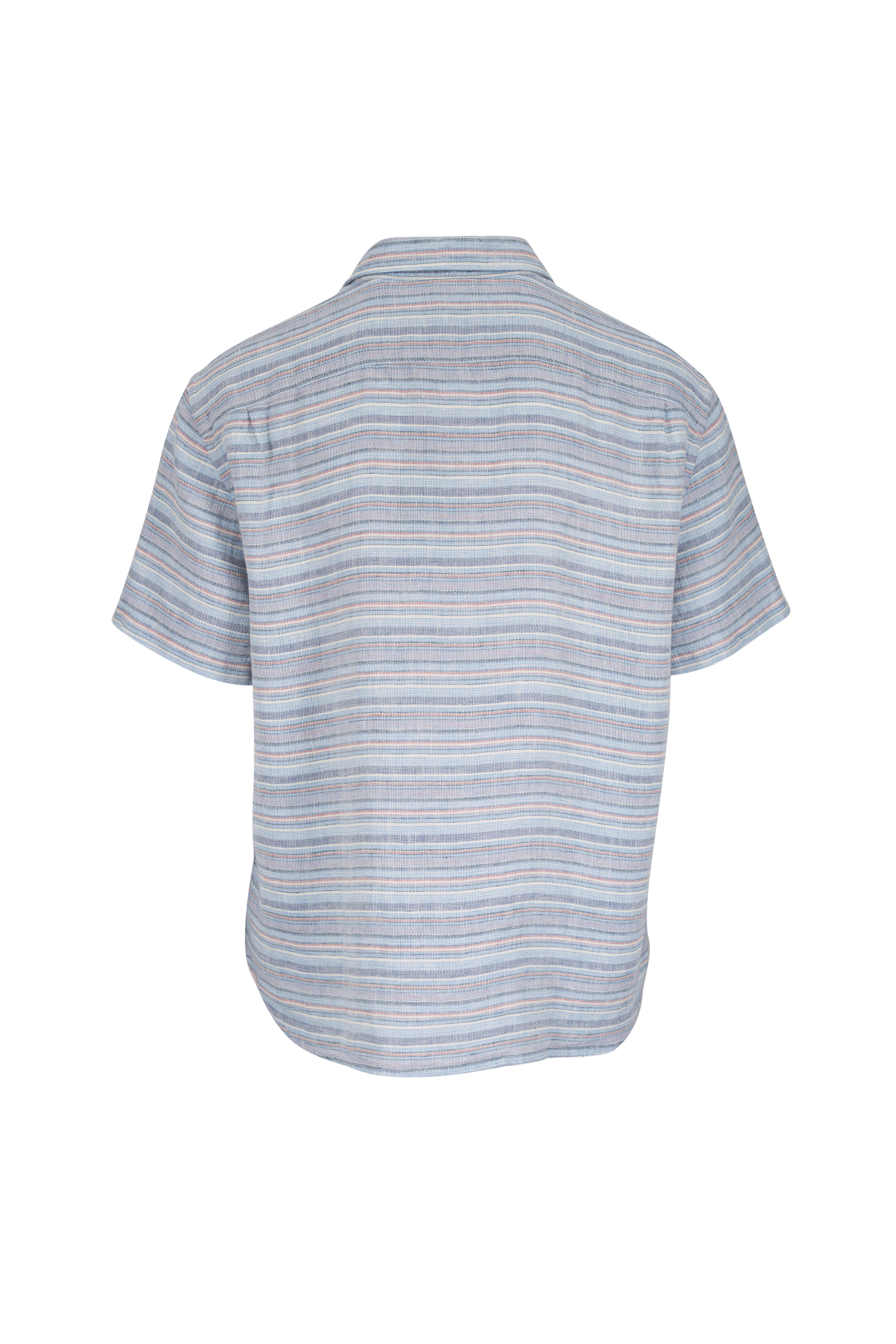 Blue Gulf Stripe Palma Linen Short Sleeve Shirt