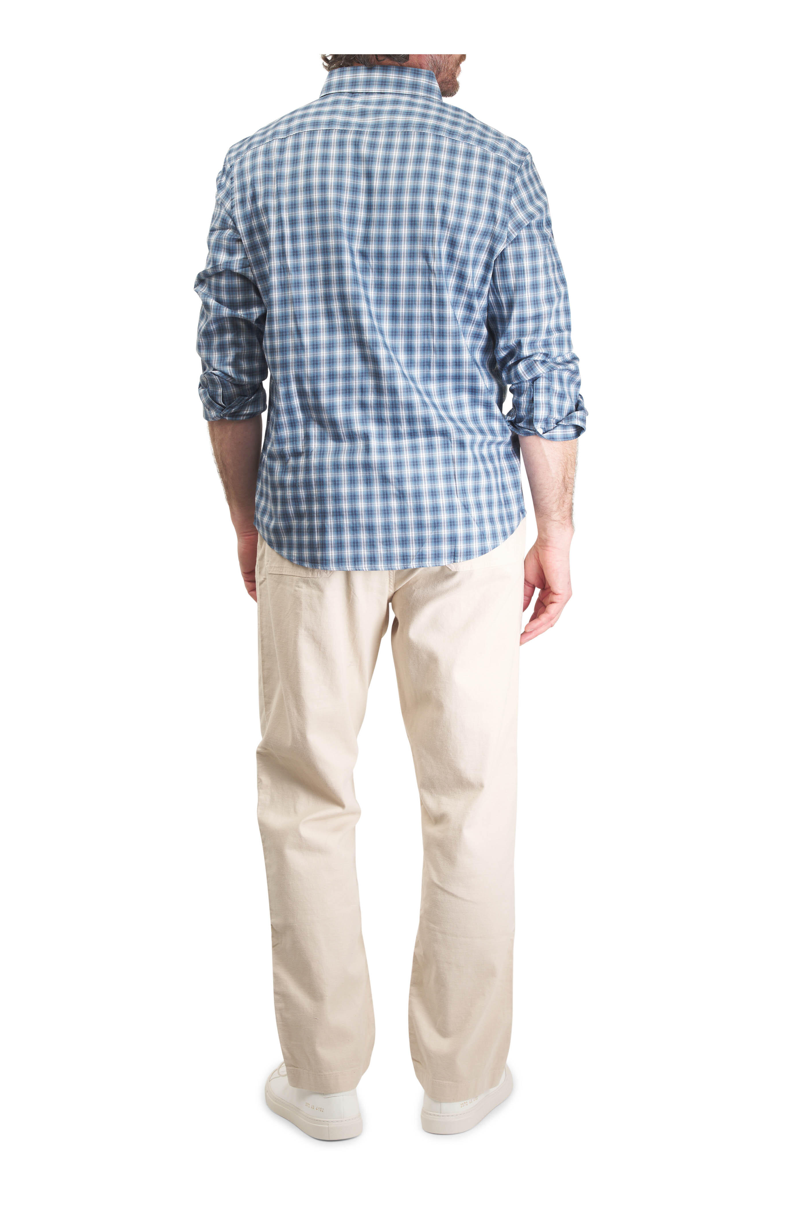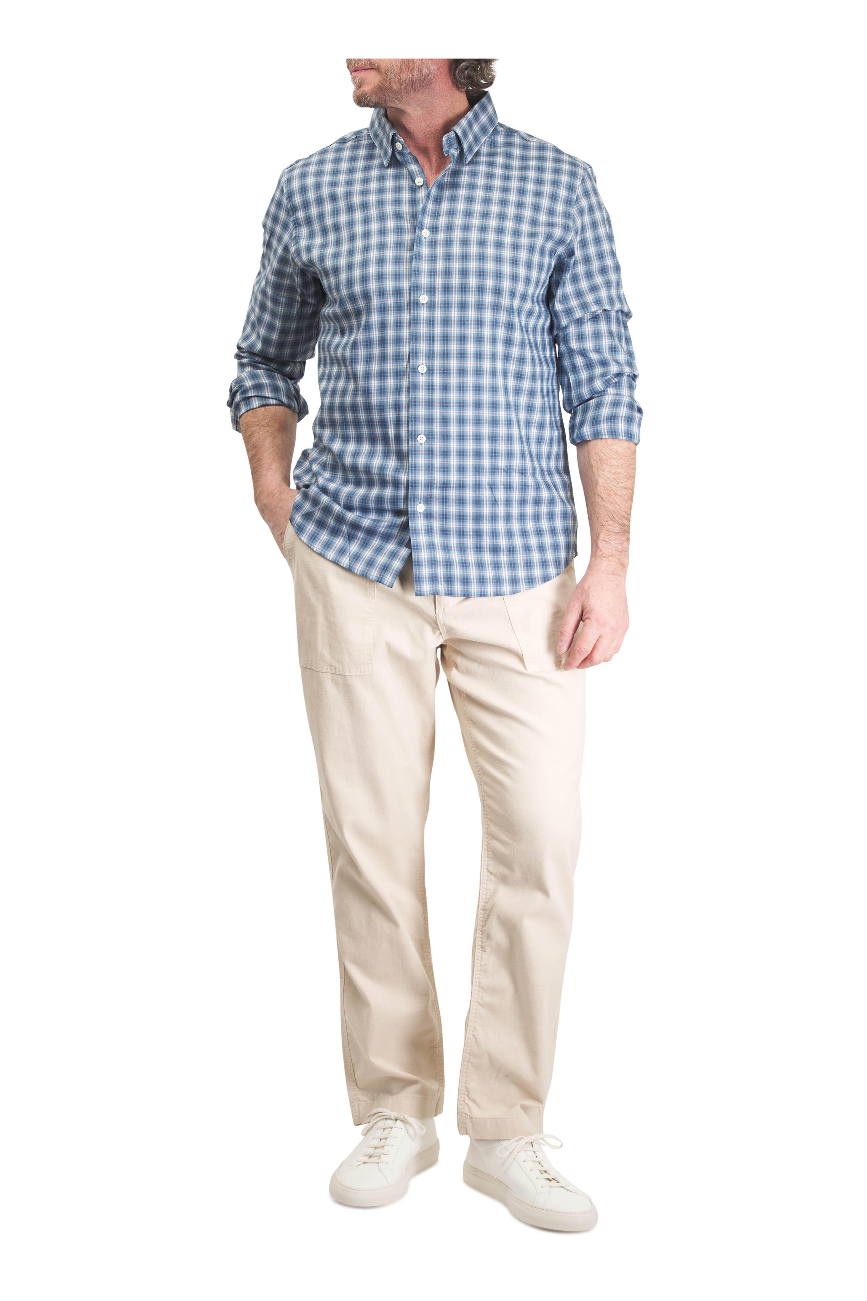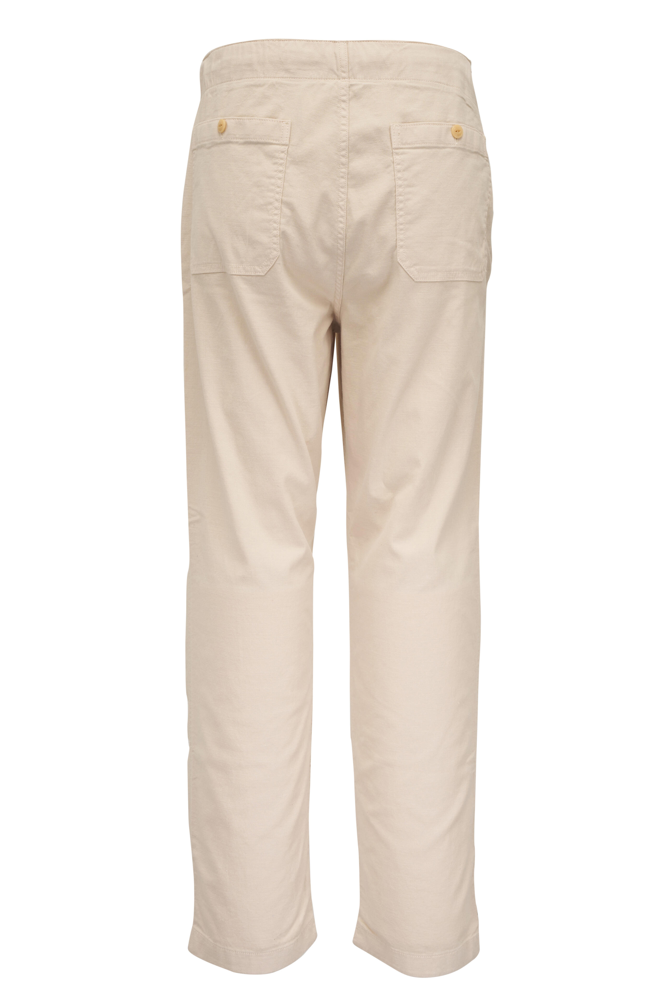 Zip fly; button closure. Drawstring waist. Four pocket styling. Imported. 32" inseam. Slim and straight, sitting just below the natural waist.. 98% organic cotton, 2% spandex. Machine wash.