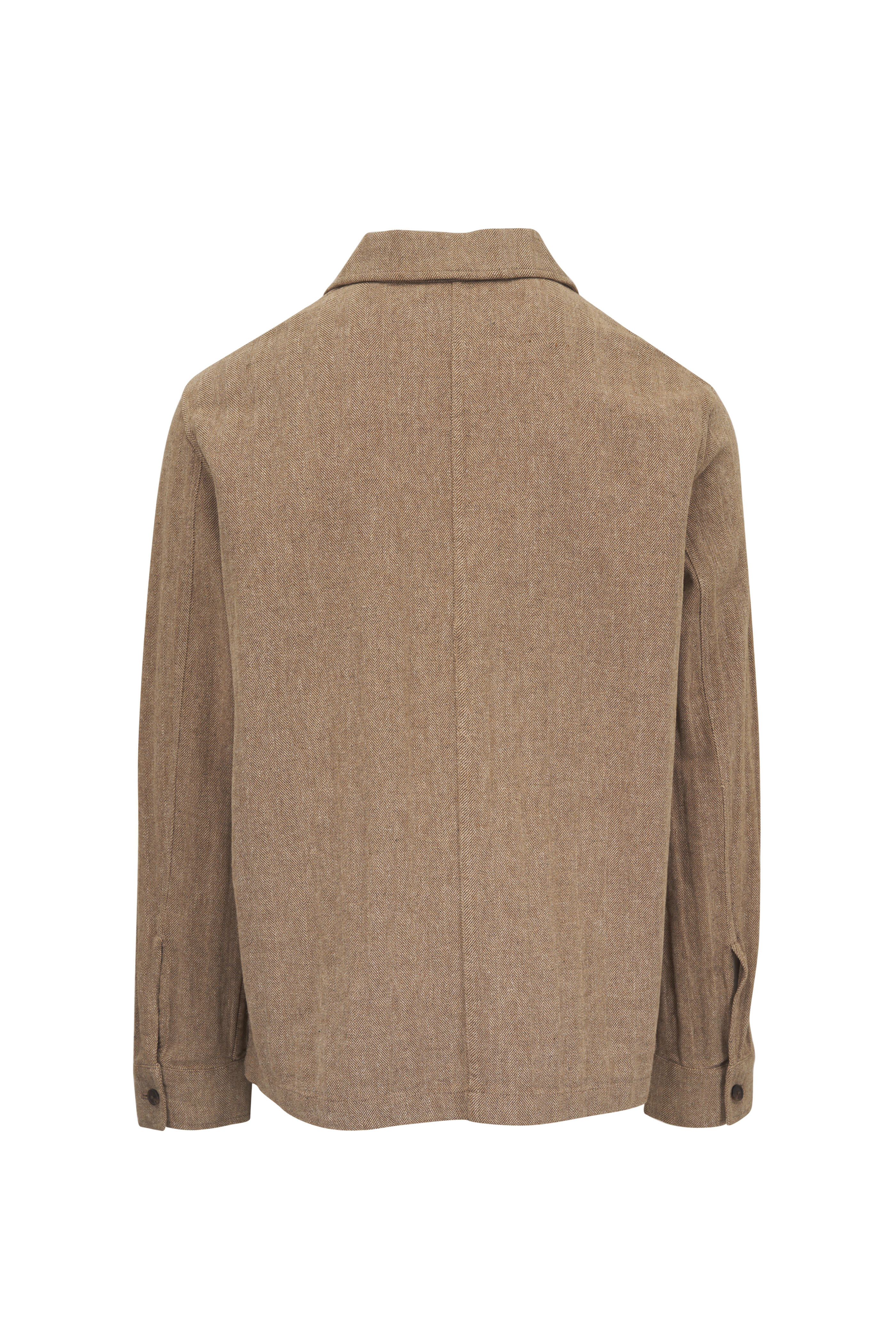 Spread collar. Front button closure. Lower patch pockets; chest patch pocket. Imported. Approximately 29 ½" shoulder to hem. 55% linen, 45% organic cotton. Machine wash.