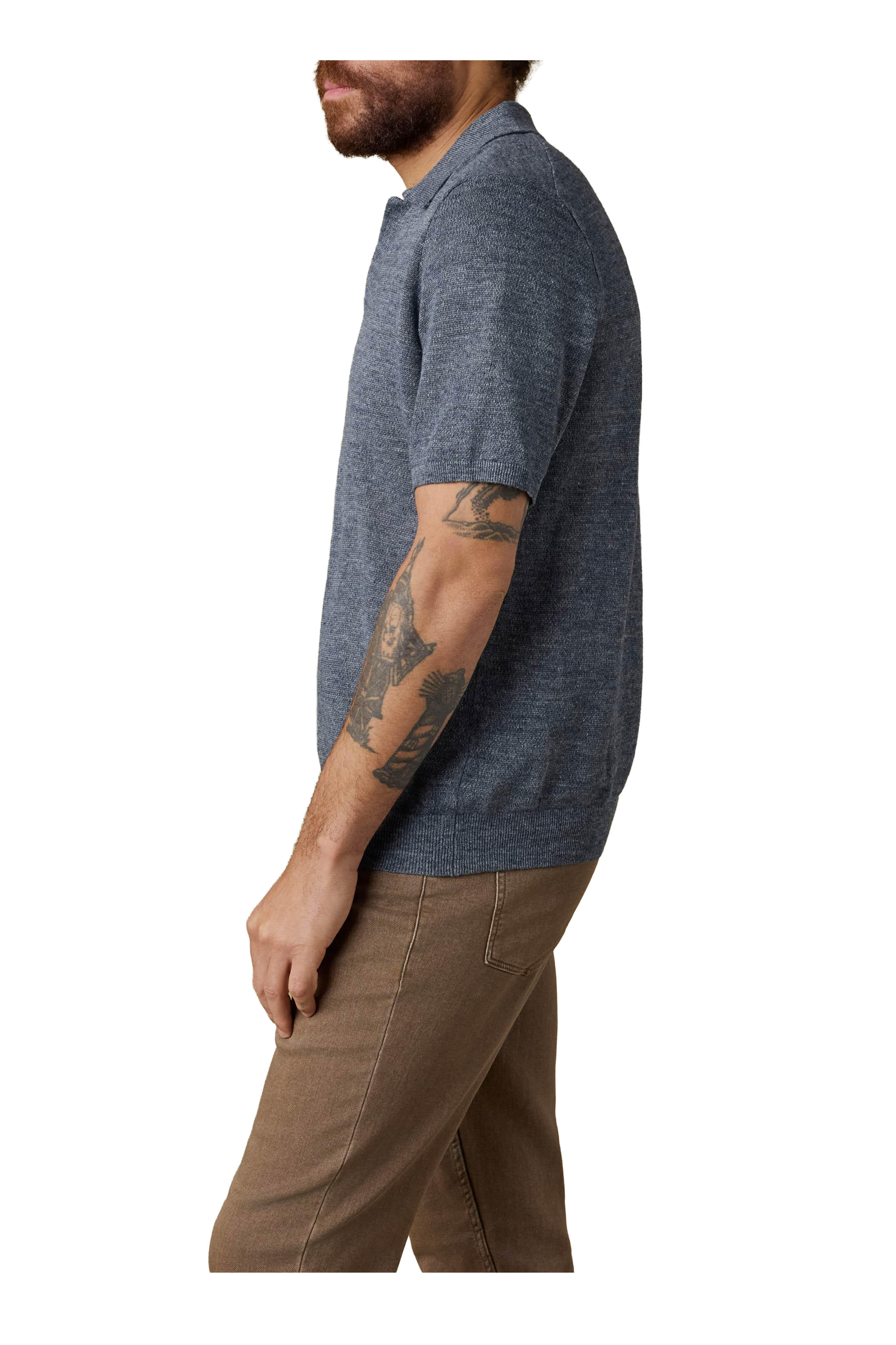 Caribbean Navy Mélange Linen Sweater Polo