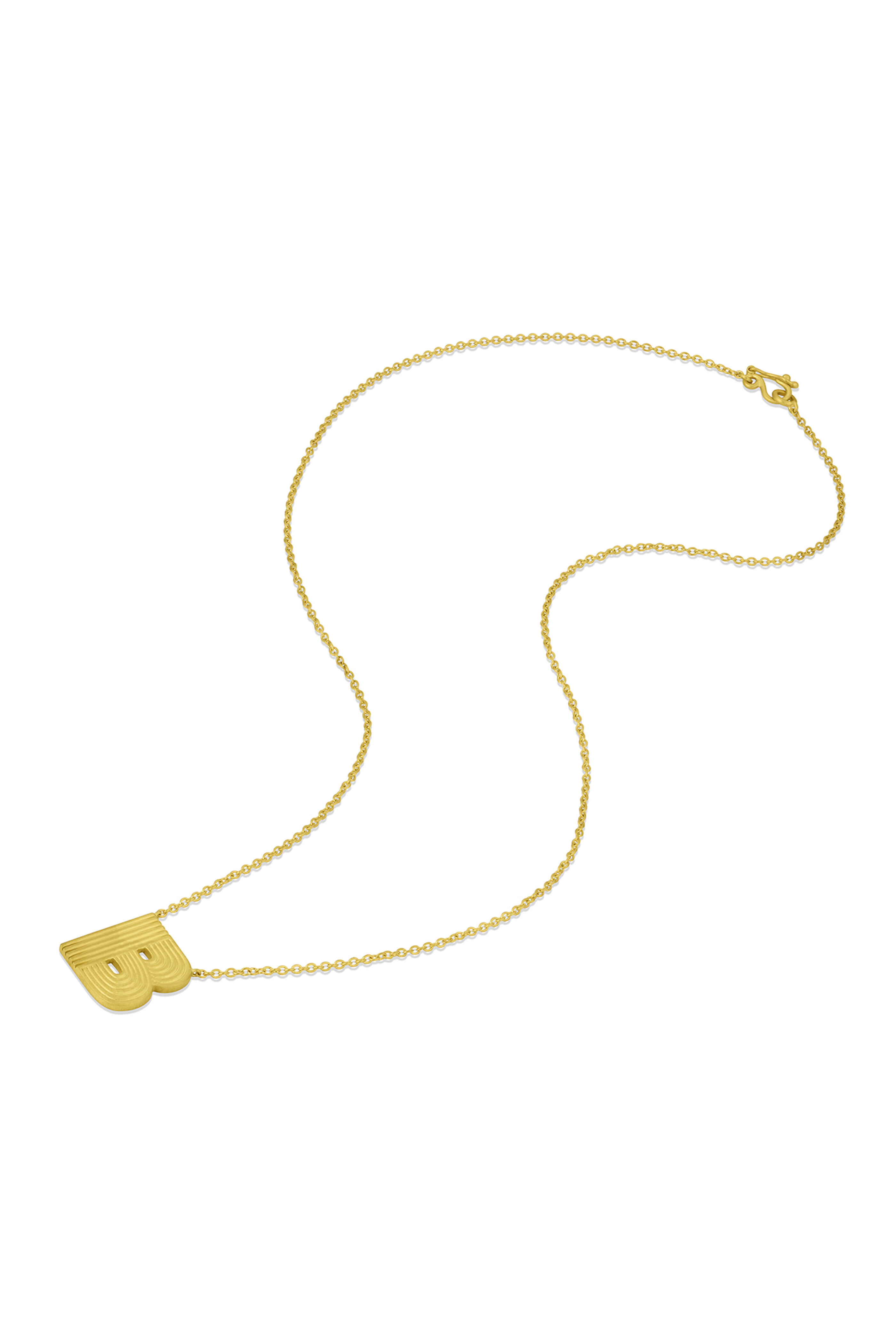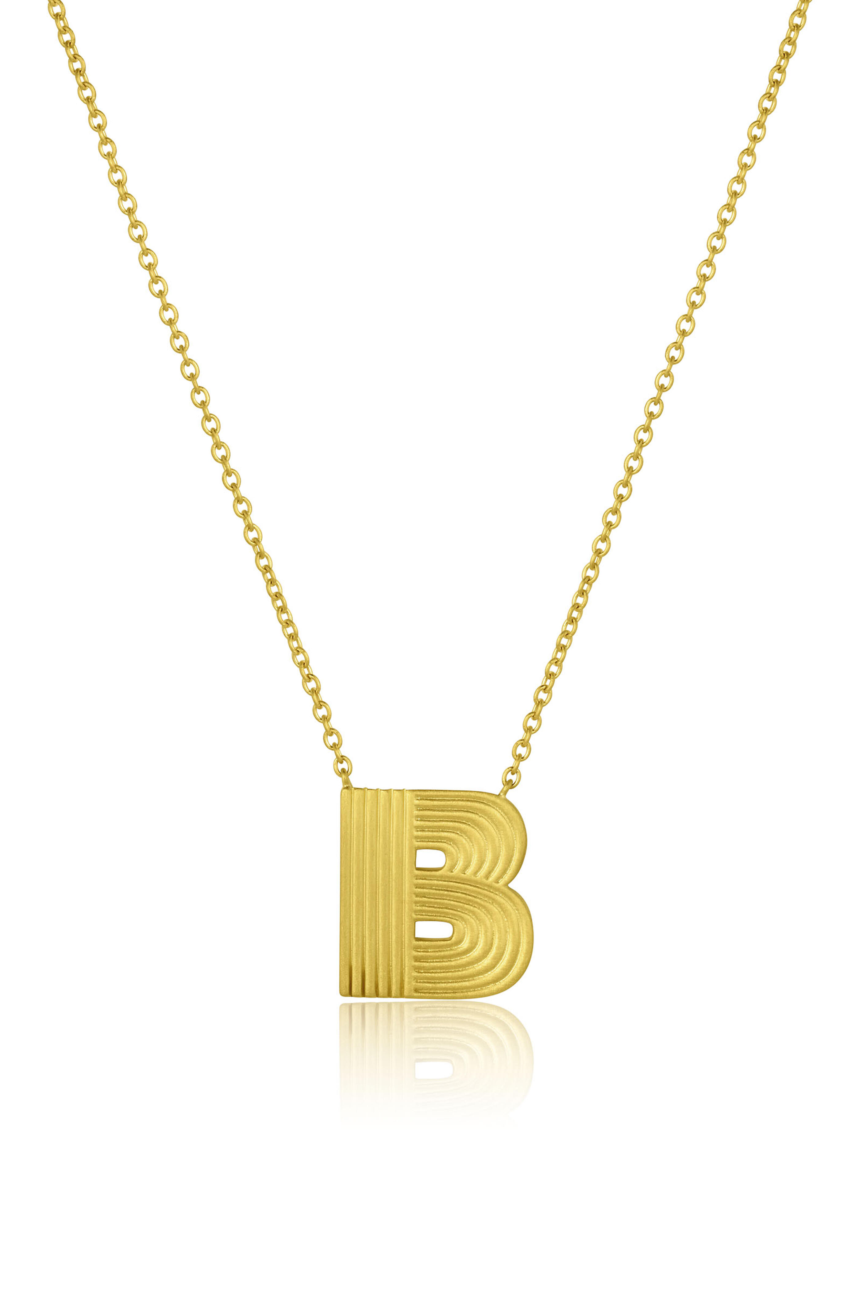 18k Yellow Gold Small Ridged Initial "B" Necklace