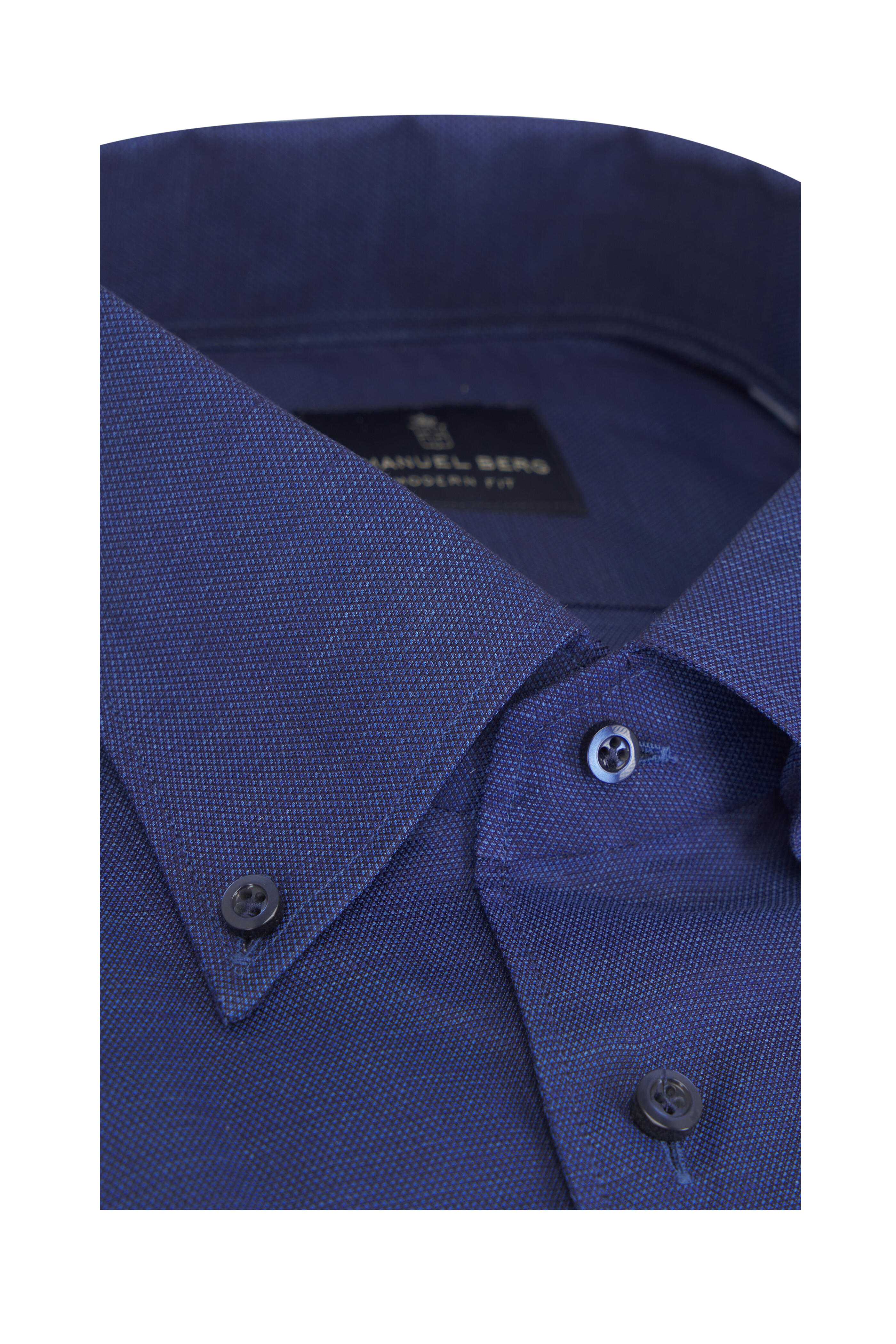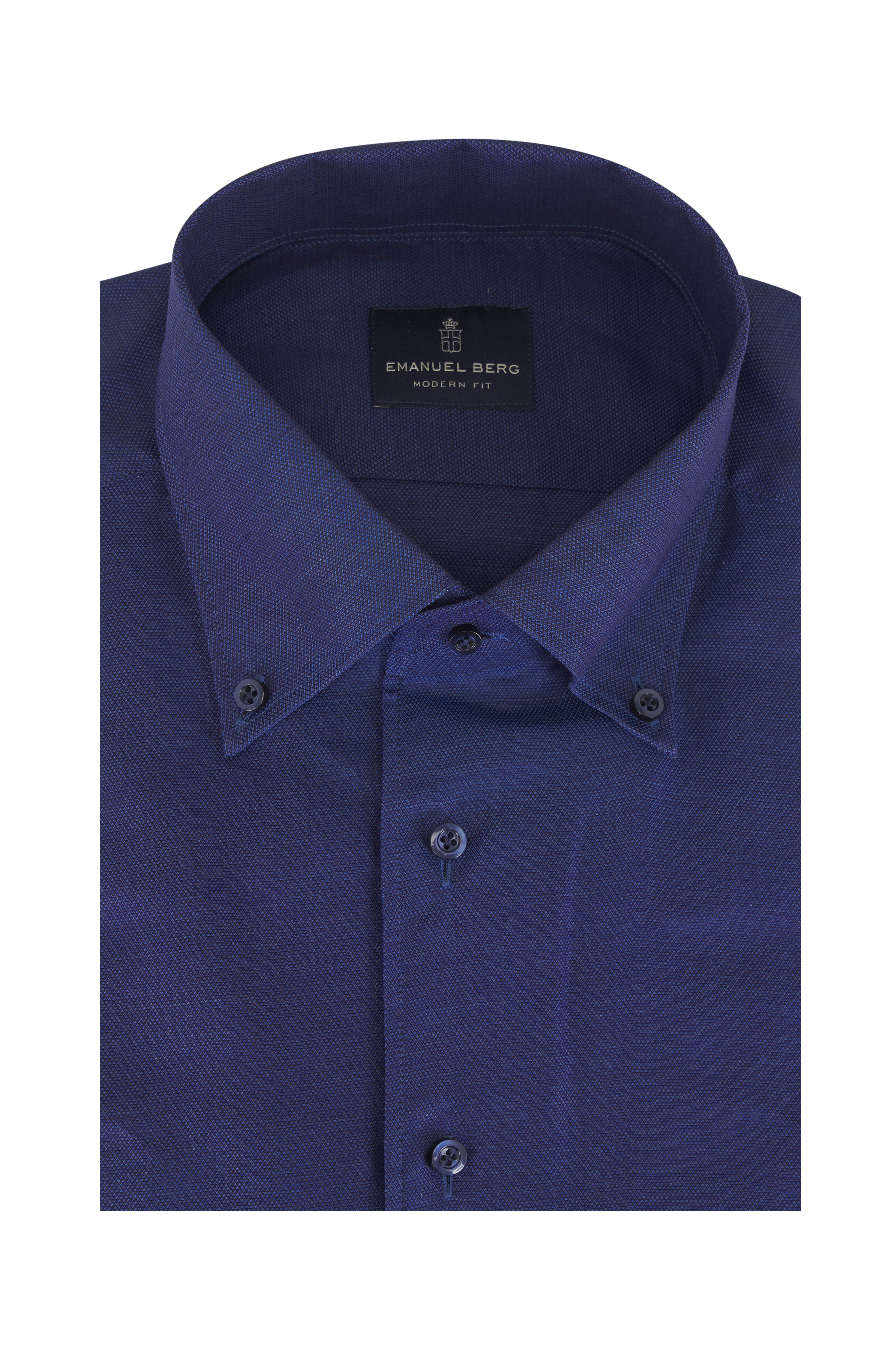 Button down collar. French front button placket. Single button adjustable barrel cuffs. Made in Poland. Modern fit. 66% cotton, 34% linen. Machine wash.