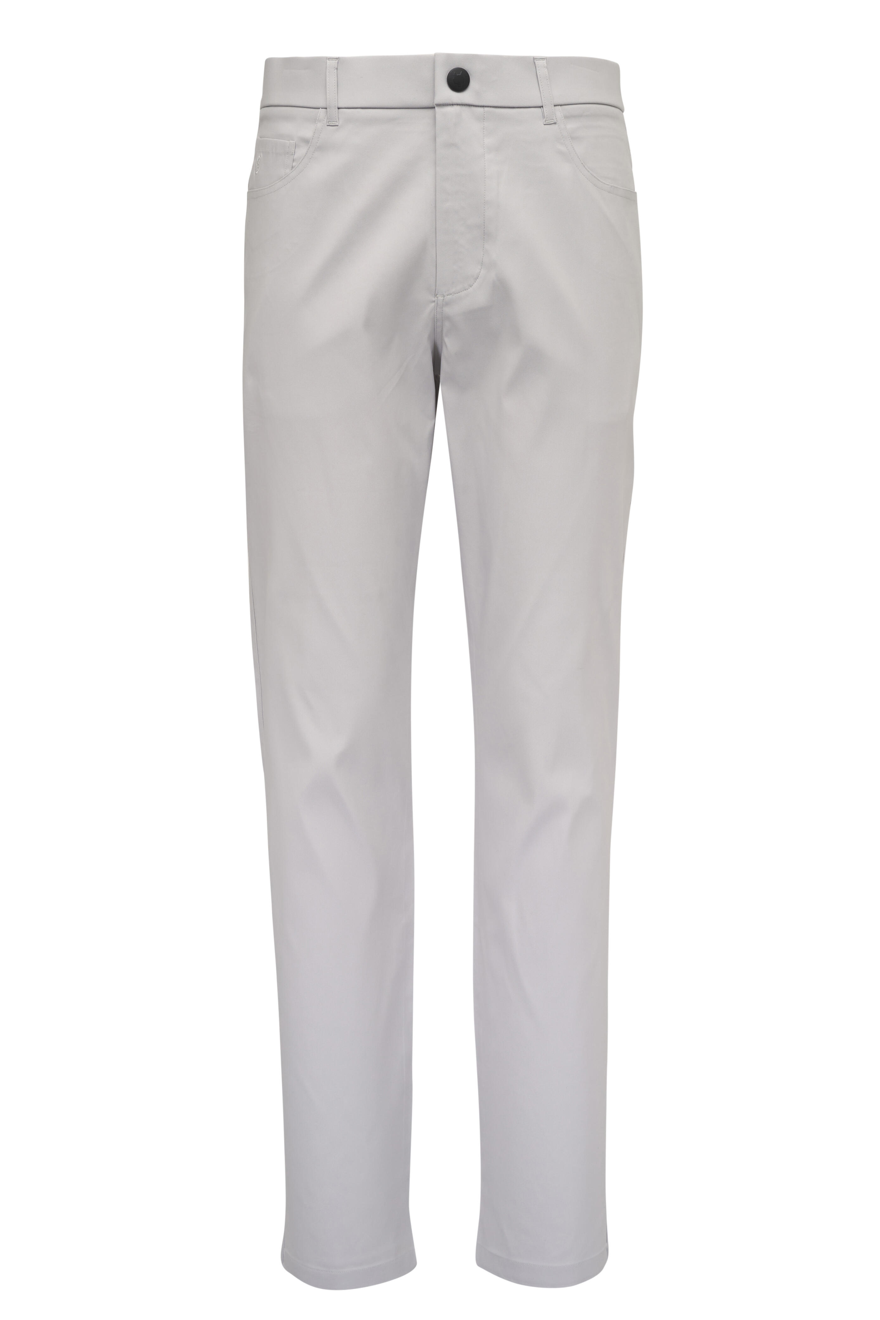 Zip fly; button closure. Banded waist; belt loops. Five pocket styling. Imported. 100% polyester. Machine wash.