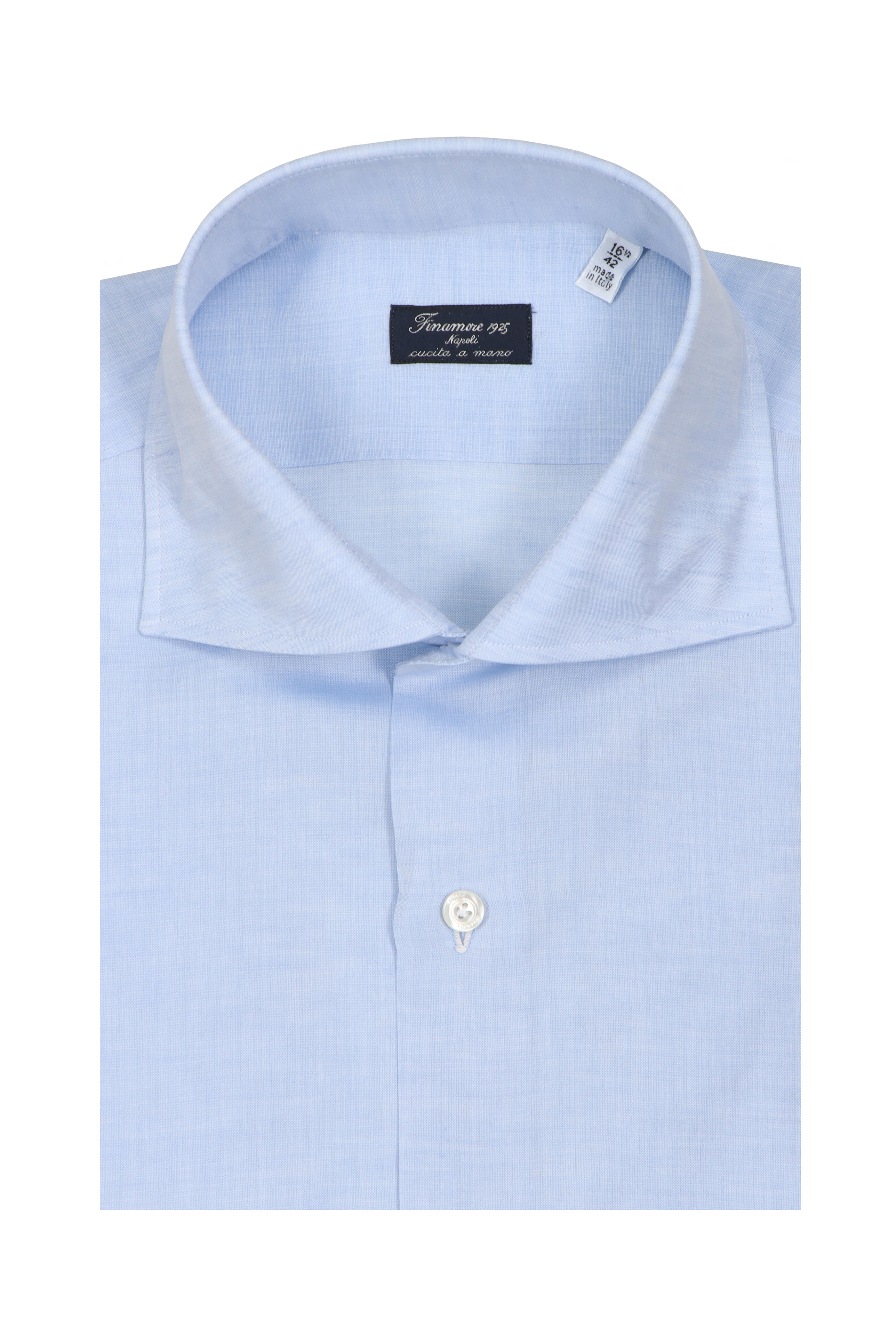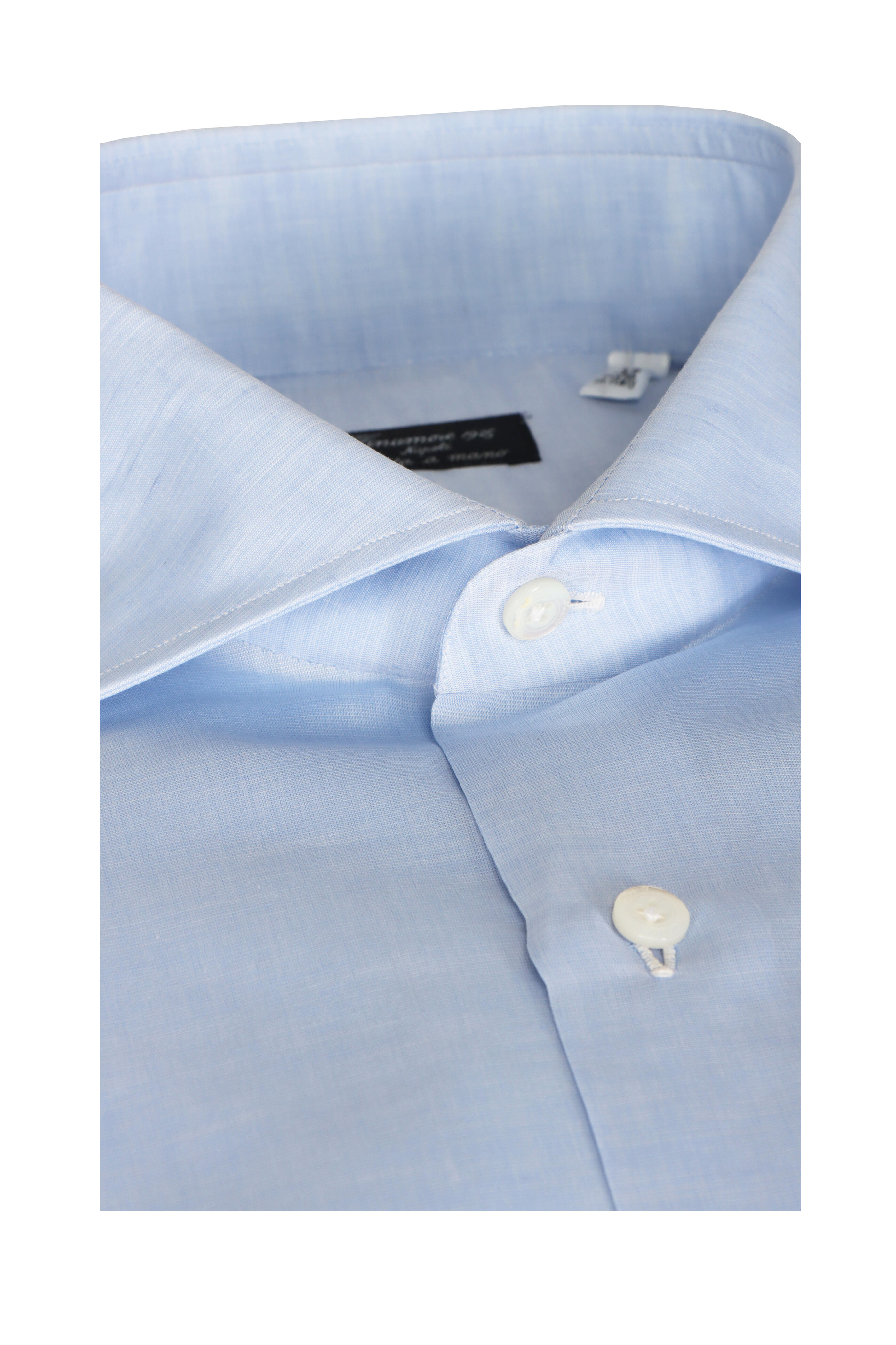 Spread collar. French front button placket. Single button adjustable barrel cuffs. Imported. 68% cotton, 32% linen. Dry clean.