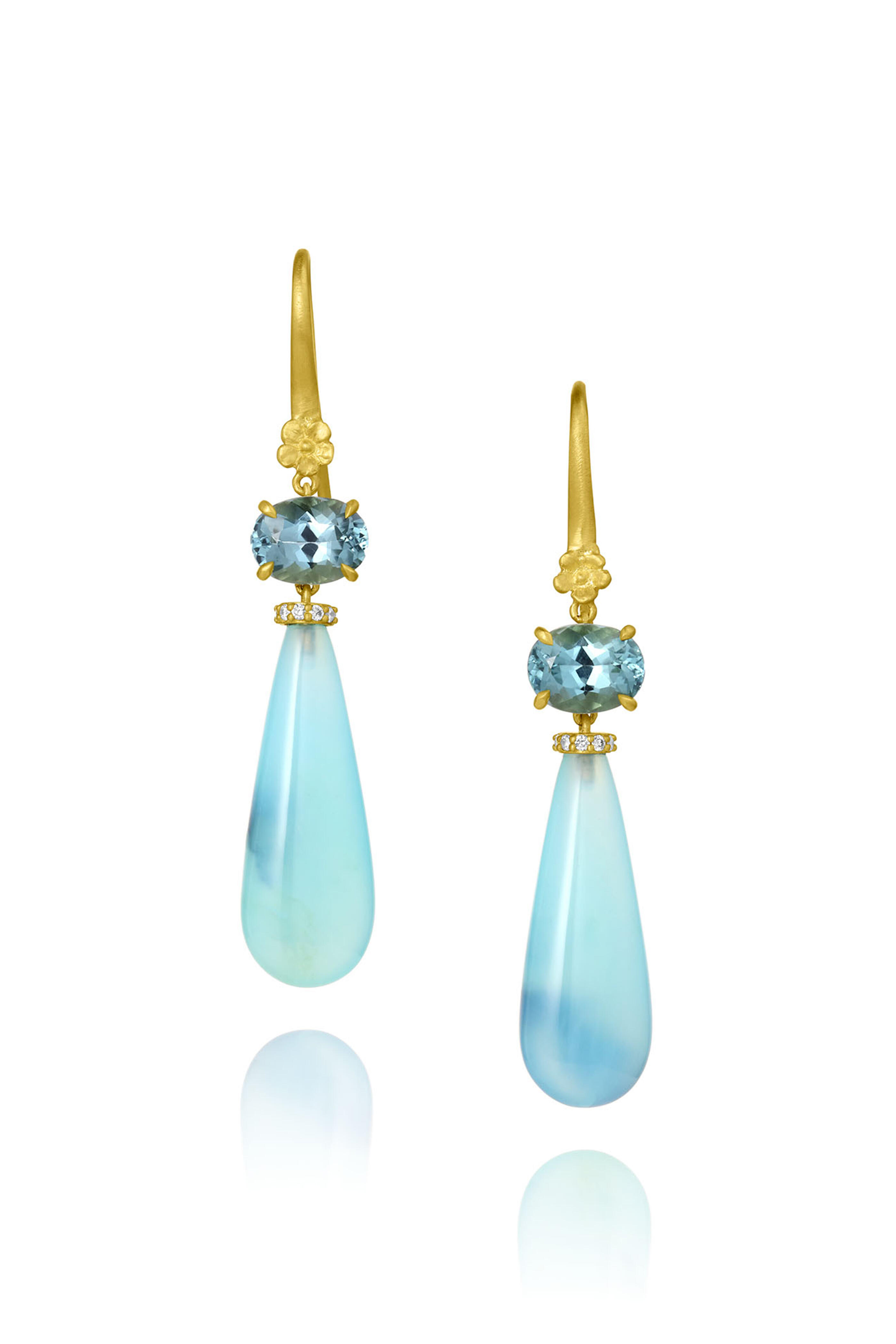 These one of a kind earrings feature gorgeous, smooth gemstone drops. A part of the Flora Collection they are a celebration of color. The elongated shape is elegant and flattering, perfect for any occasion.