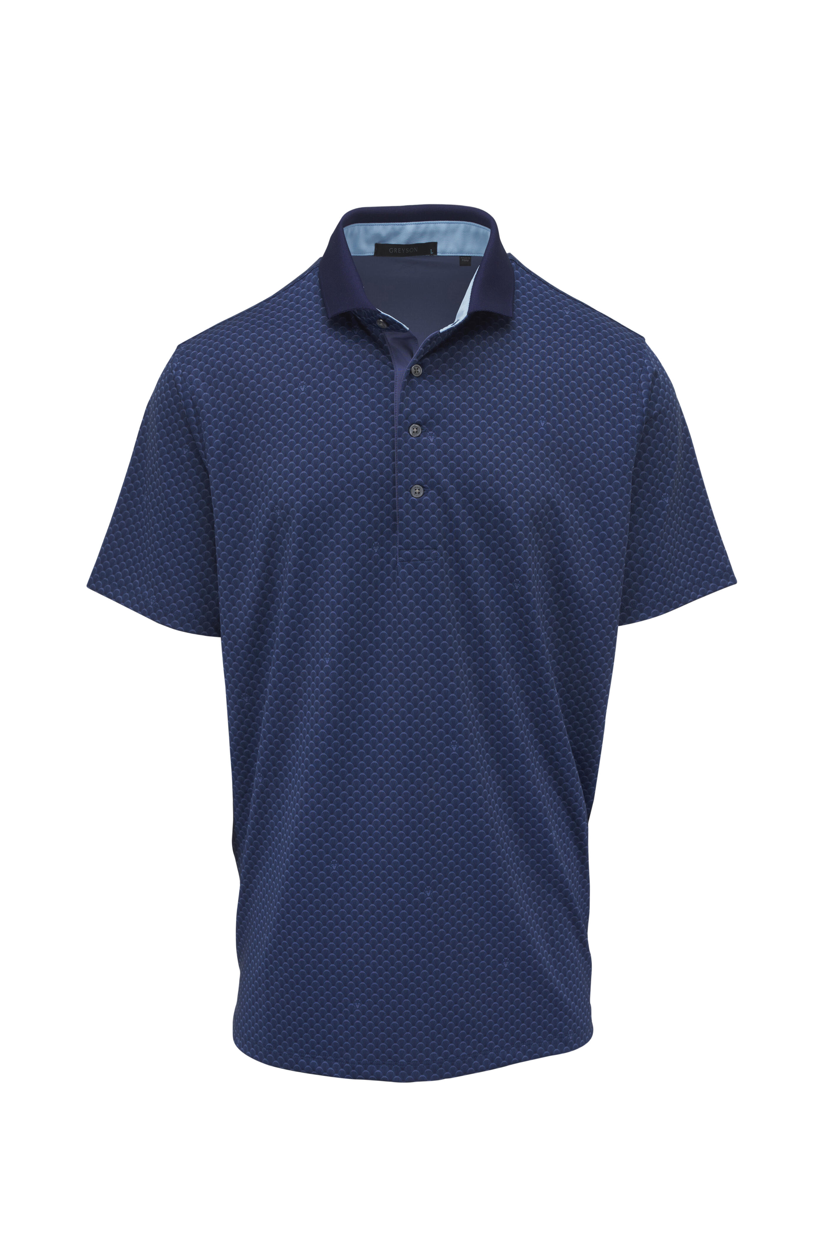 Spread collar. Three button placket. Pullover style. Vented hem. Imported. 90% recycled polyester, 10% spandex. Machine wash.