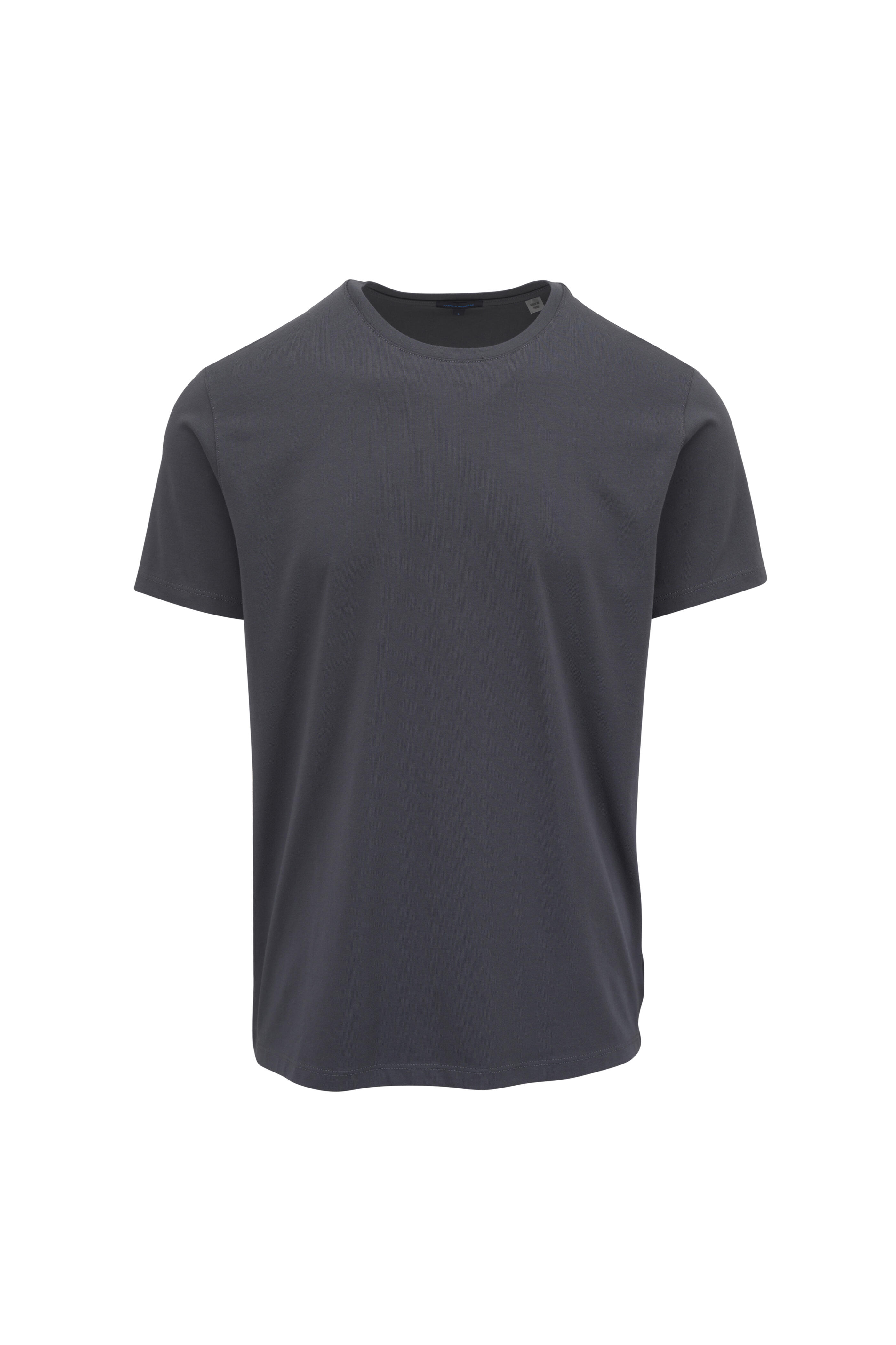 Crew neckline. Made in Peru. Approximately 28" shoulder to hem (measurements taken from size L). 95% pima cotton, 5% spandex. Machine wash.