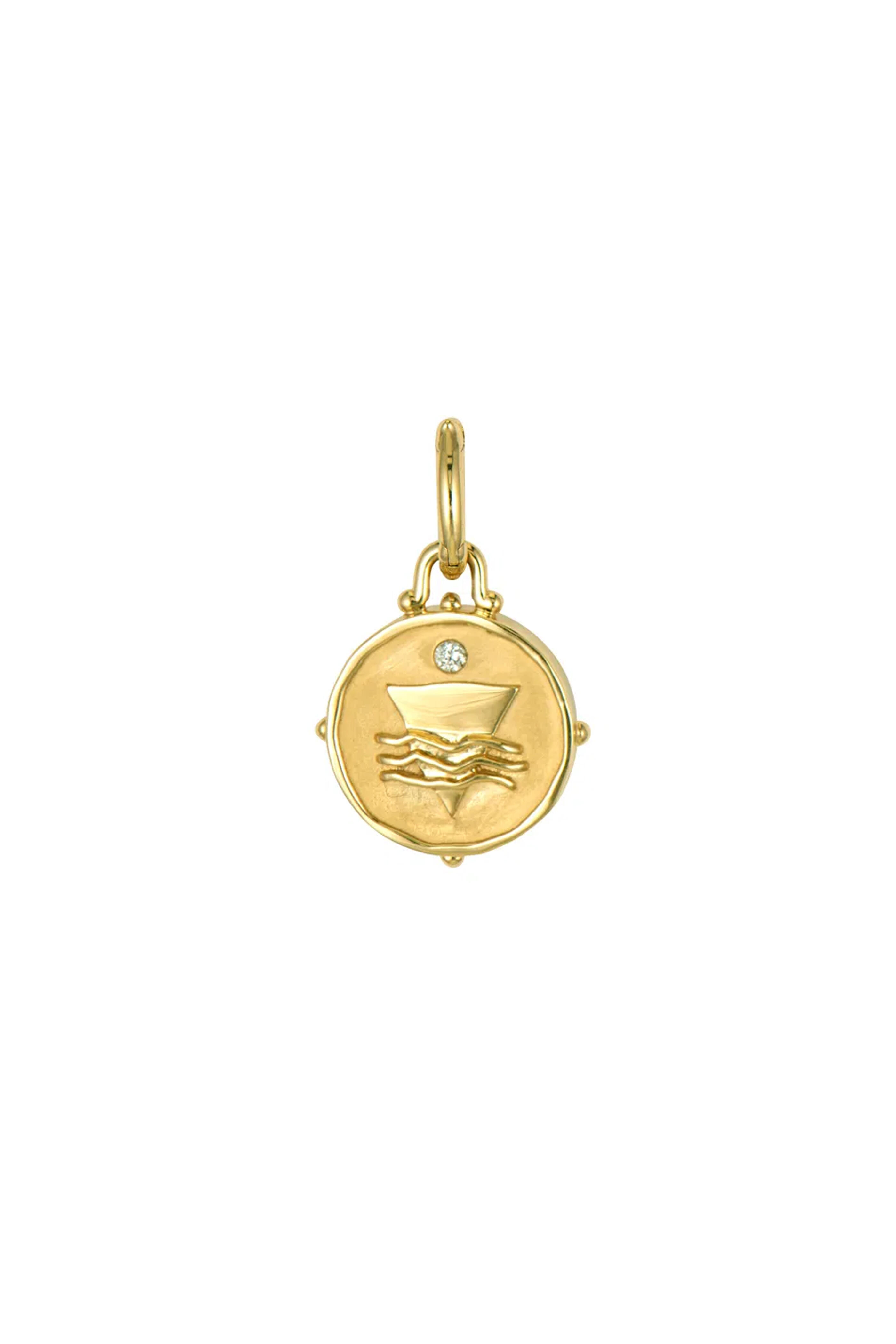 14k gold. Diamond 0.21 total carat weight. Featuring a sea goddess on one side and the water element symbol on the back. Diamond detailing. Engraved detailing. Stores of Elements Collection. Round. Gold bail. Pendant and chain sold separately. Made in the USA.