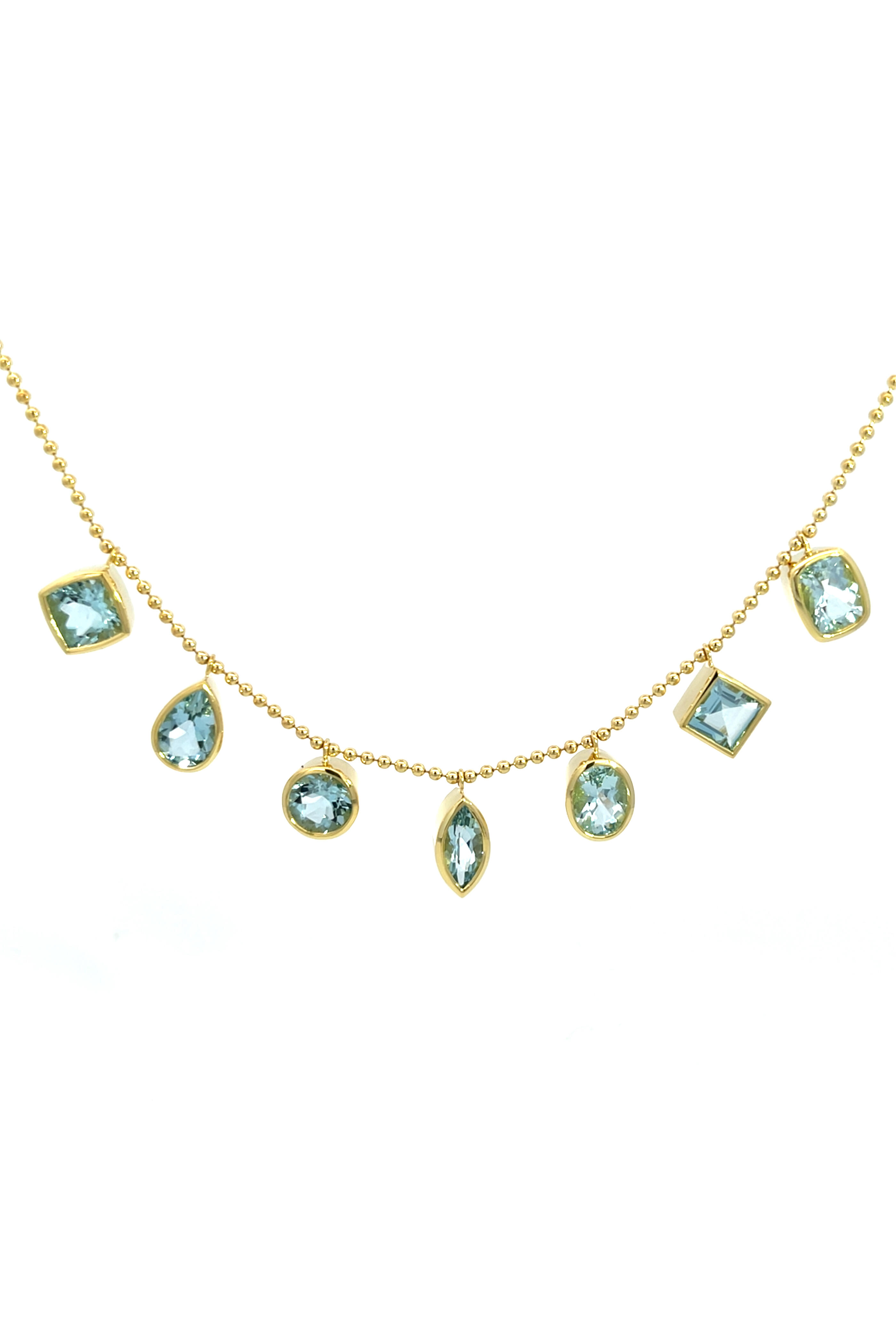 18k Yellow Gold Mixed Aquamarine Ball Necklace