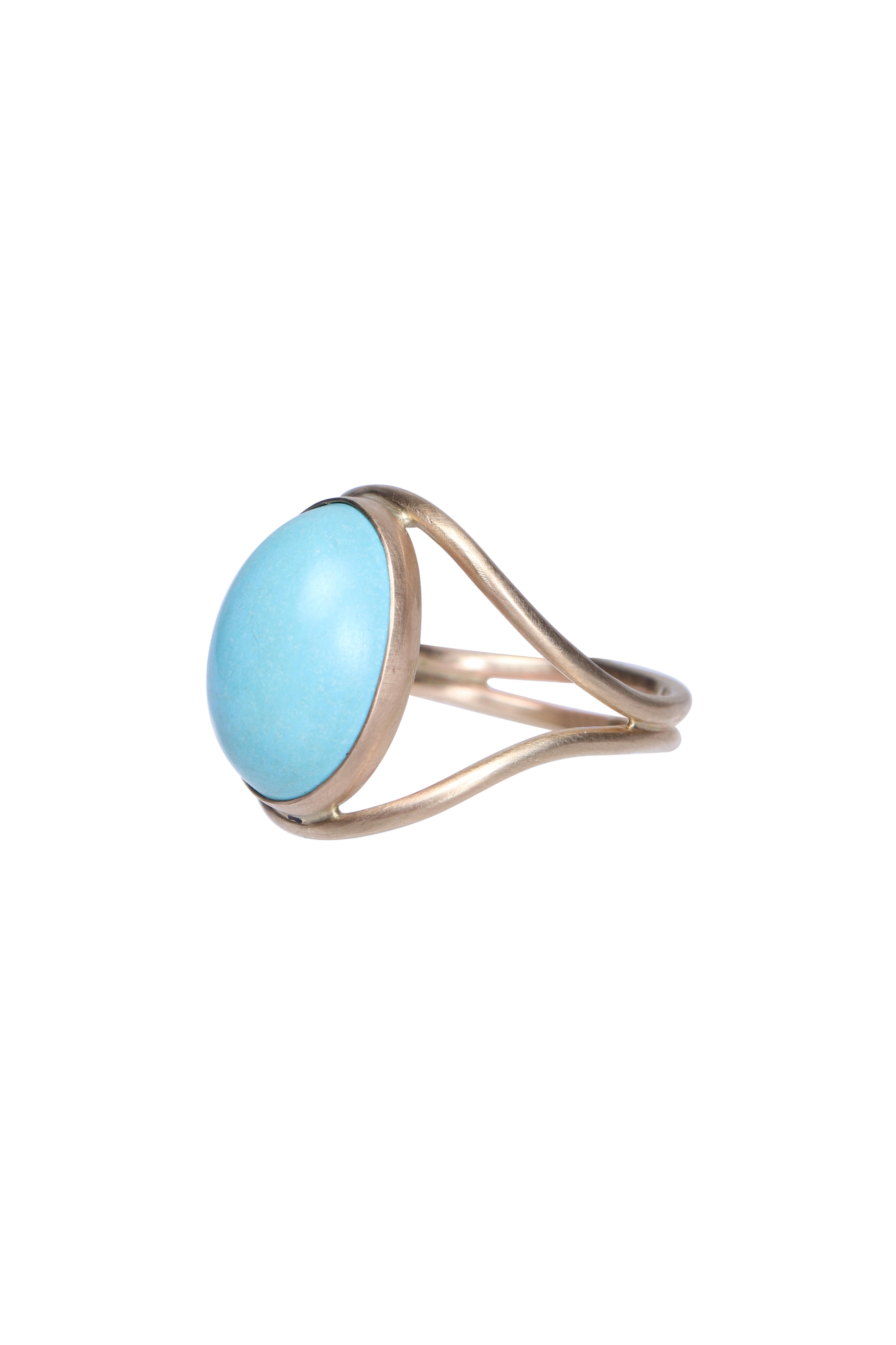 14k gold. Turquoise. Double band design. Gold bezel. Made in New York. Call for ring size.