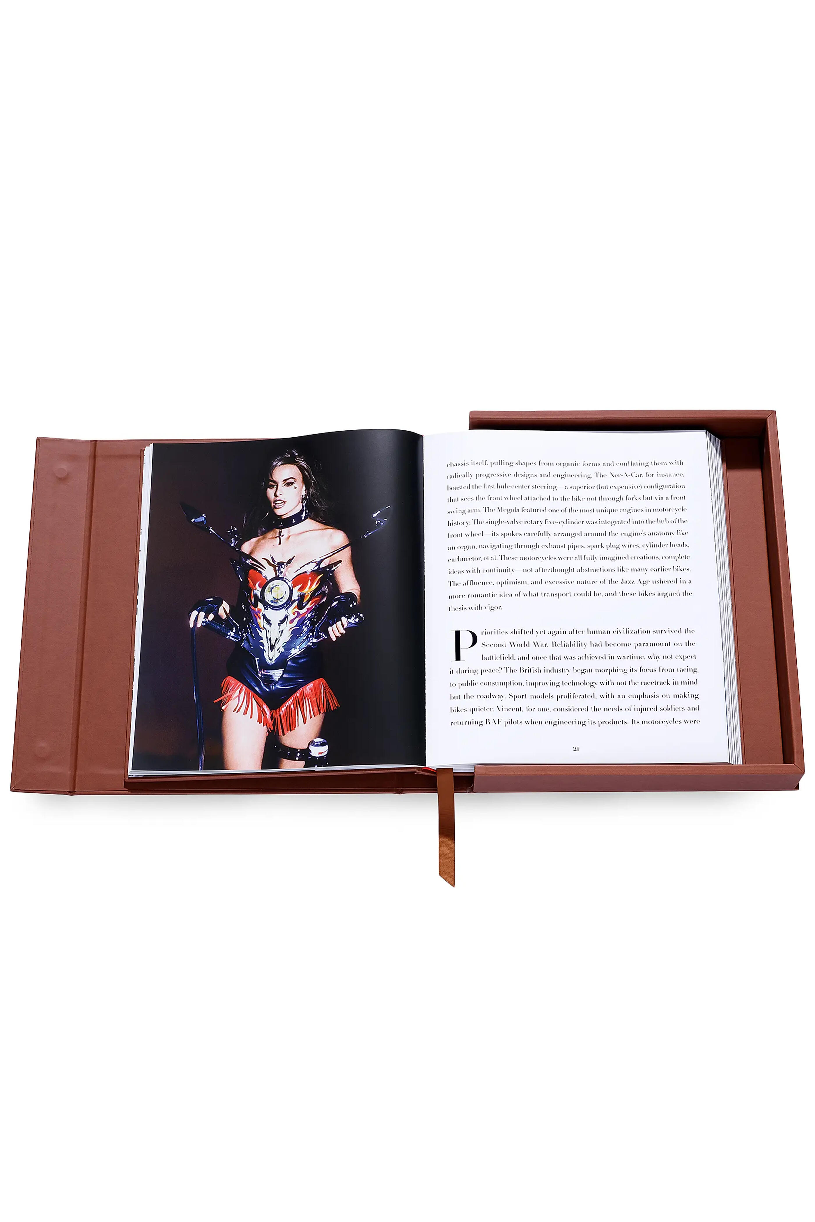 144 pages. 190+ illustrations. Released: August 2023. Hardcover in a luxury faux leather. The motorcycle has evolved from a much-needed means of transportation to a symbol of high design and storied freedom. This extraordinary hand-bound limited-edition volume surveys the 100 most coveted motorcycles of the twentieth century, from the 1903 Harley-Davidson Serial #1 to the 1999 Honda NSR500 GP, each selected for its cultural importance, innovation in performance, luxurious design, and rarity in make. Presented in a black rubber clamshell case with a cutout metal plate.. Width: 15.35”. Length: 18.5”. Depth: 2.76”. Weight: 19.84 lbs.