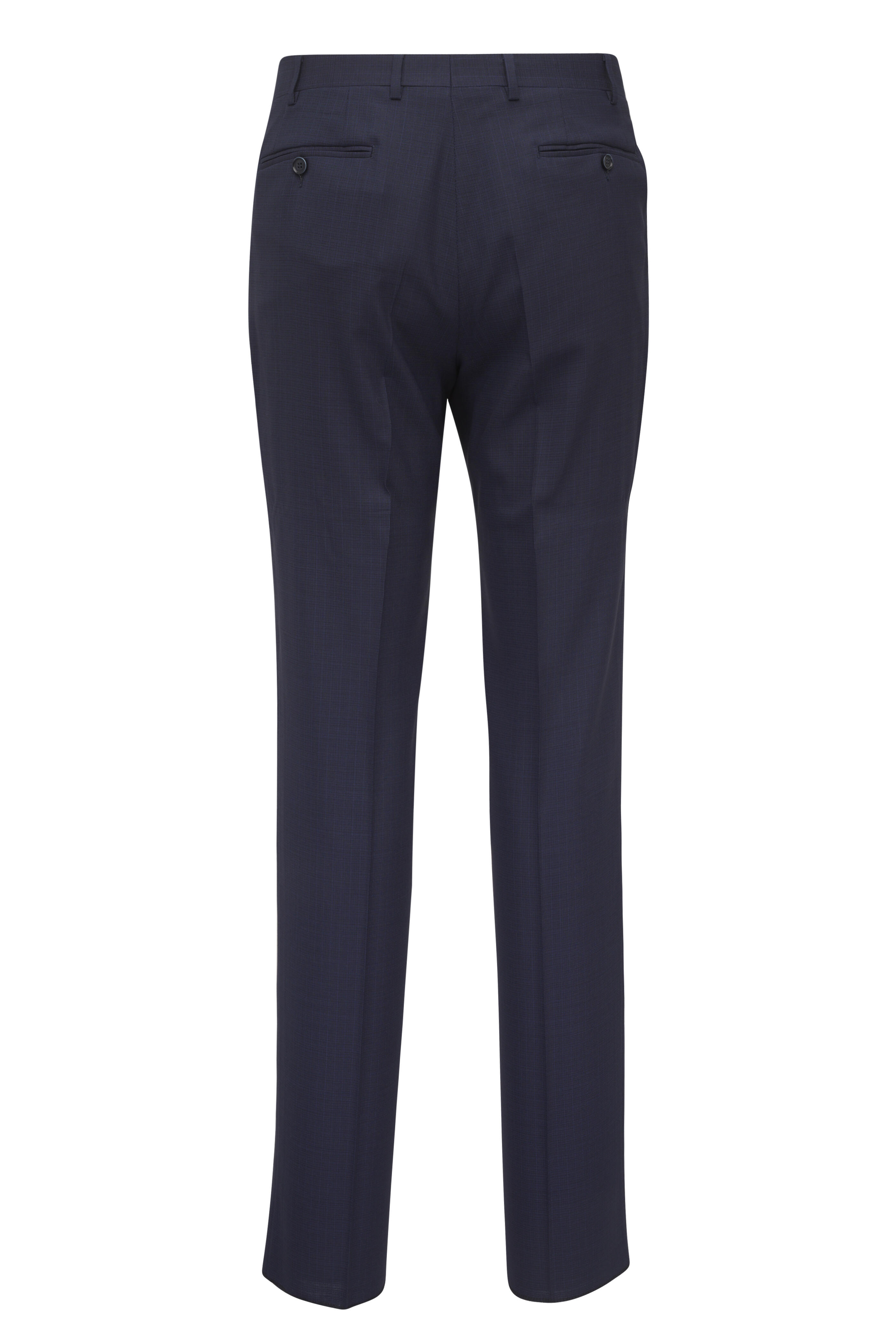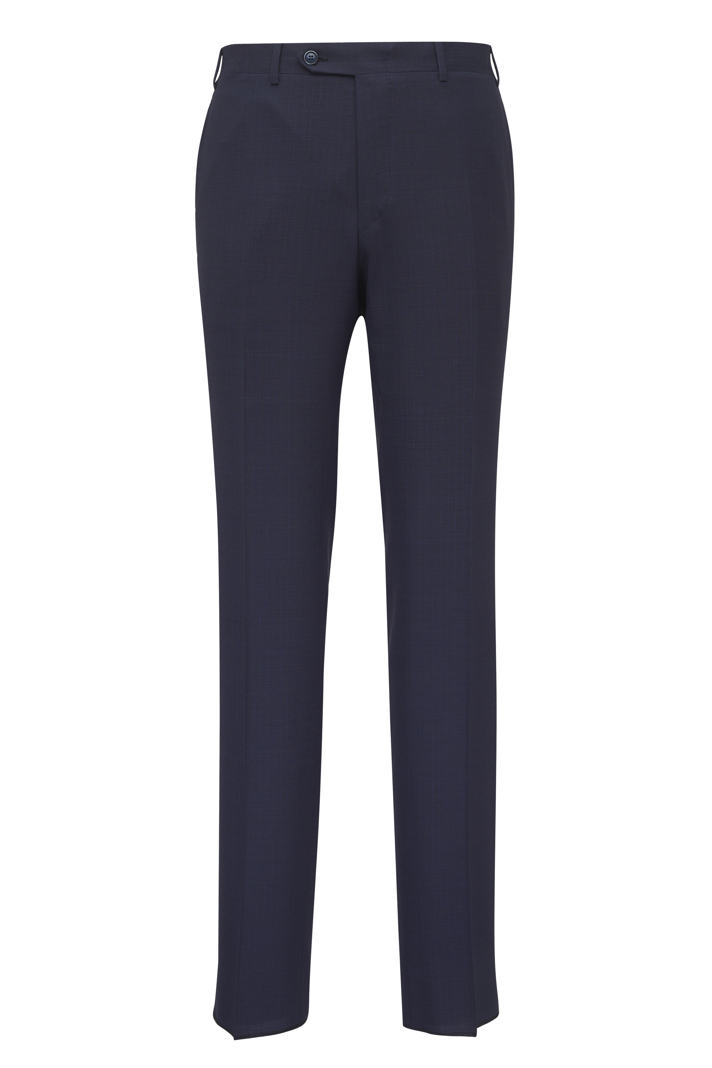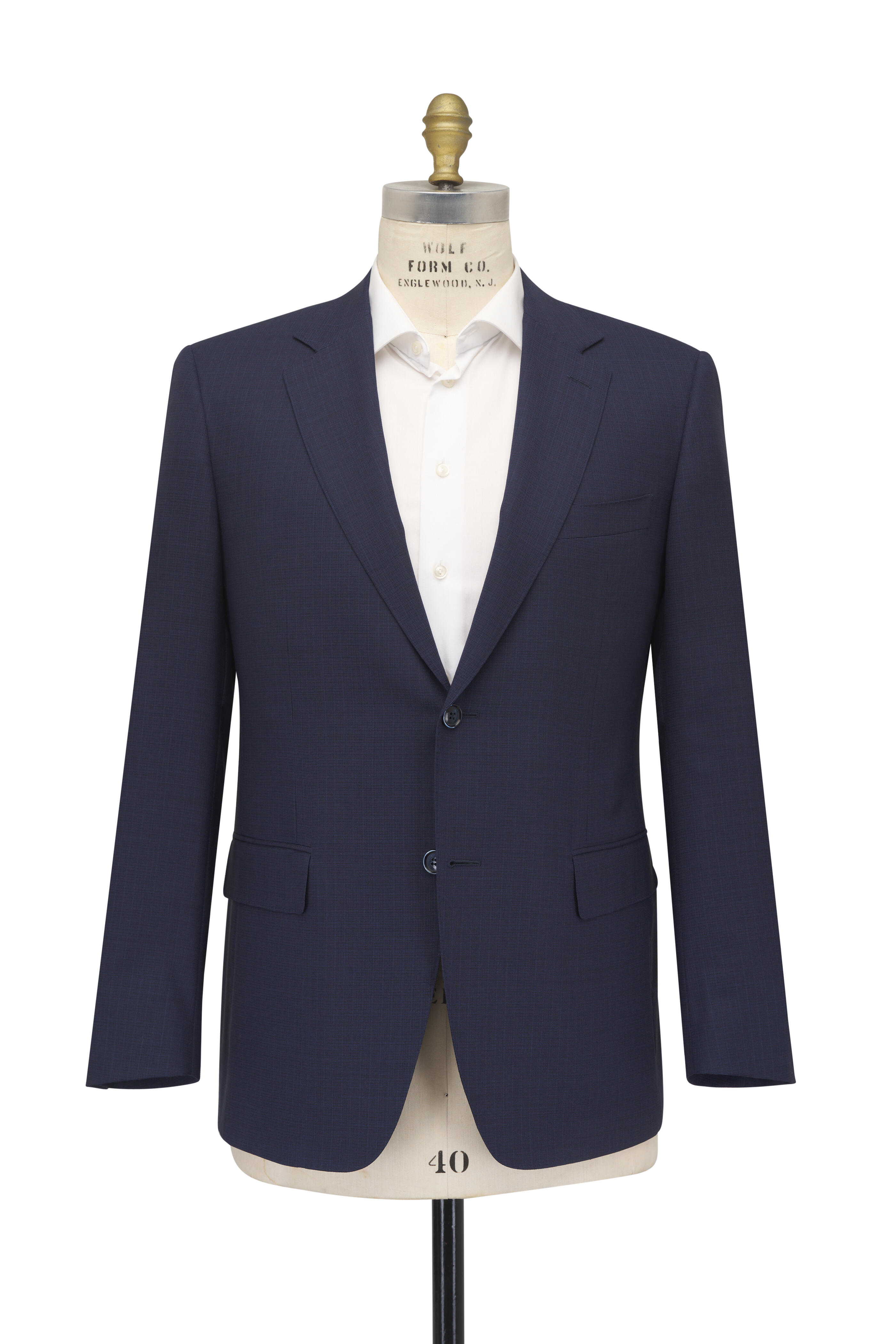 Made in Italy. Jacket: Fully lined. Notched lapels. Front two-button closure. Chest welt pocket; lower flap pockets; interior slip pockets. No buttons attached. Double vent. Pant: Banded waist; belt loops. Front slip pockets; back besom pockets. Unfinished hem. 100% wool; fully lined. Dry clean.