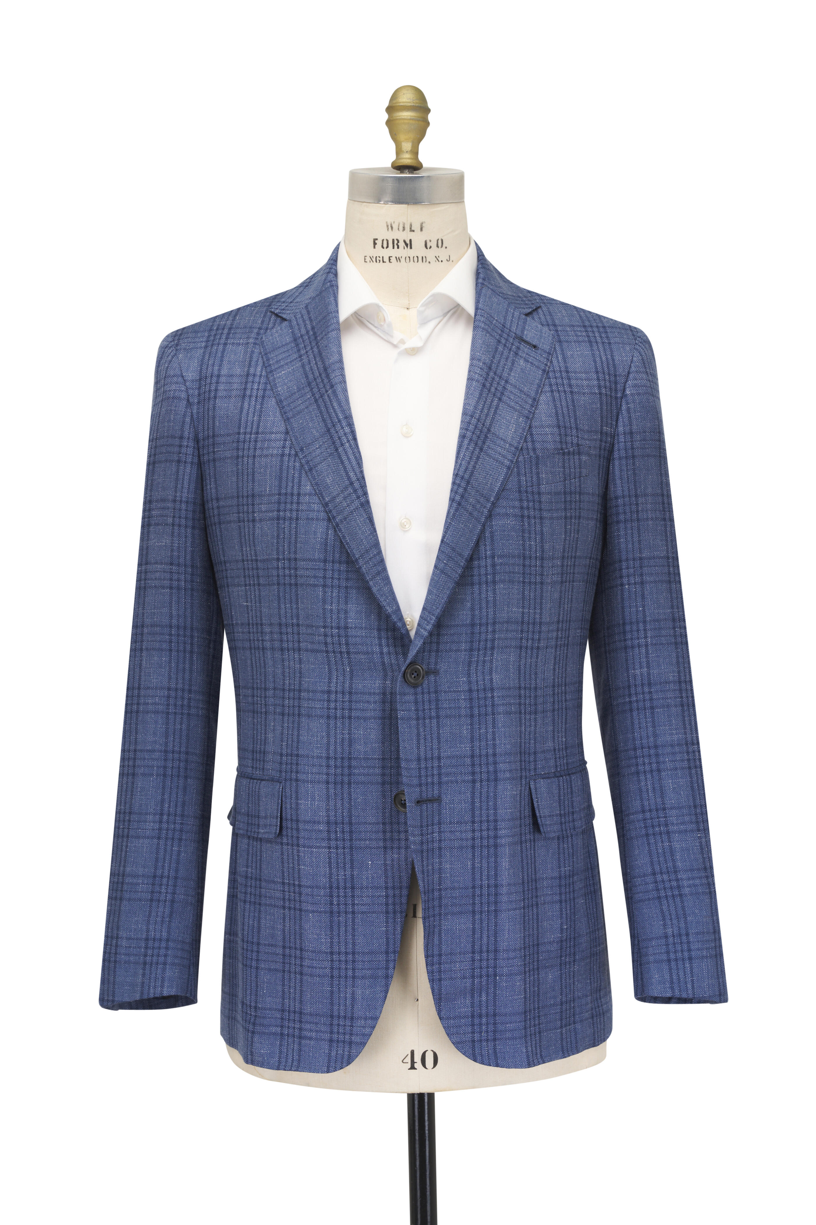 Tonal Navy Plaid Cashmere, Silk & Linen Sportcoat