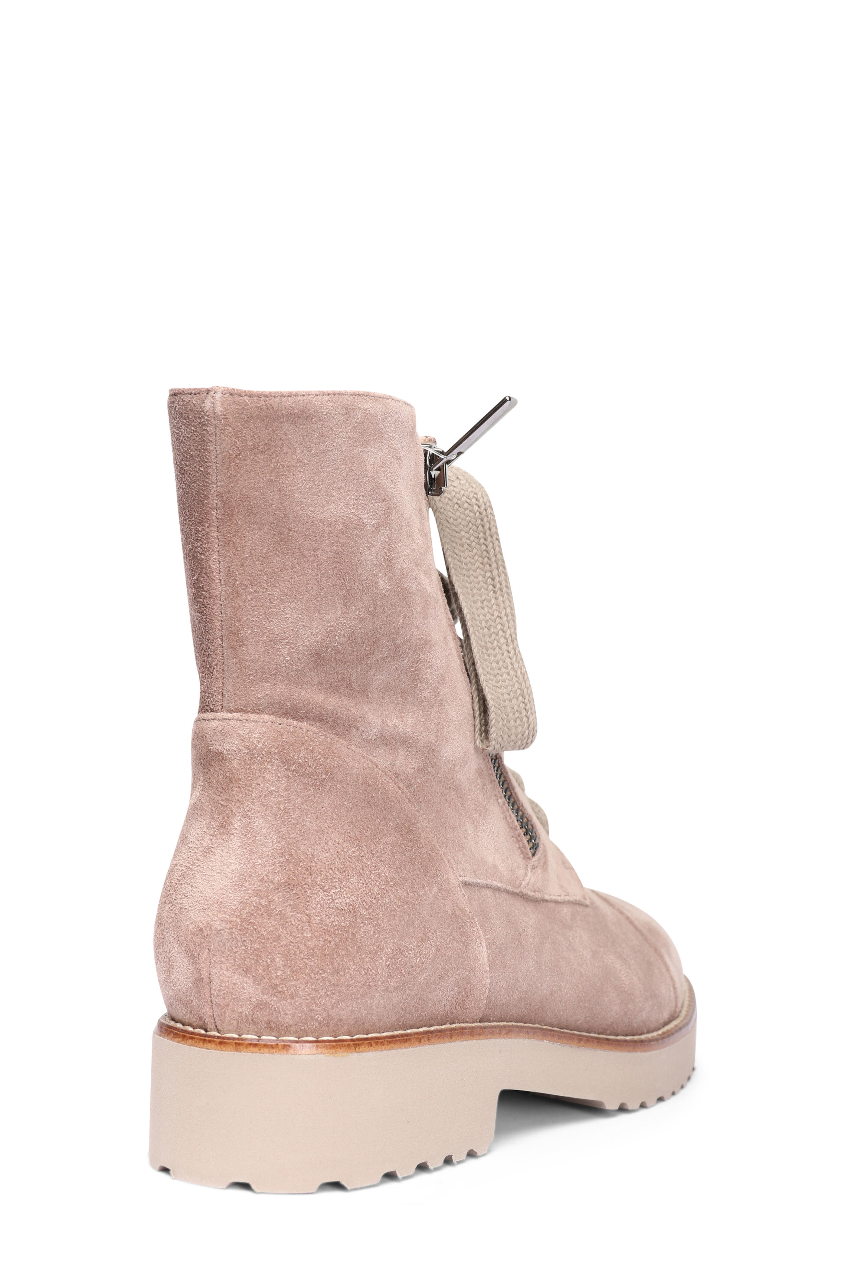 Leather lining. Rubber sole. Round toe. Lace-up vamp. Side zipper. Flat fabric laces. Anti-slip ultra light rubber mini lug sole. Made in Italy. Heel measurement: 40mm. Platform measurement: 25mm. 100% waterproof suede upper.