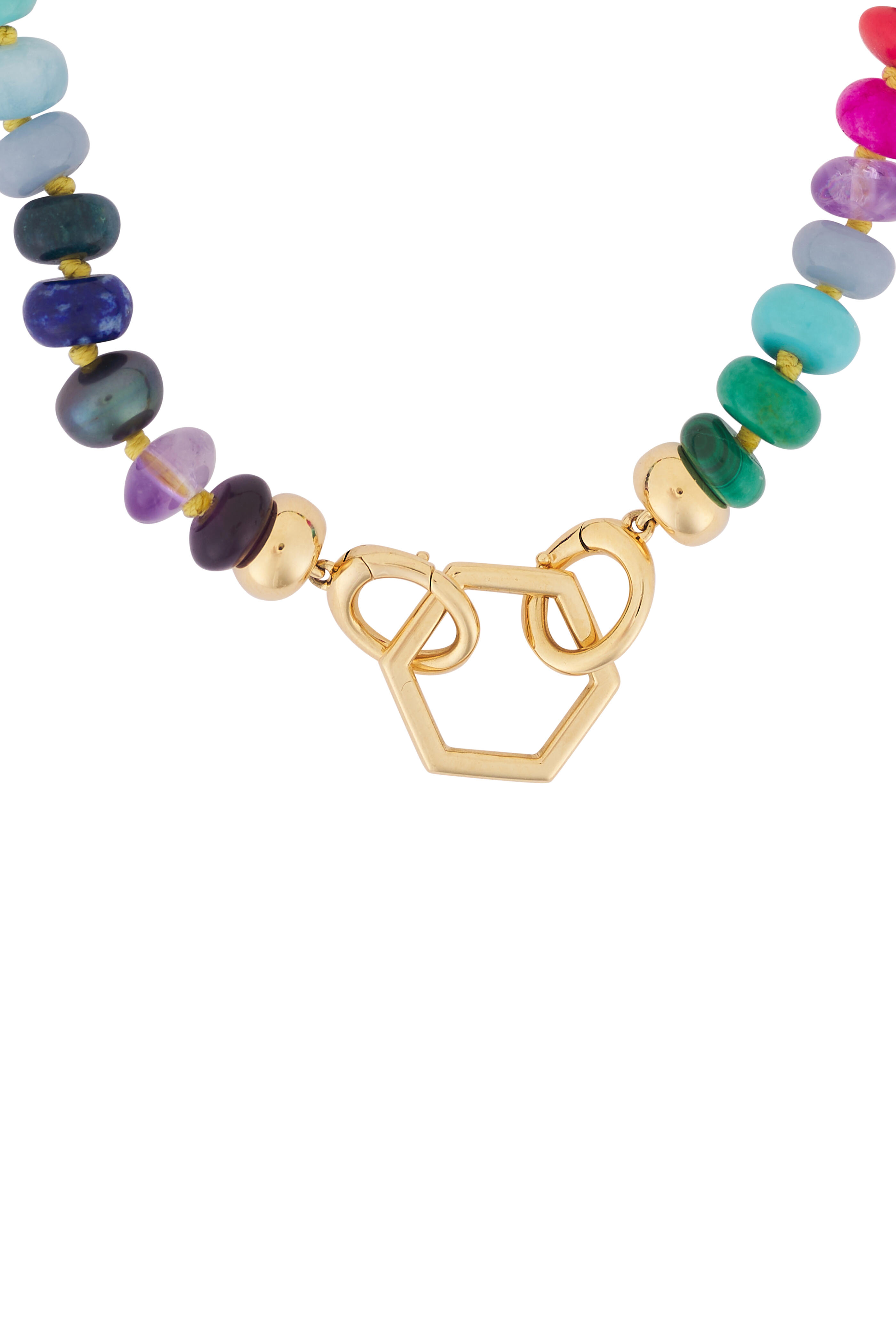 18k gold. Rainbow beads. Beaded. Lobster claw clasps. Made in the USA. Length: 18".