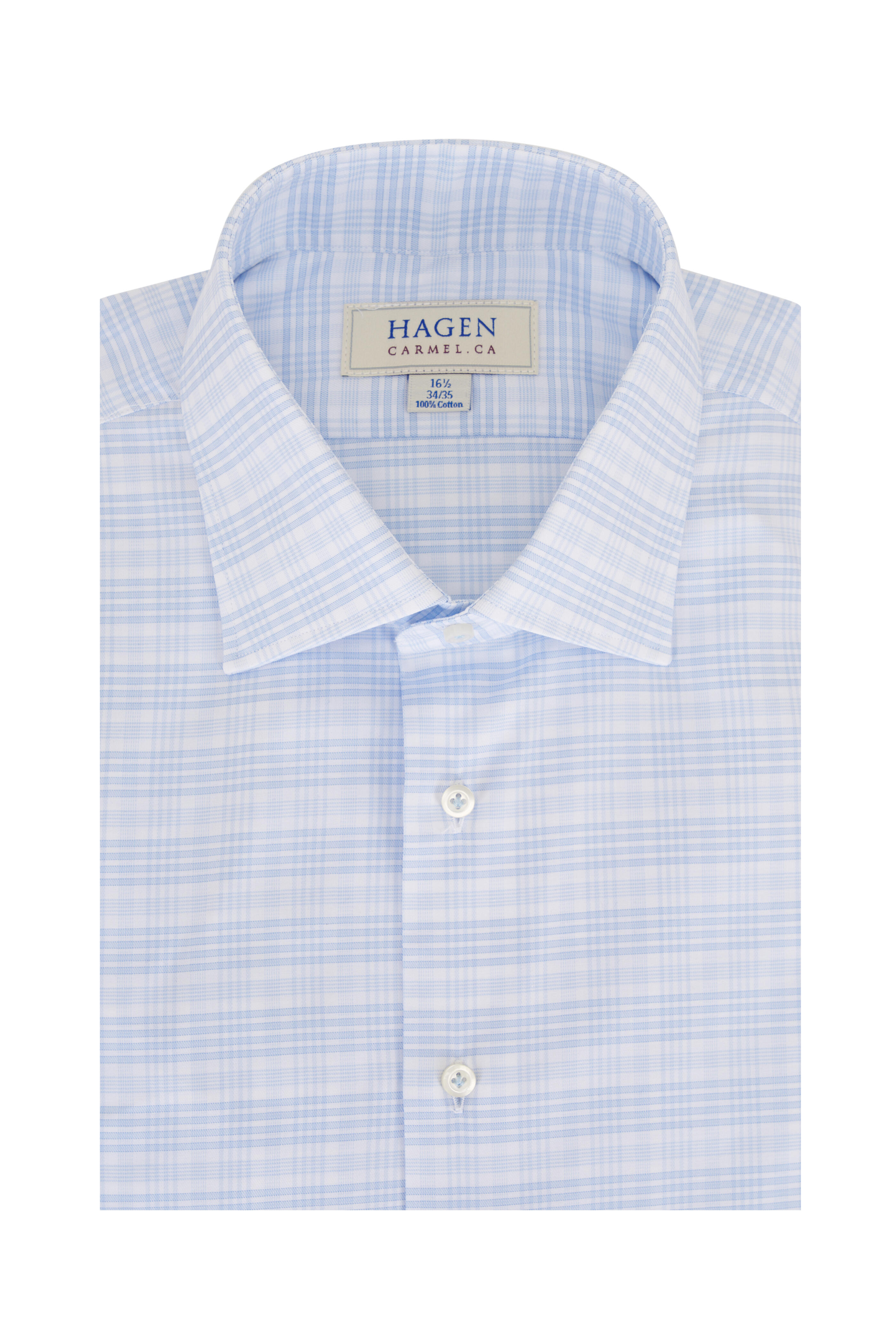 Sky Blue Plaid Cotton Dress Shirt