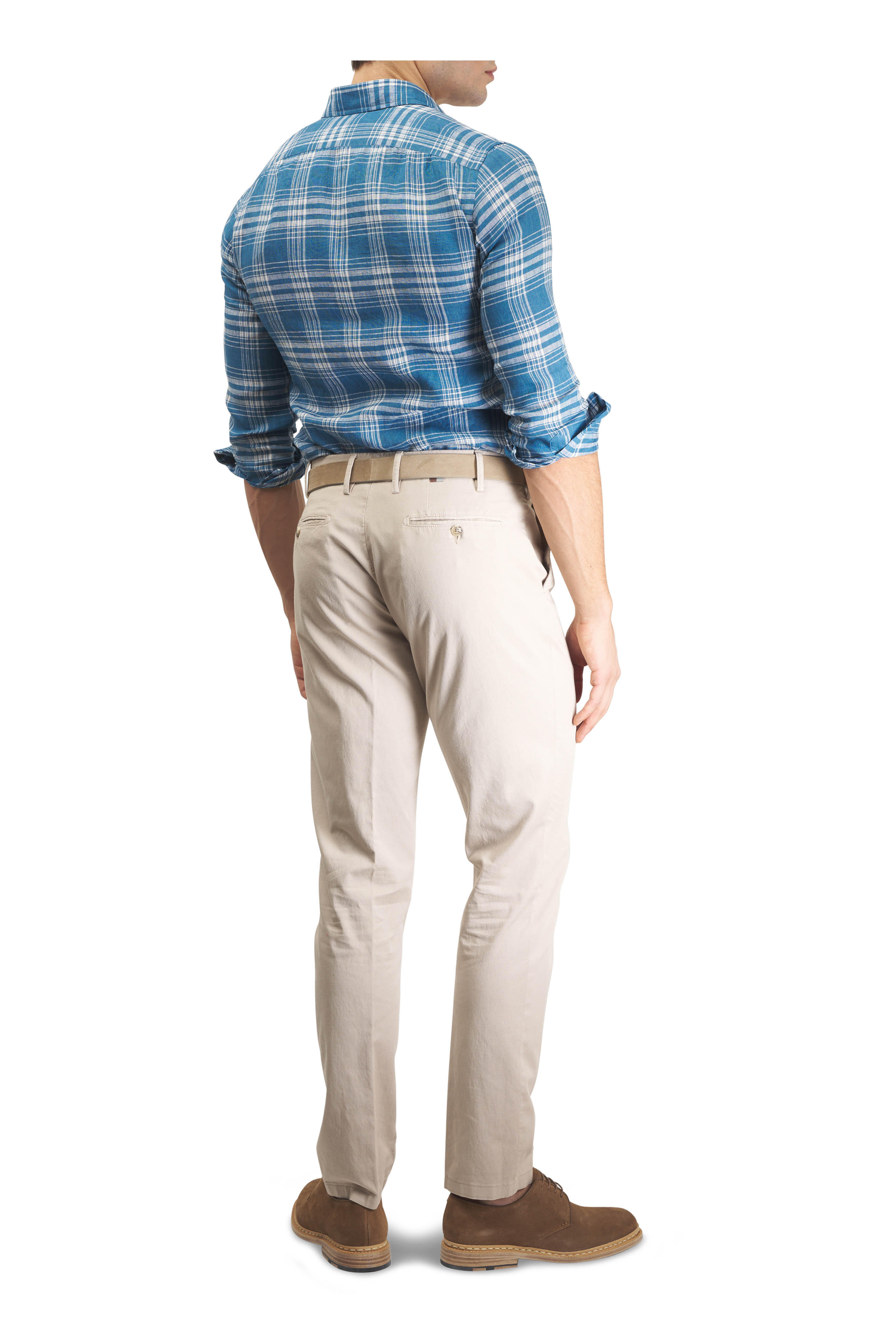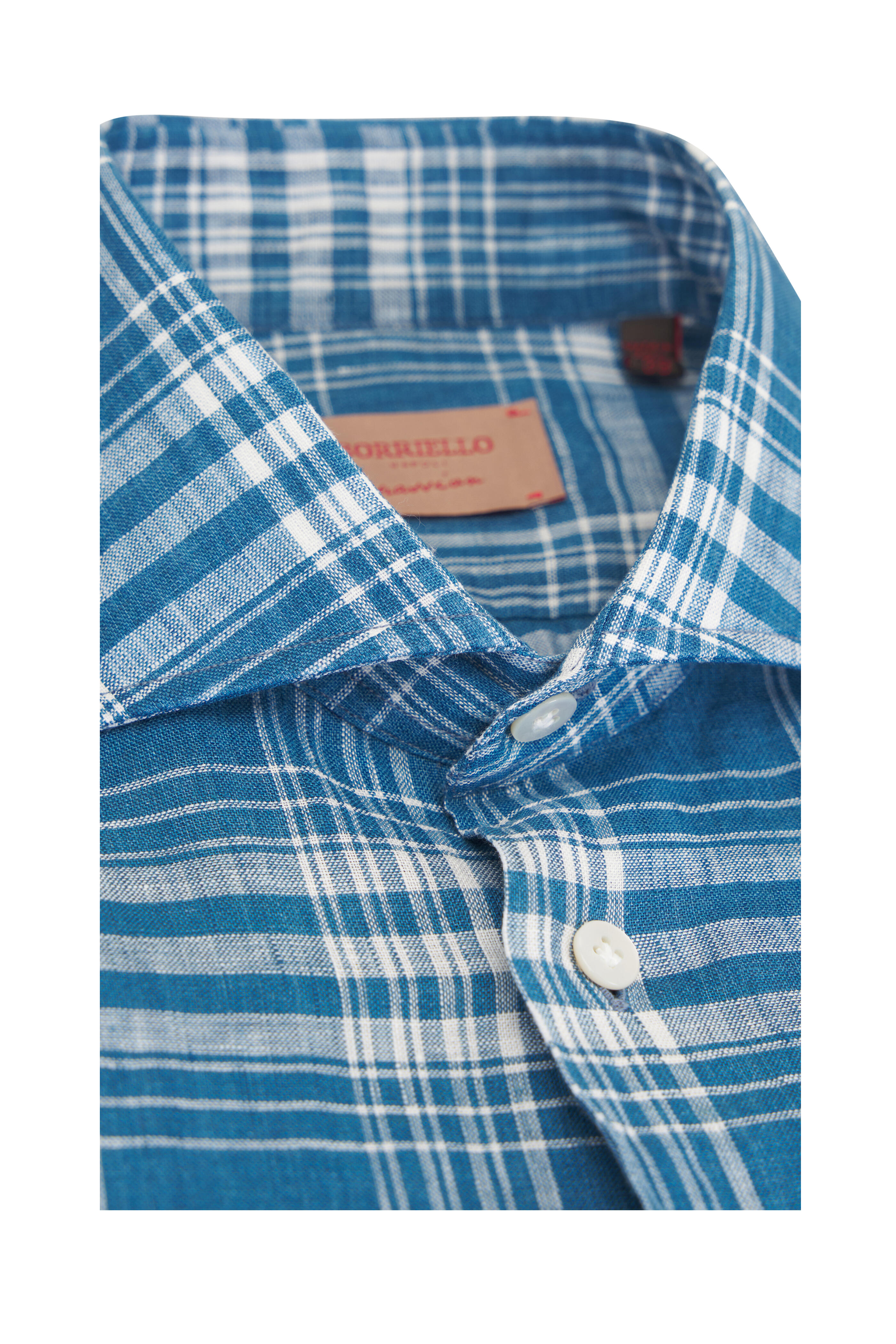 Blue Plaid Linen Dress Shirt