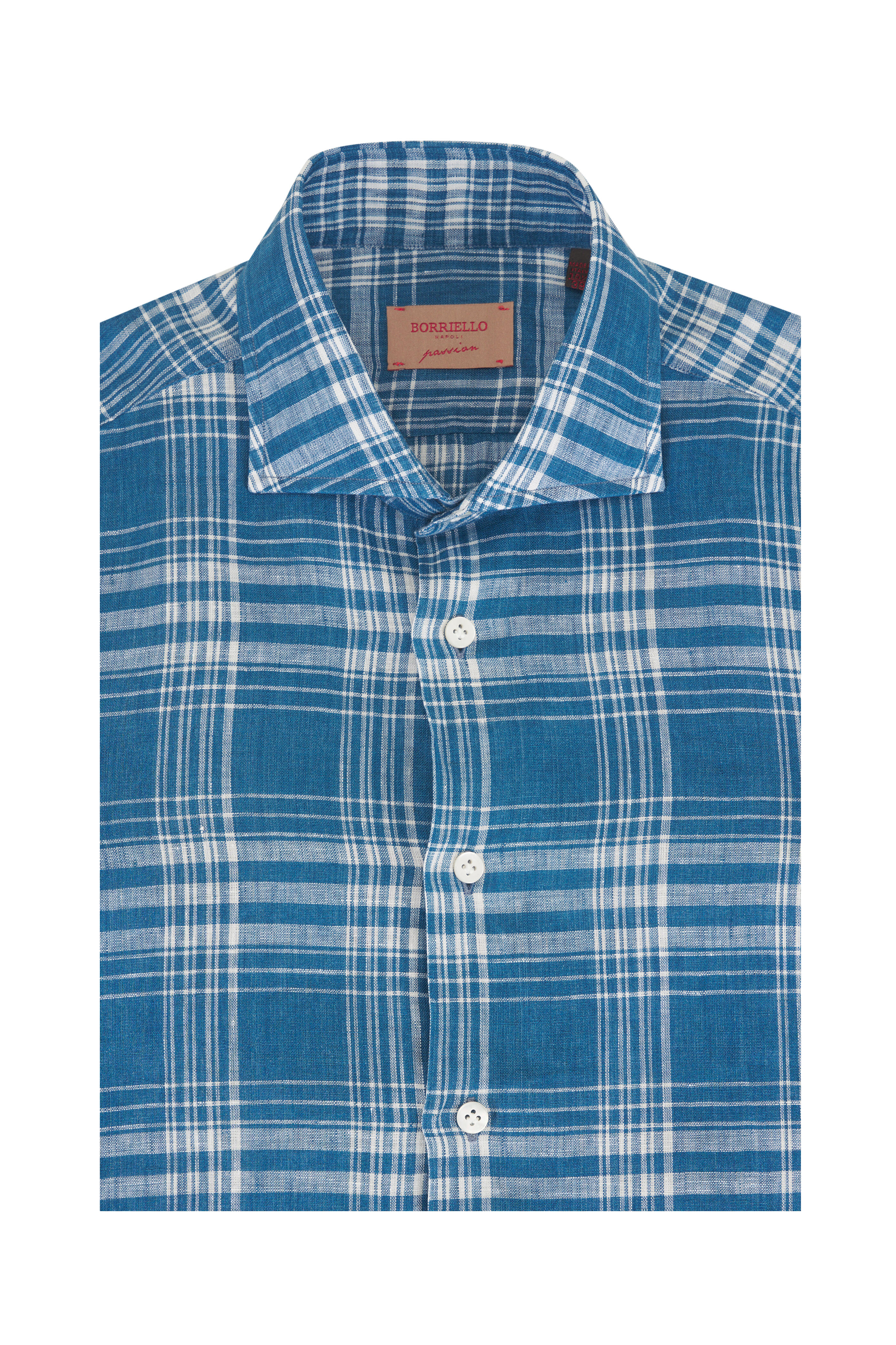 Spread collar. French front button placket. Single-button barrel cuffs. Made in Italy. 100% linen. Machine wash.