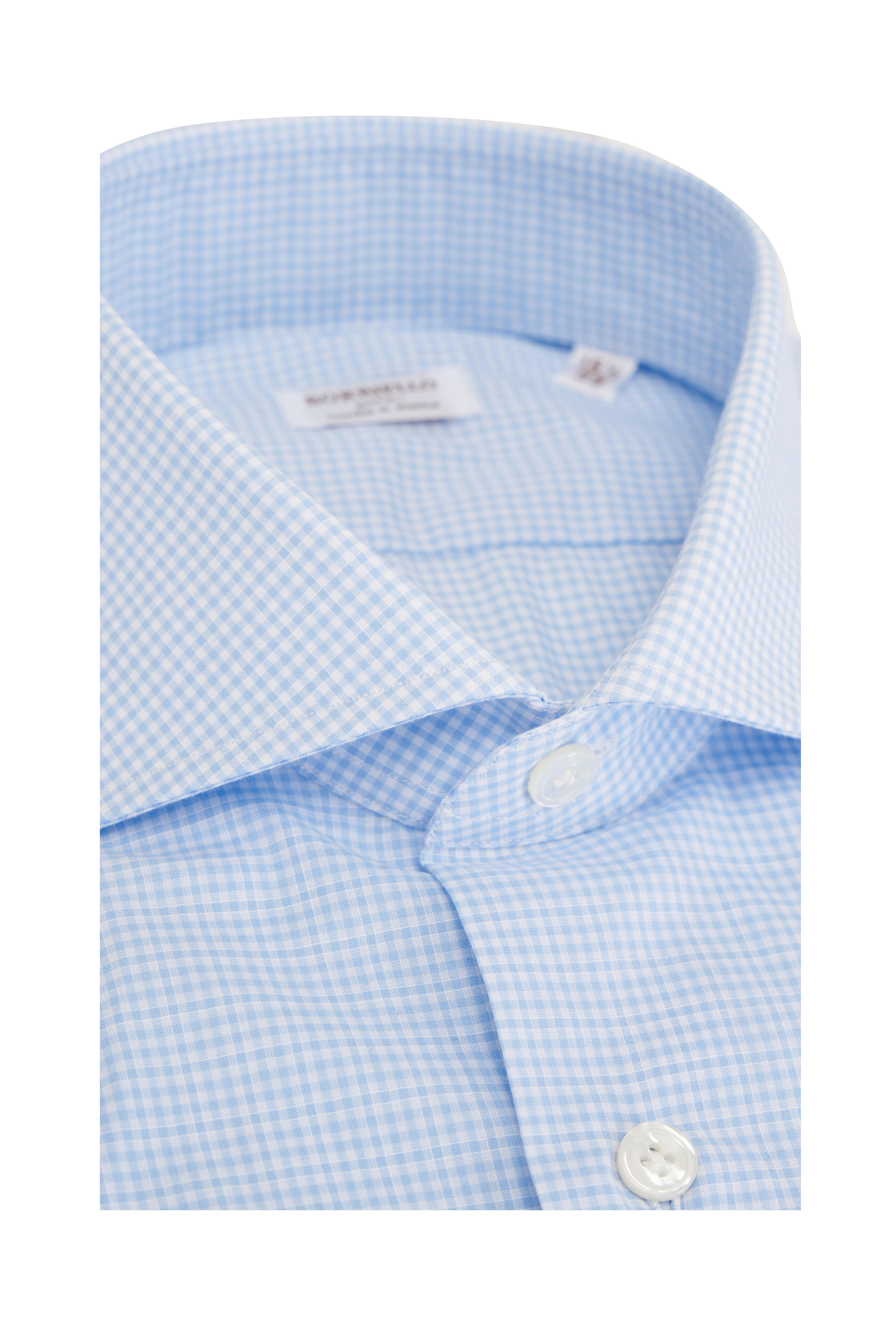 Spread collar. French front button placket. Single button barrel cuffs. Made in Italy. 100% cotton. Machine wash.