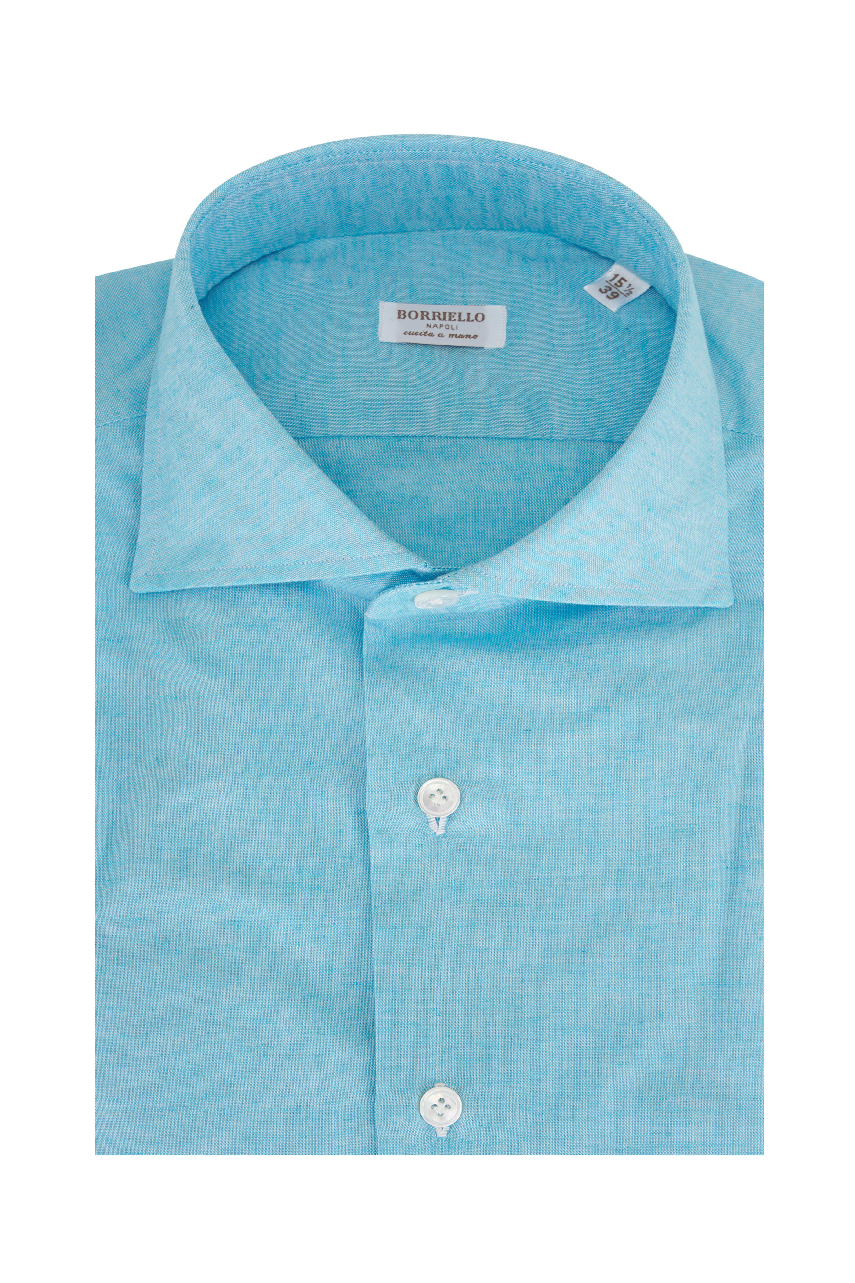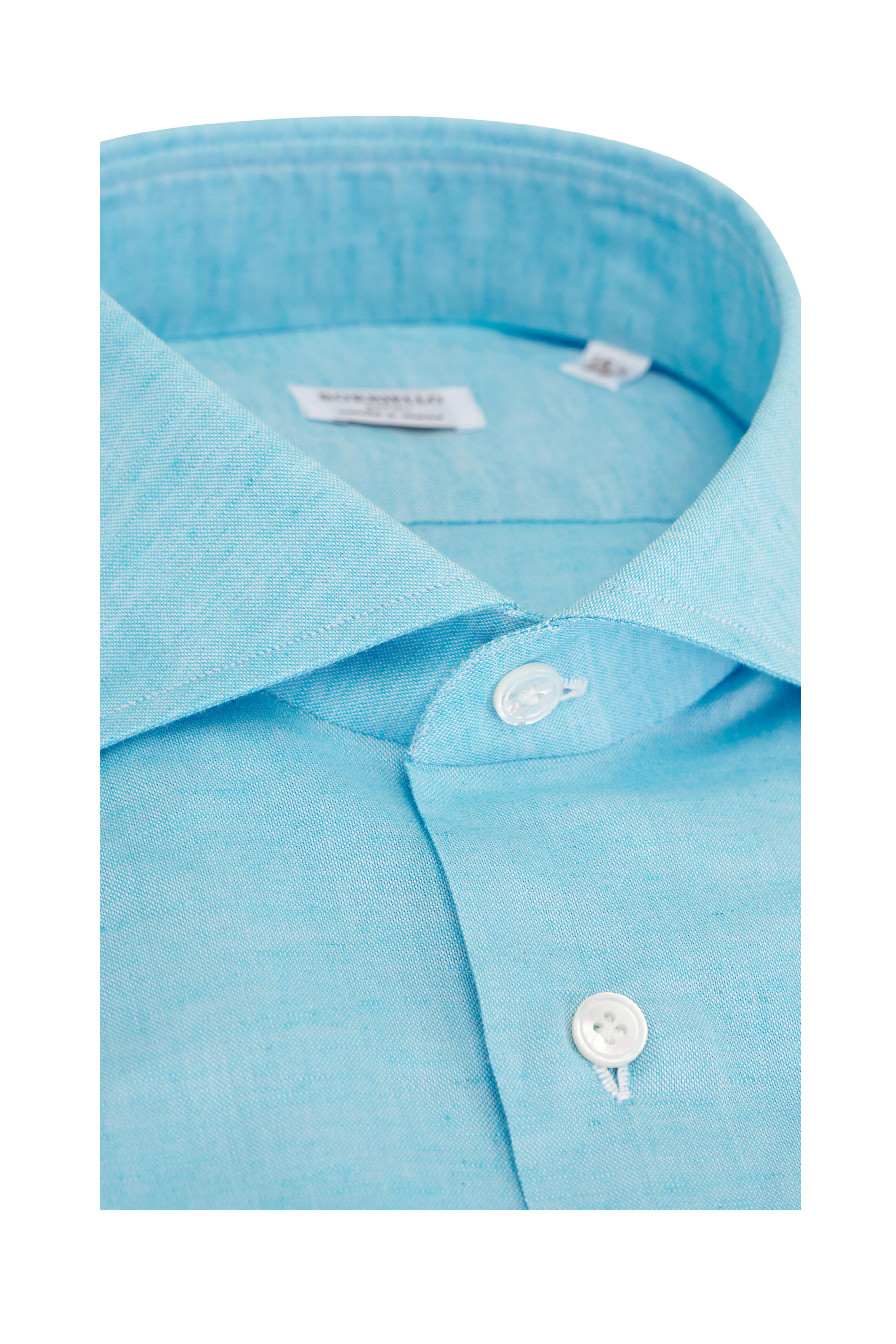 Solid Aqua Cotton & Linen Dress Shirt