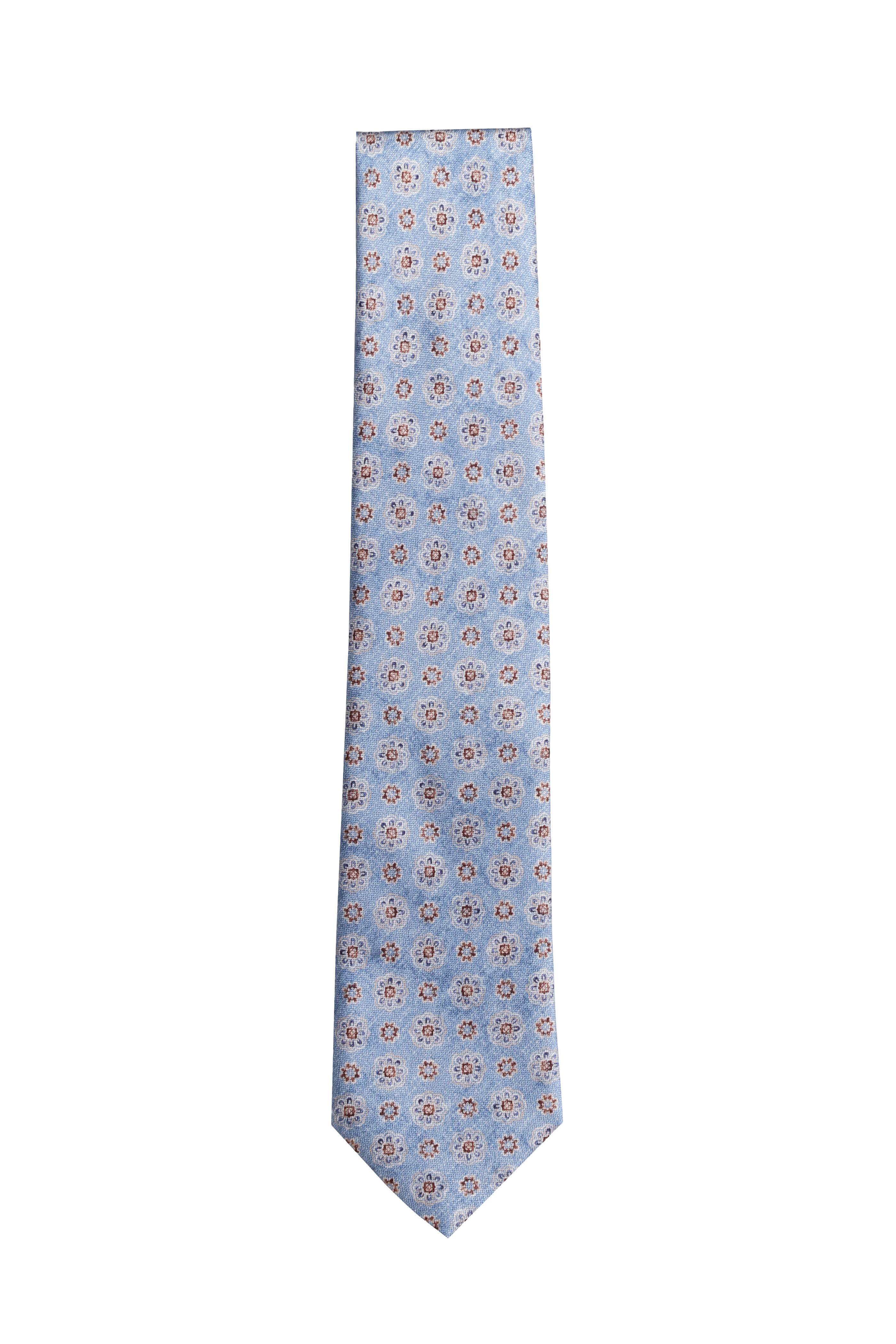 Light Blue Silk Geometric Necktie