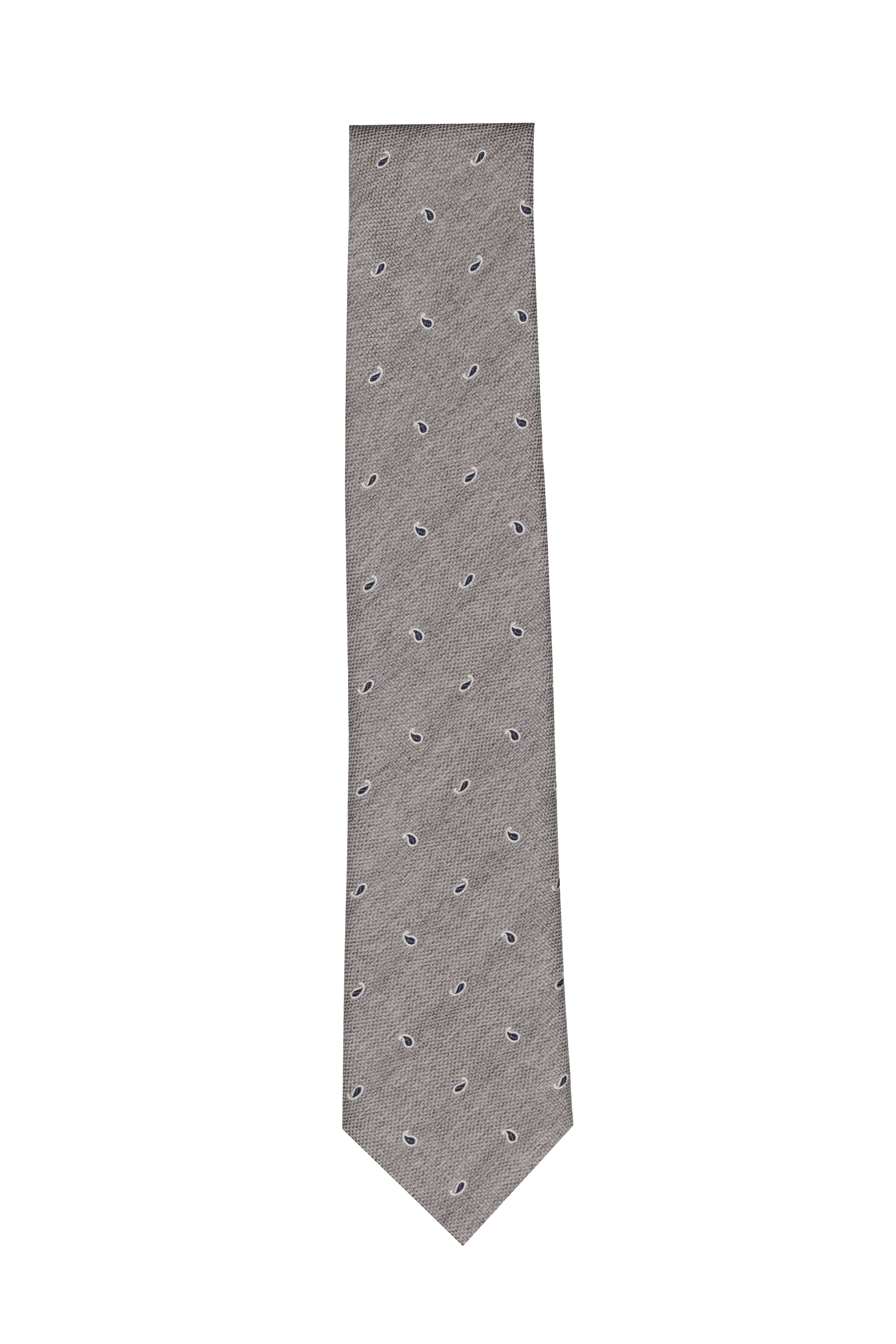 Gray Silk & Cotton Paisley Necktie