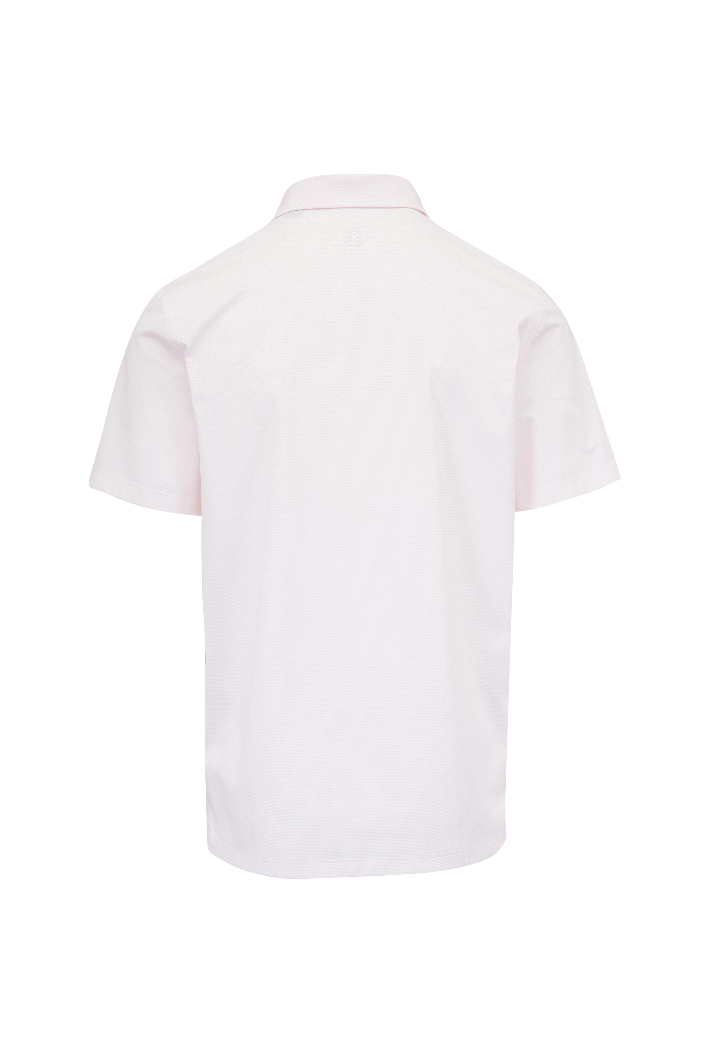 Spread collar. Three button placket. Vented hem. Imported. 86% nylon, 14% elastane. Machine wash.