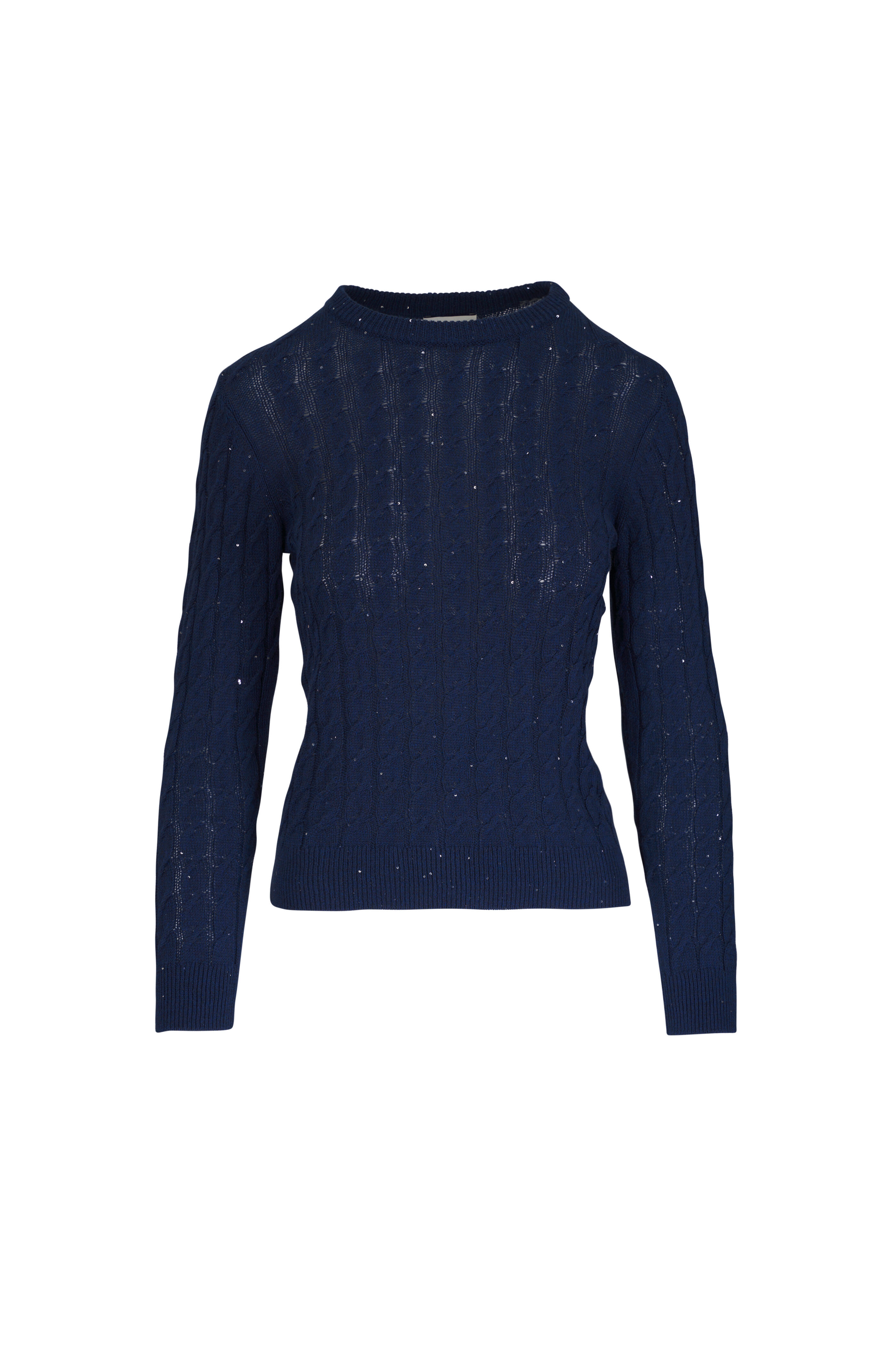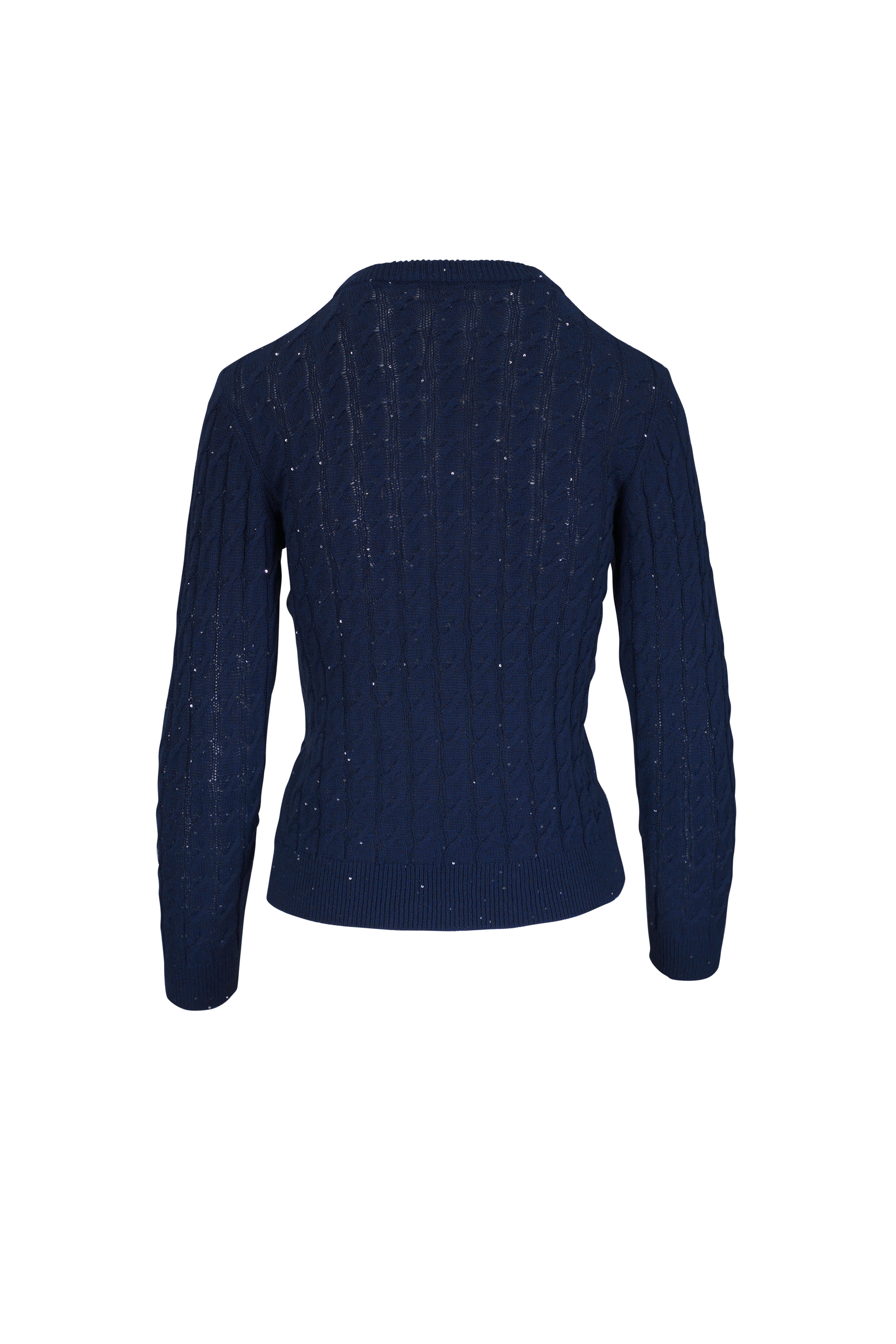 Navy Sequin Cable Knit Crewneck Sweater