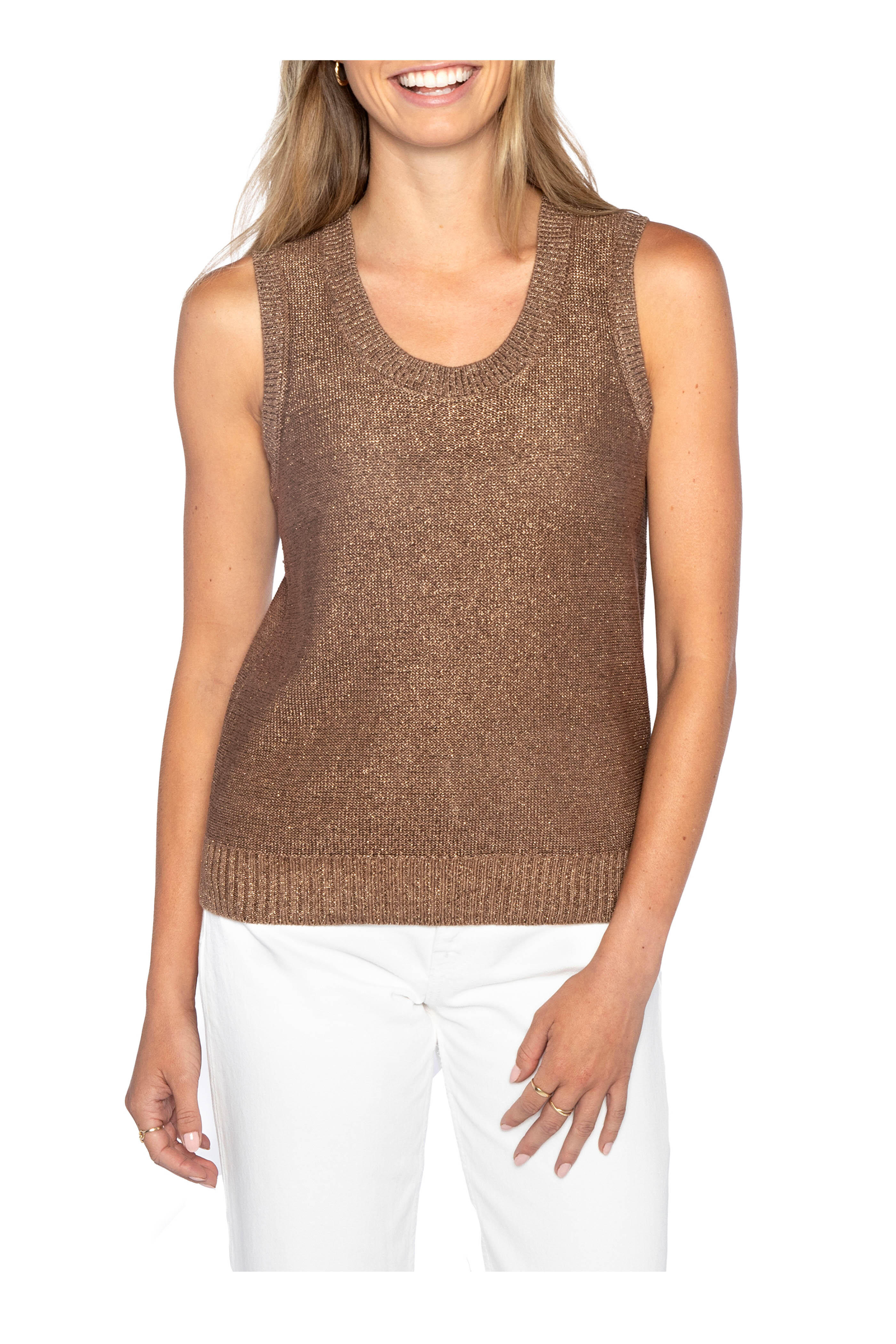 Round neckline. Ribbed trims. Imported. 100% linen. Hand wash.