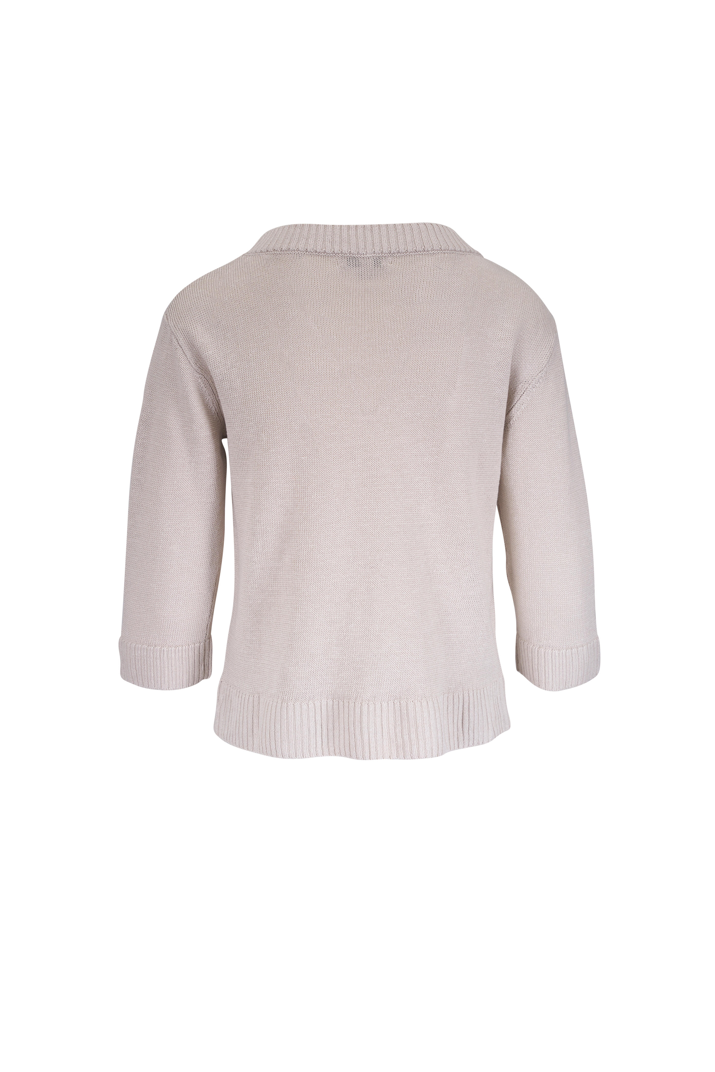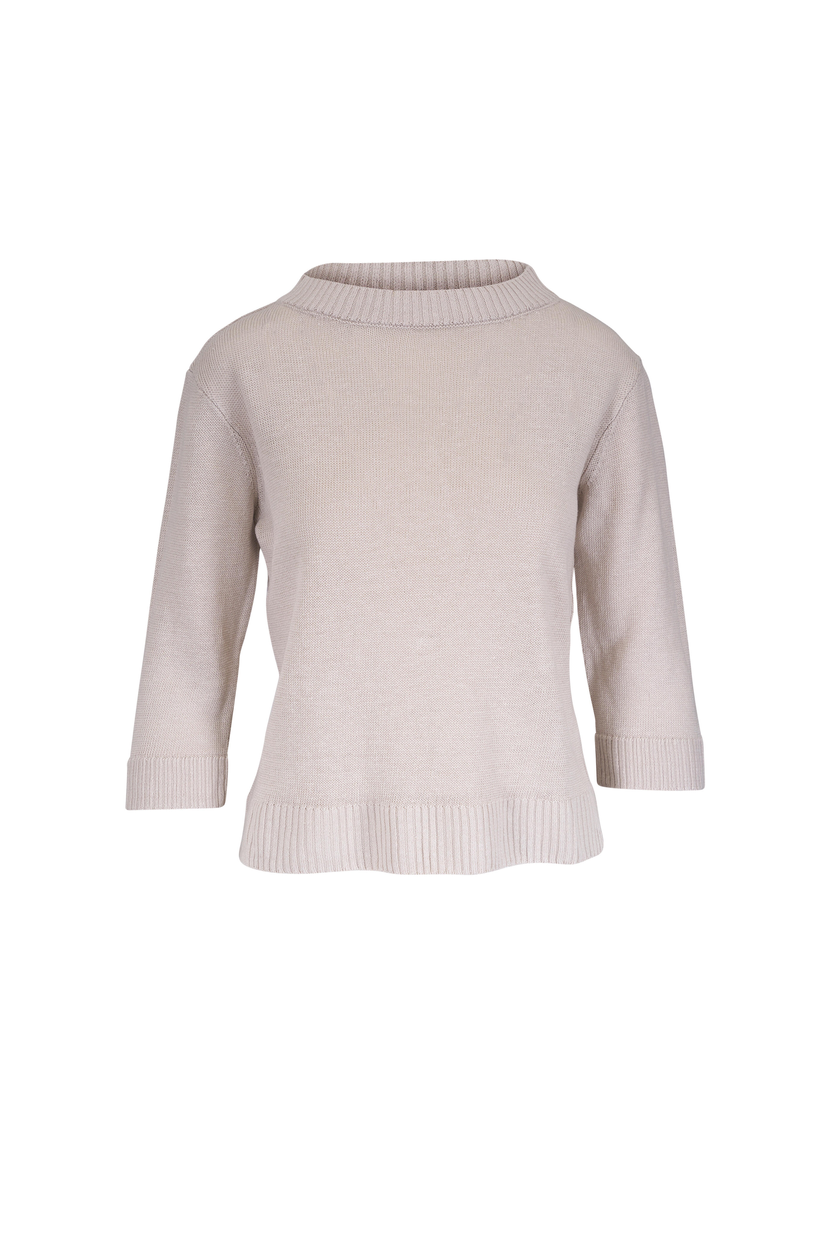 Ribbed collar. Elbow length sleeves. Ribbed trims. Imported. 100% linen. Dry clean.
