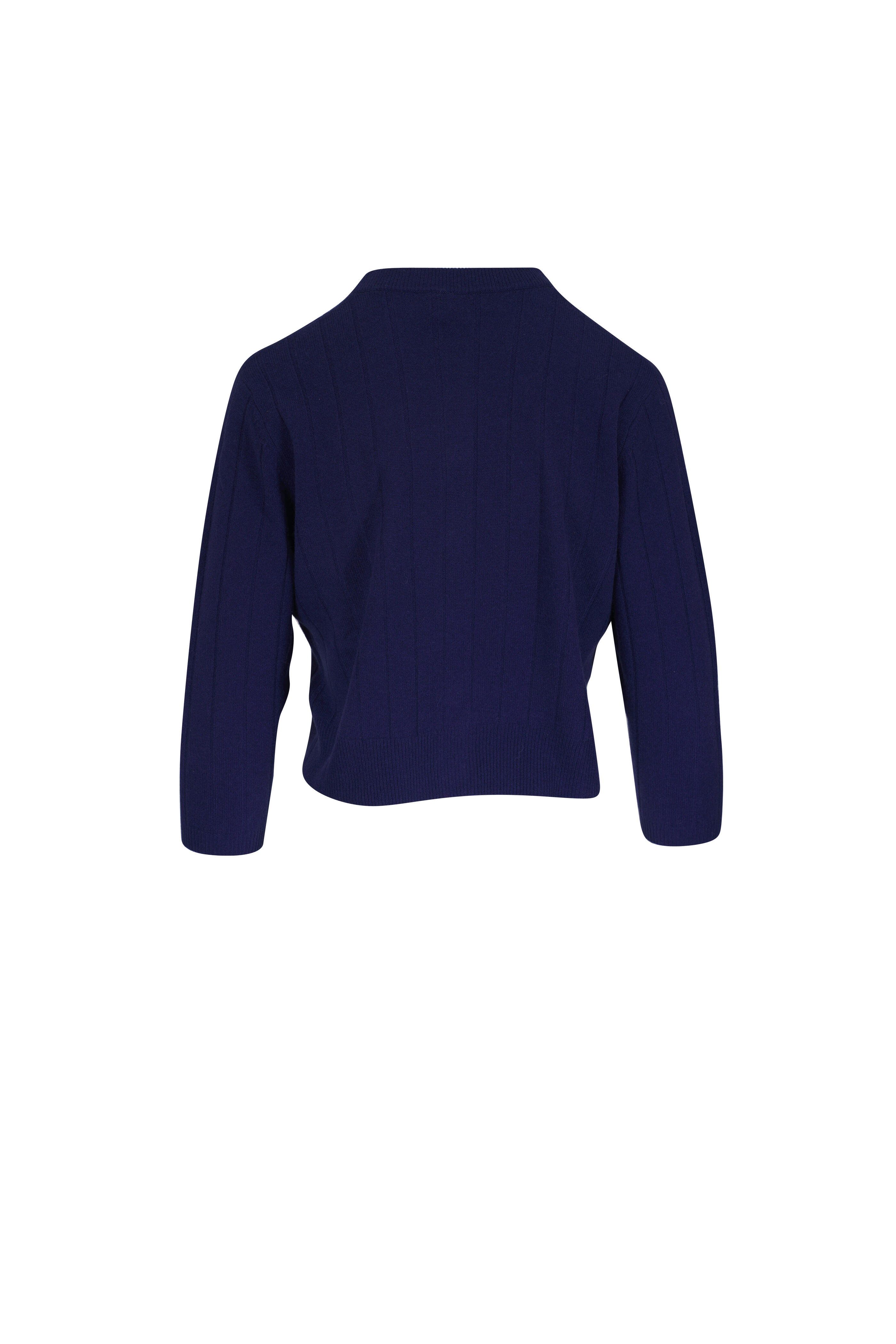 Navy Blue Ribbed Cashmere Cardigan