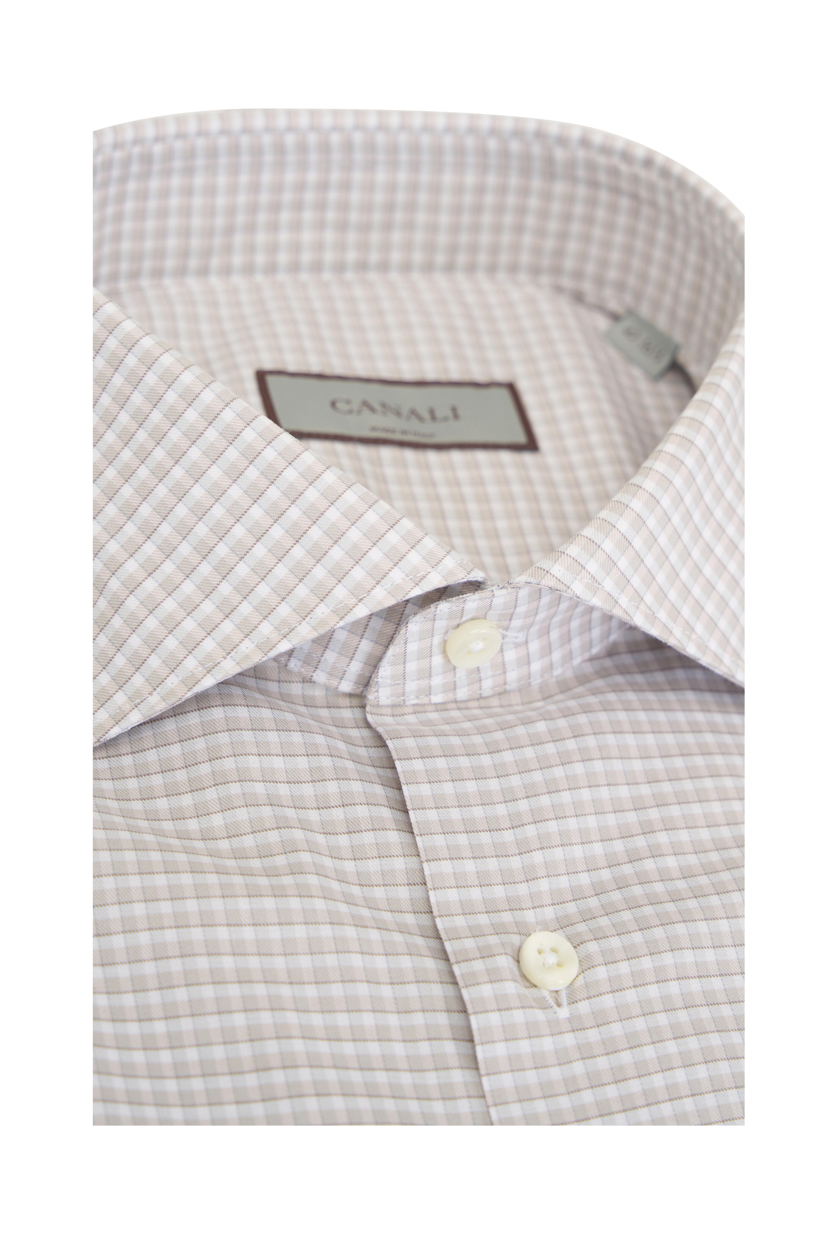 Spread collar. French front button placket. Single button barrel cuffs. Made in Italy. 100% cotton. Machine wash.