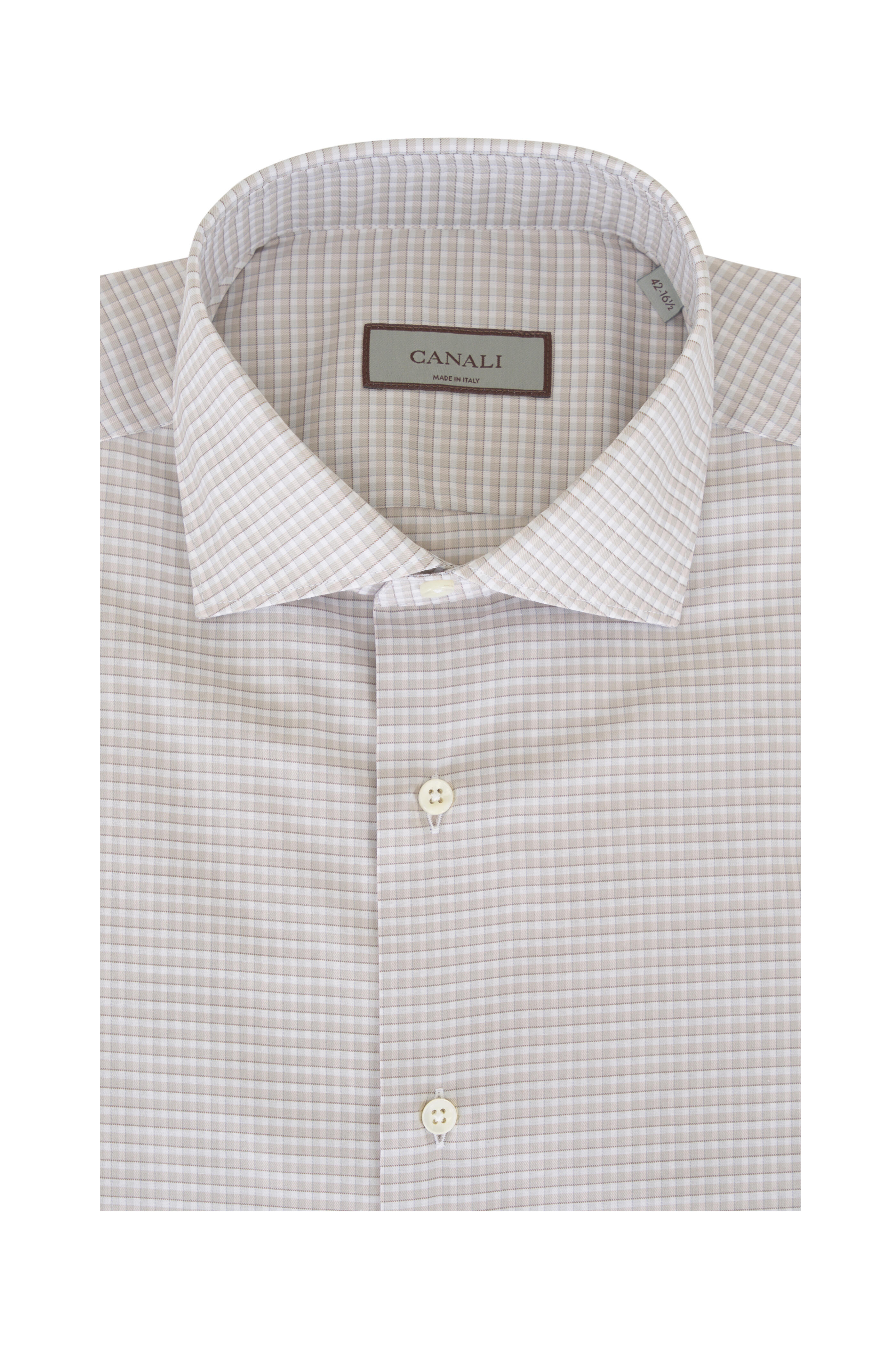 Gray & Beige Check Cotton Dress Shirt