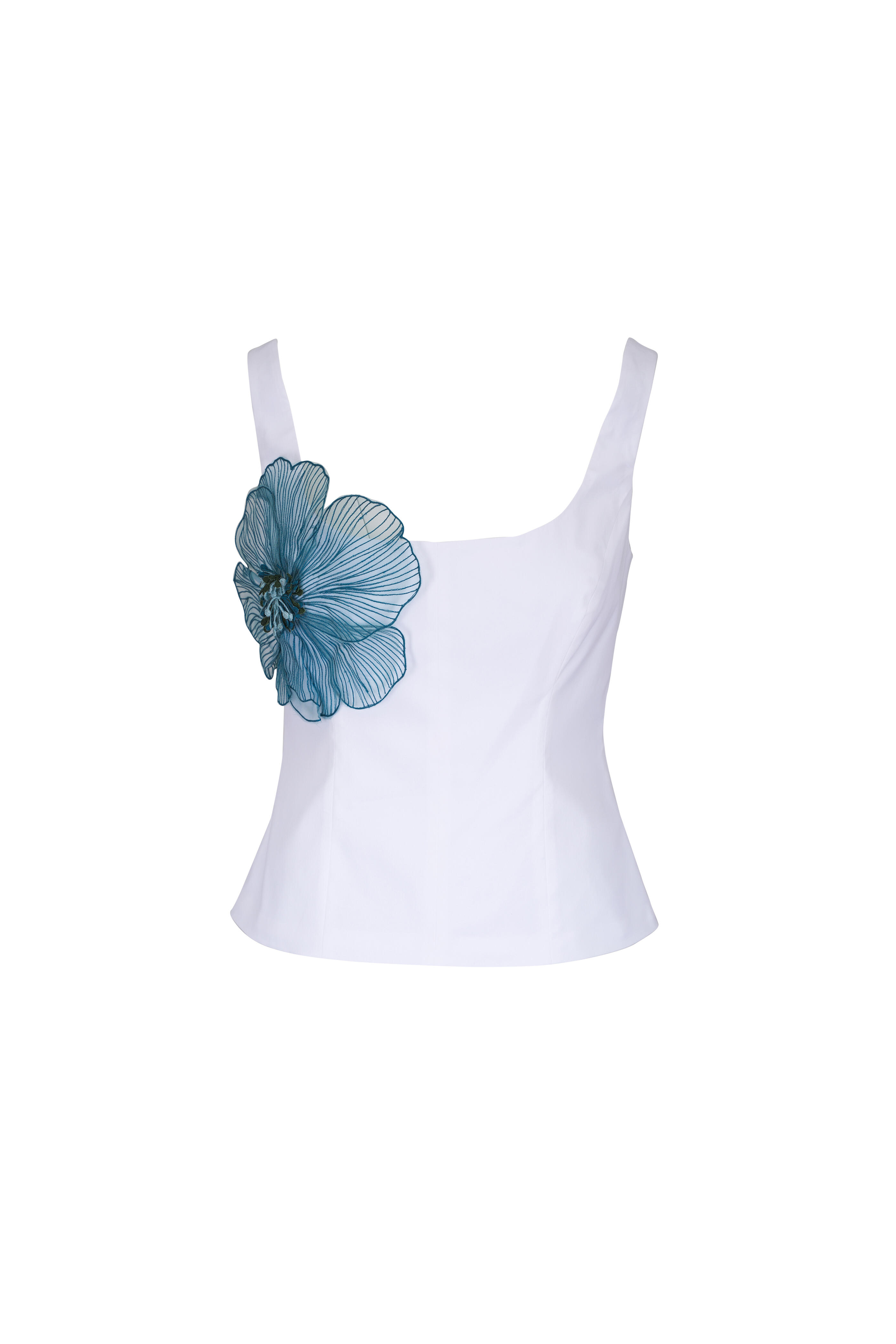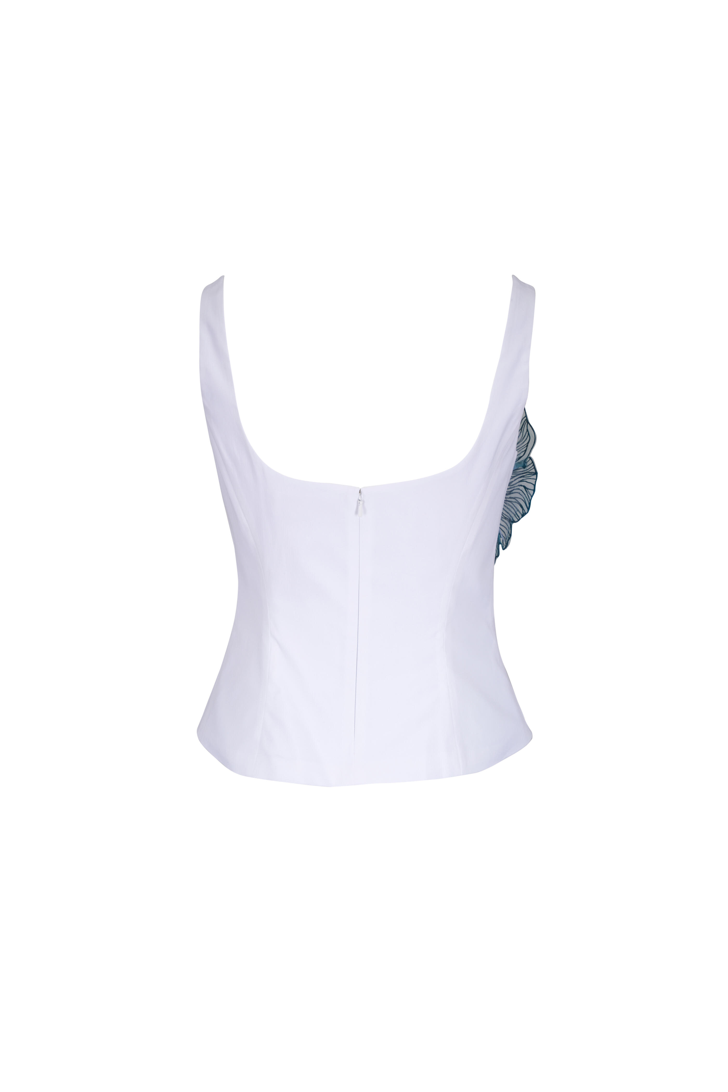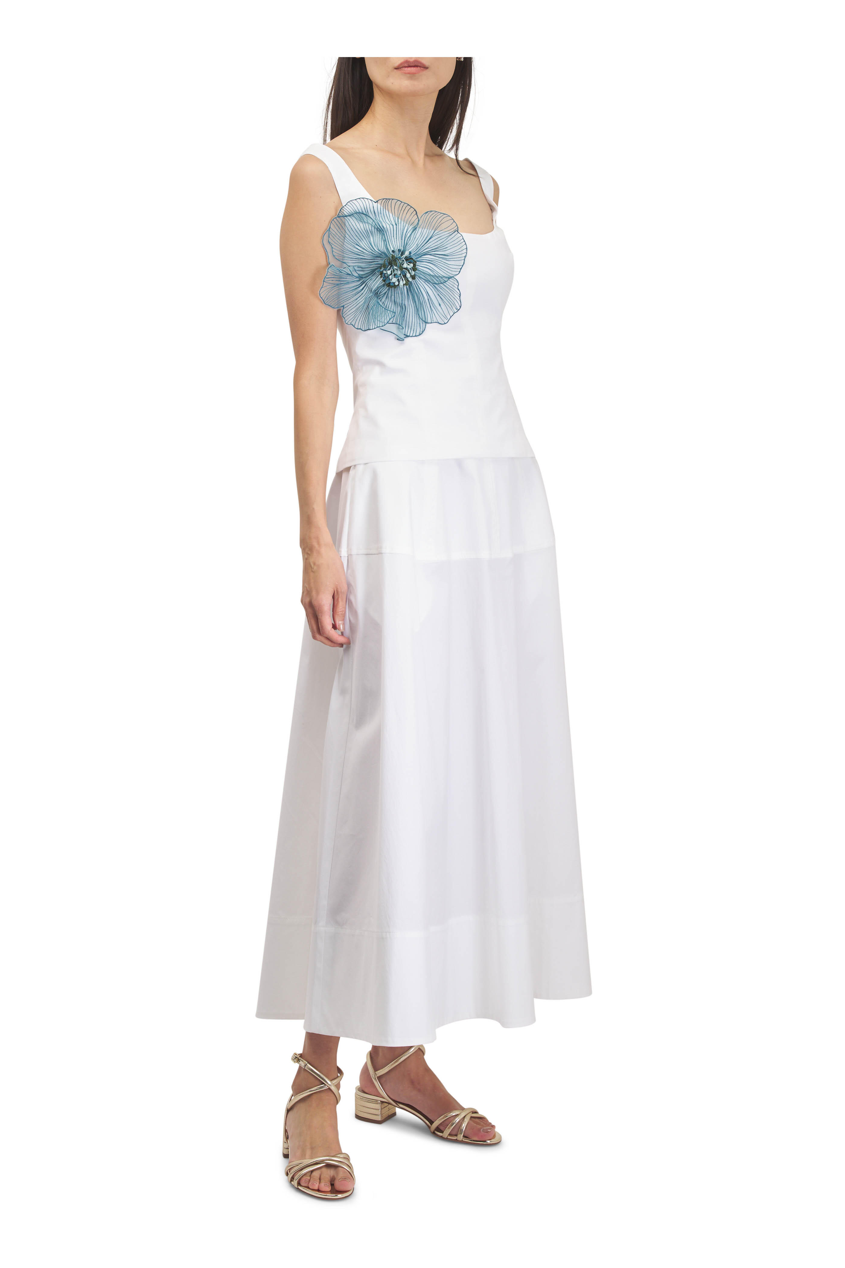 Scoop neckline. Concealed back zip. Made in USA. 21" shoulder to hem. 78% cotton, 18% polyester, 4% elastane. Dry clean.