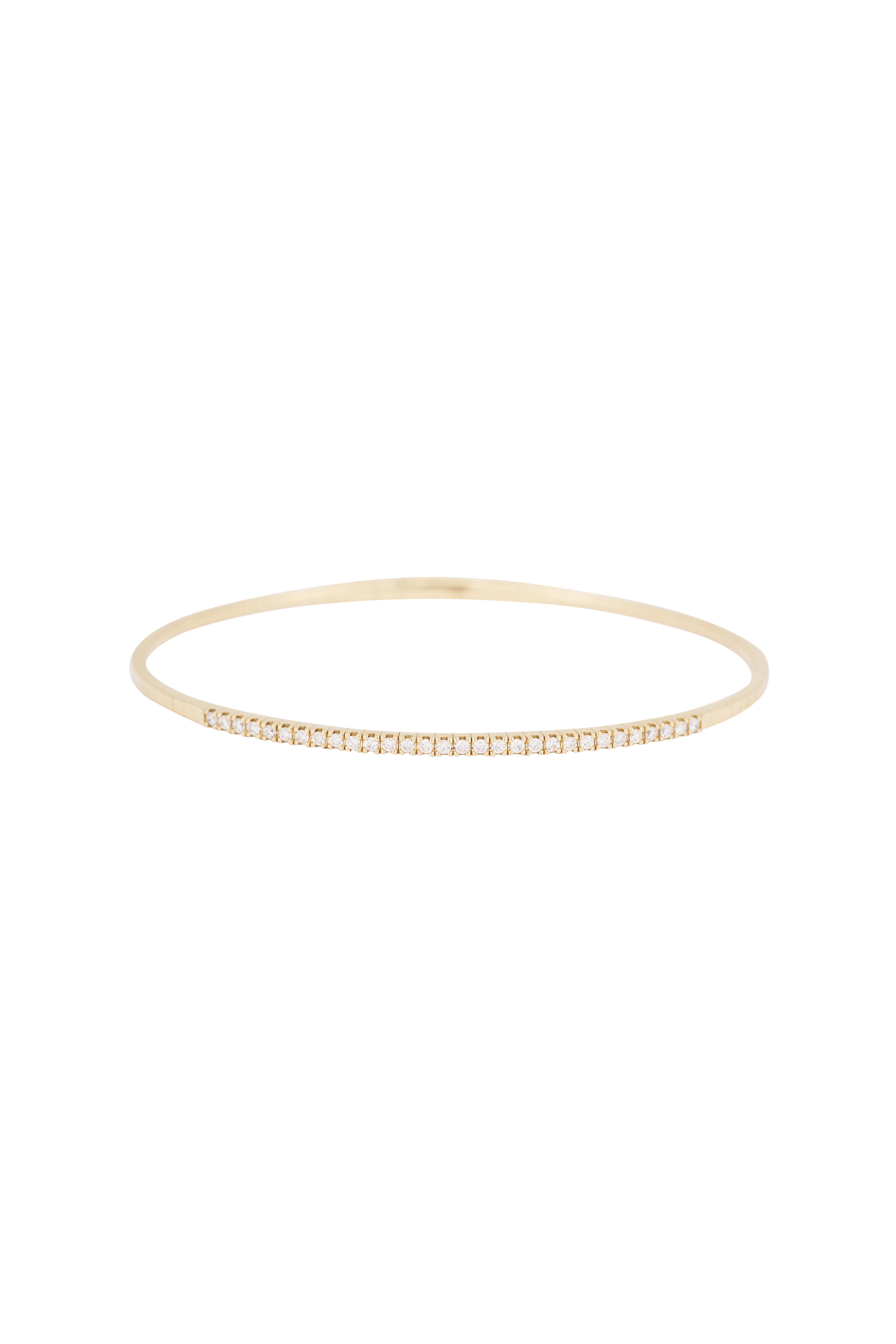 14k Yellow Gold White Diamond Flex Stacking Bangle