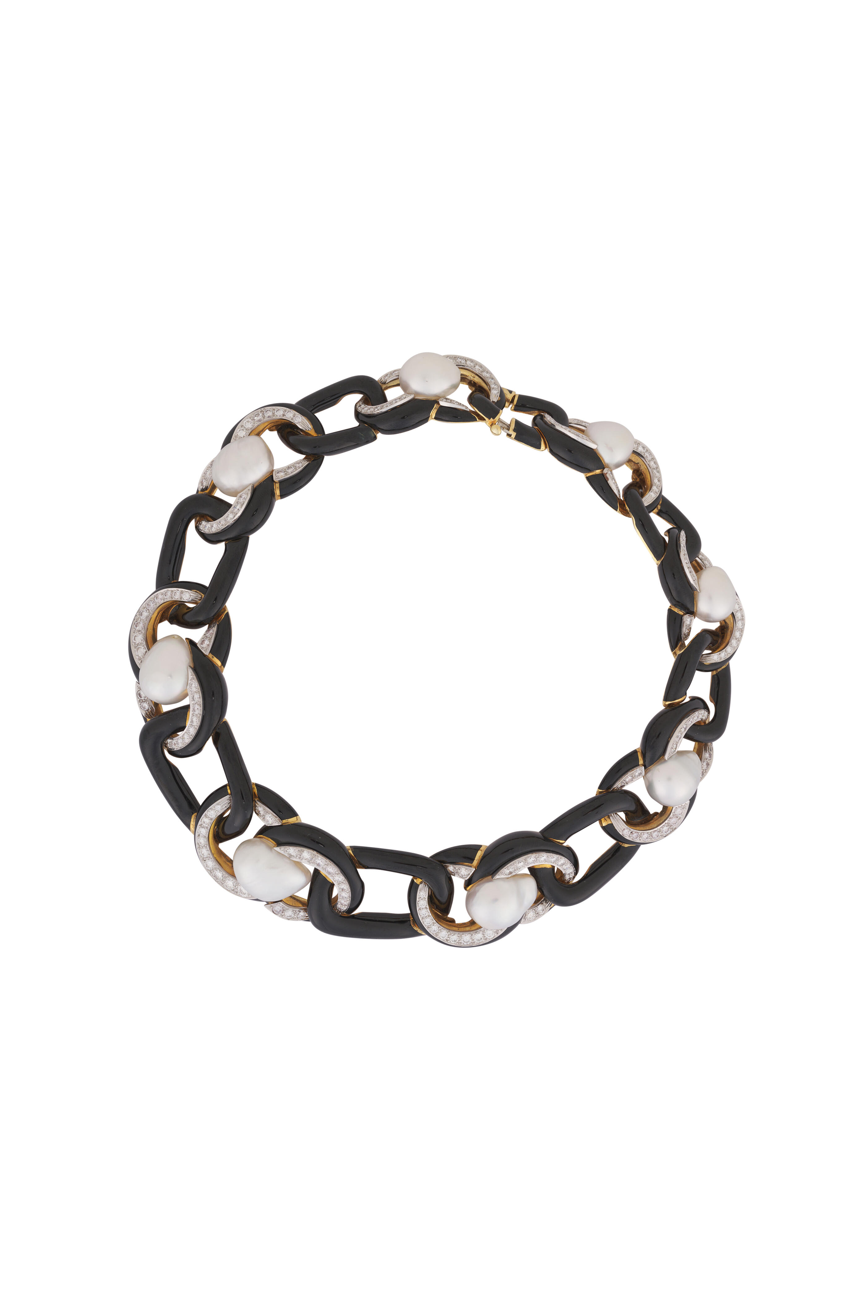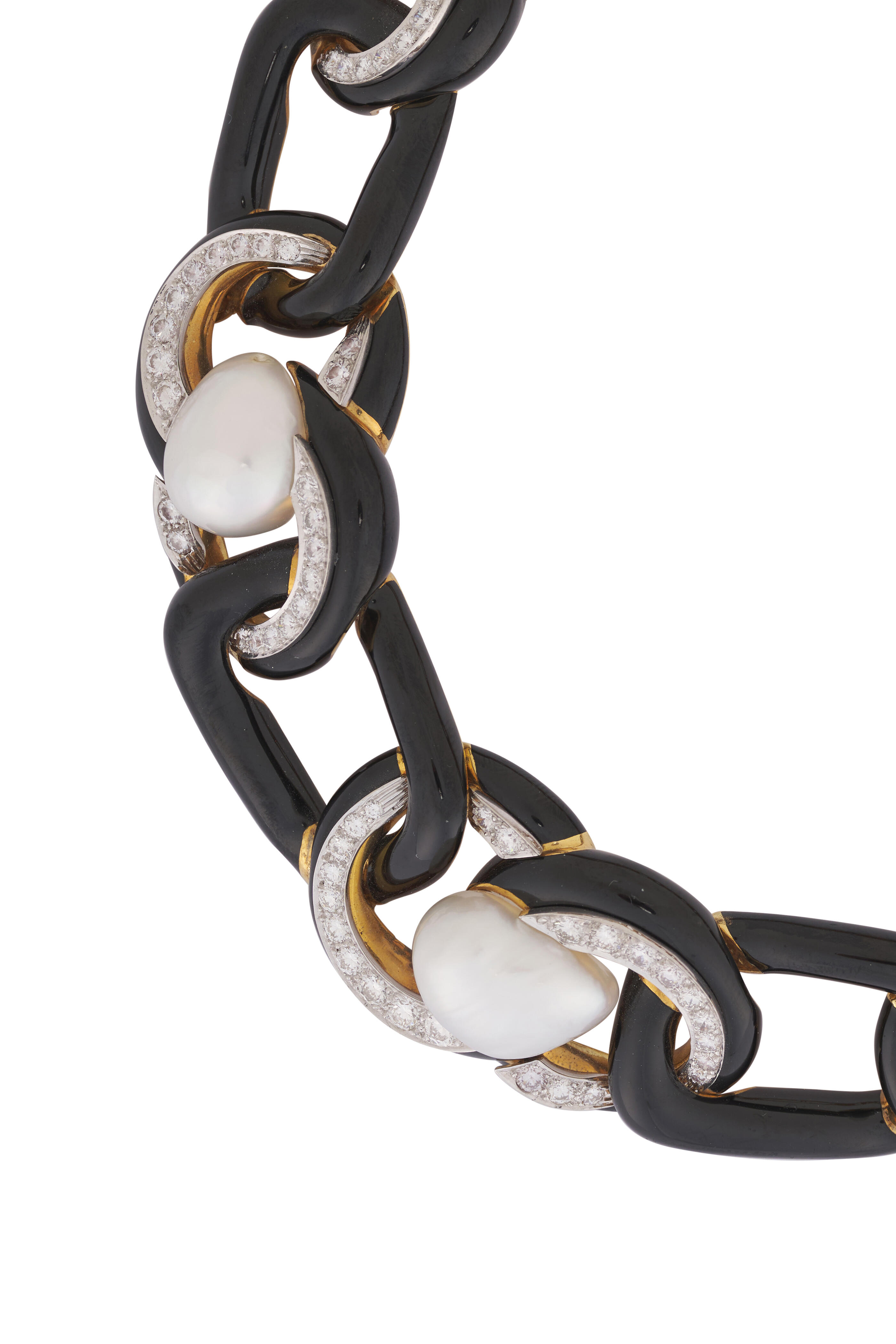 David Webb. Diamond. Enamel. Pearl. 1970's.