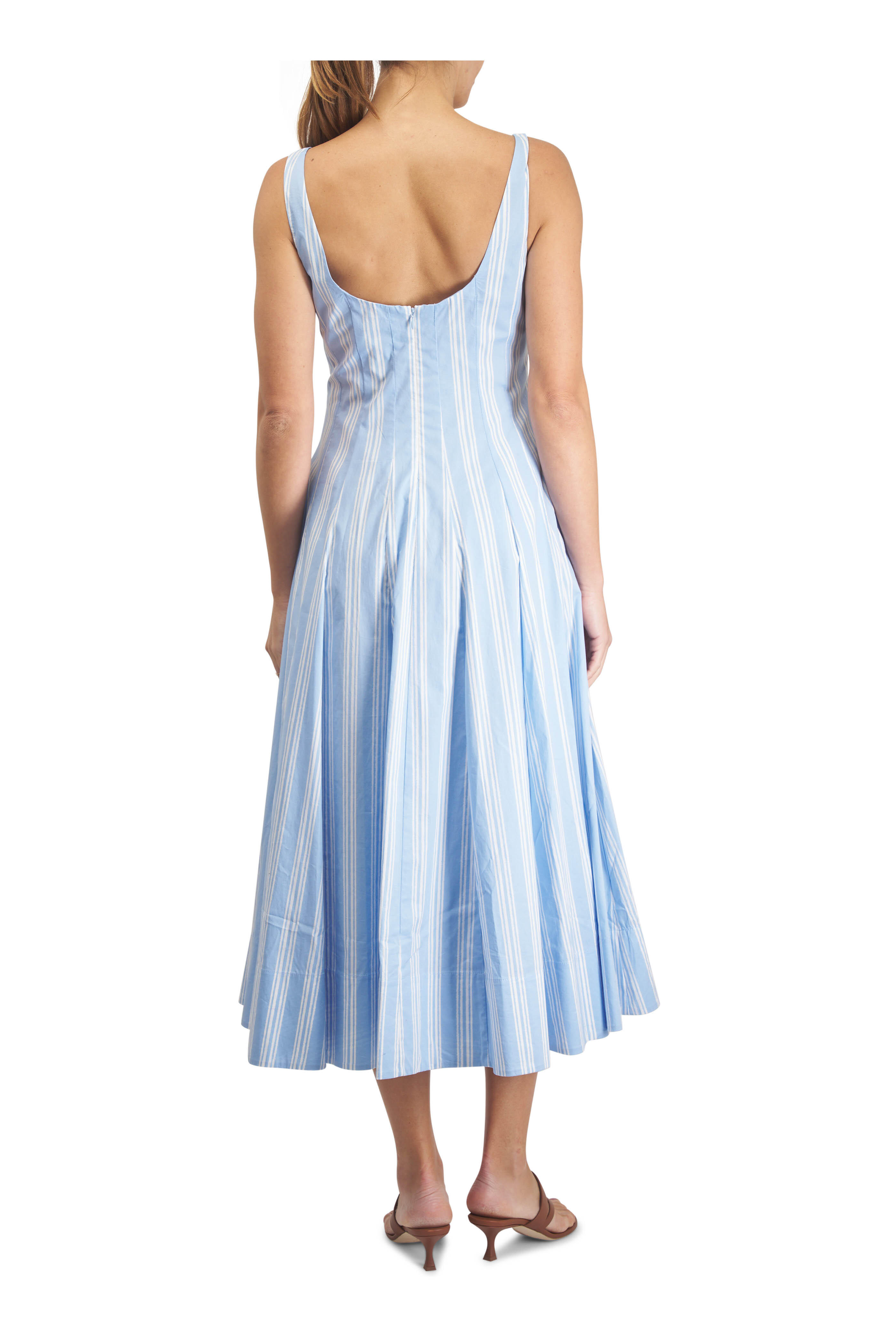 Square neckline. Sleeveless. Hidden back-zip closure. Imported. 98% Cotton, 2% Spandex. Dry clean.
