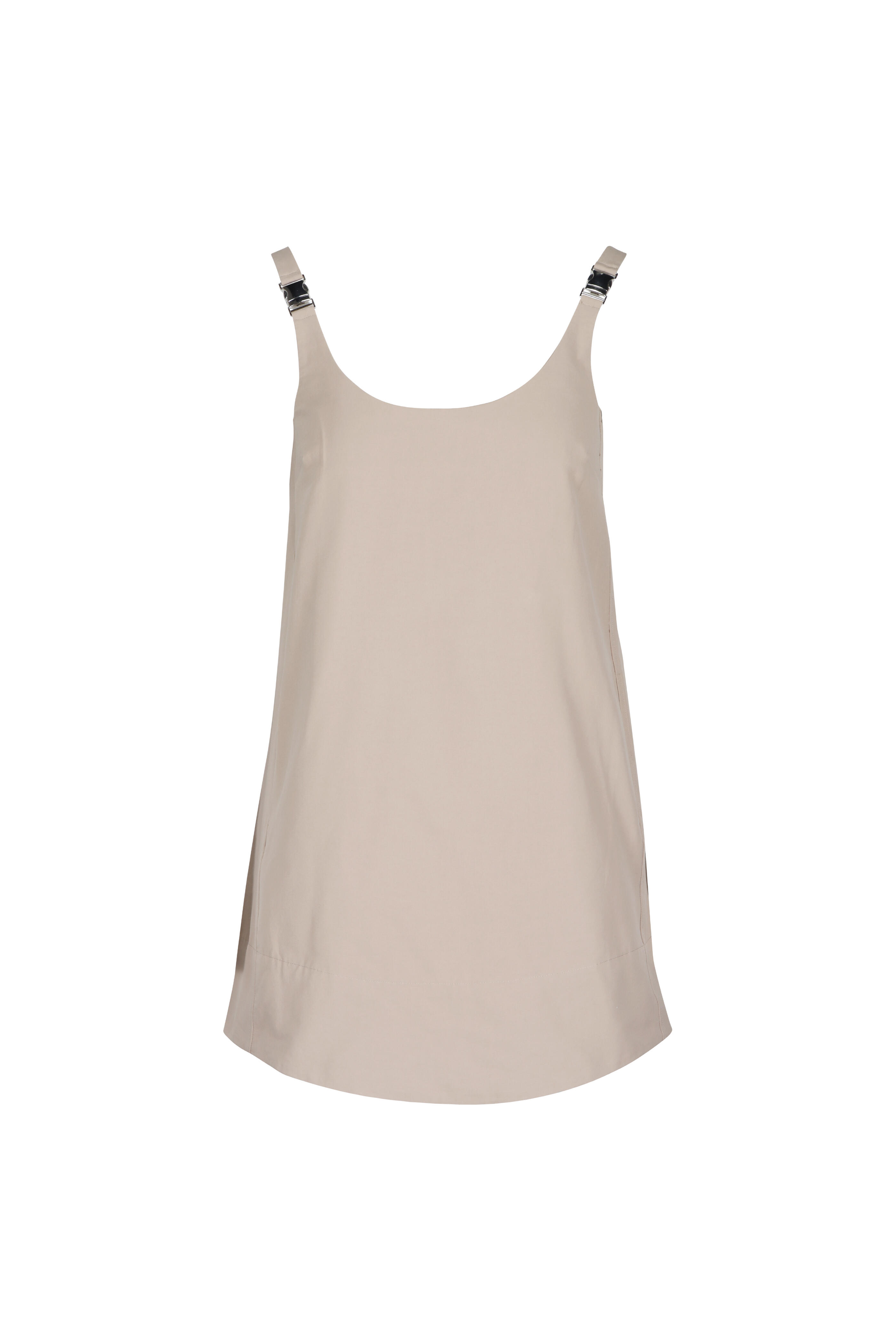 Scoop neckline. Sporty speed clip straps. Sleeveless. Two side on-seam pockets. Imported. Fits true to size.. 67% Cotton, 33% Nylon. Dry Clean Only.