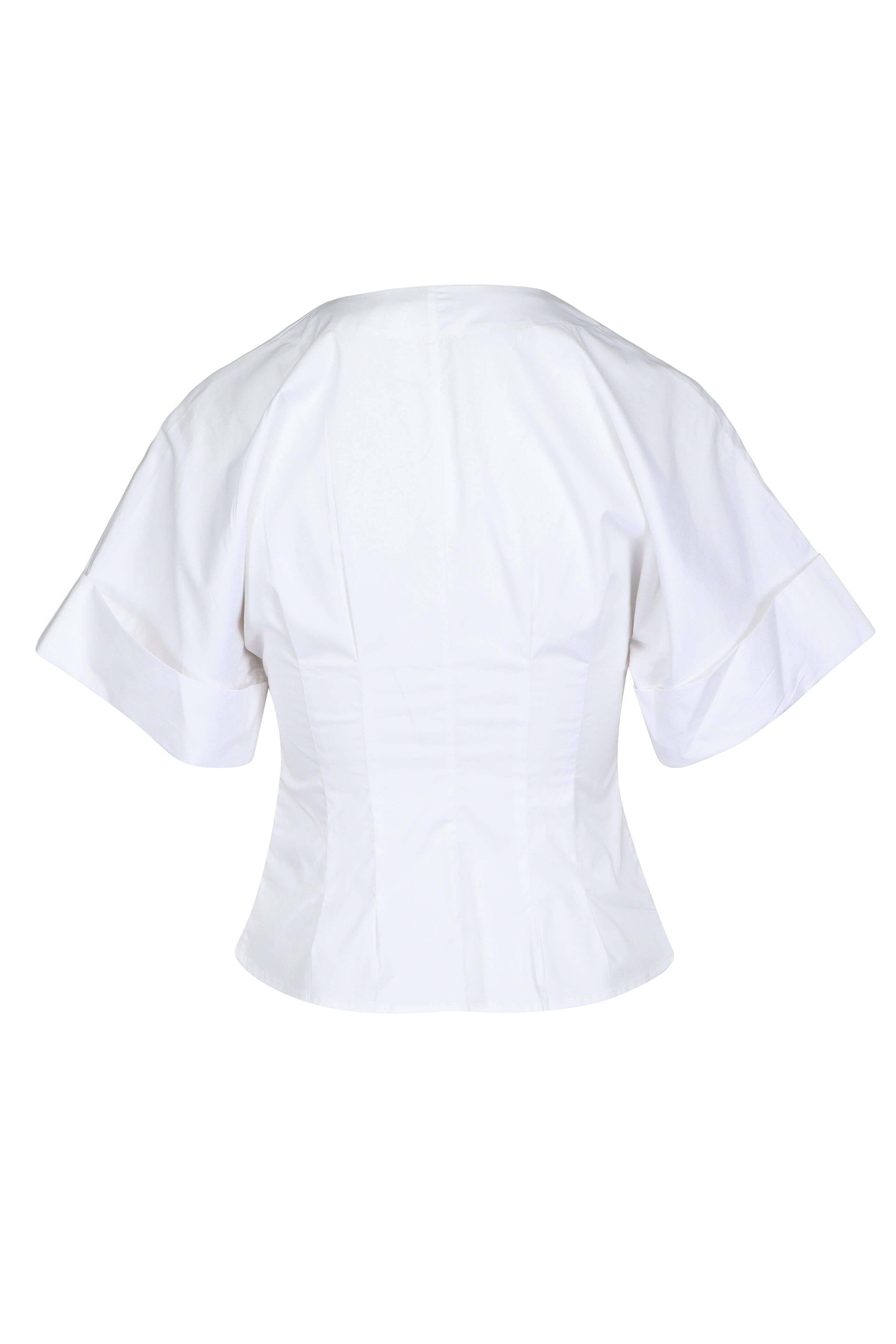 V-Neck with Button front closures. Elbow-length sleeves. Seamed at front and back. Imported. Fits true to size.. 98% Cotton 2% Elastane. Machine wash cold.