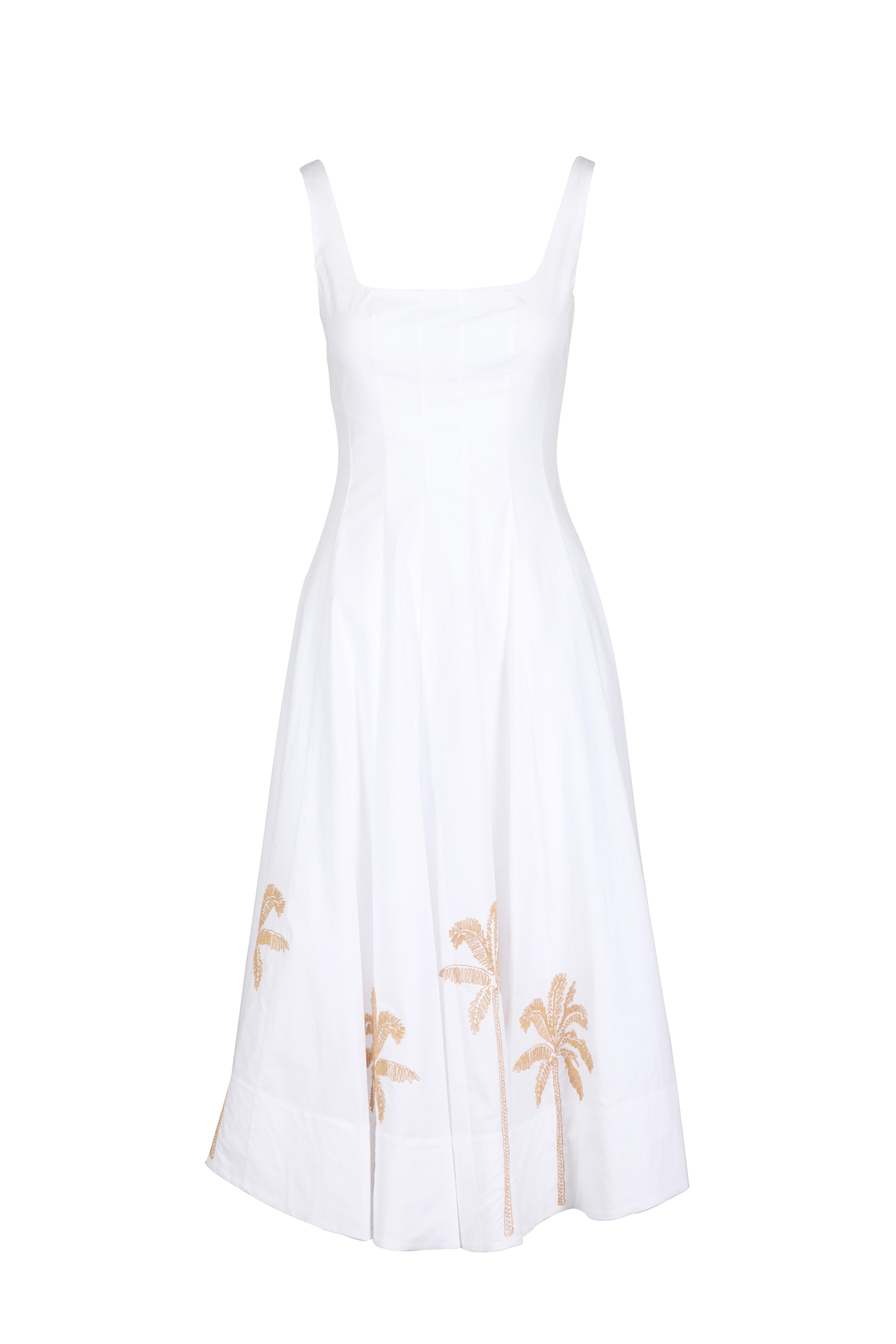 Square neck. Sleeveless. Hidden back-zip closure. Embroidered detailing. Imported. 98% Cotton 2% Elastane. Machine wash cold.