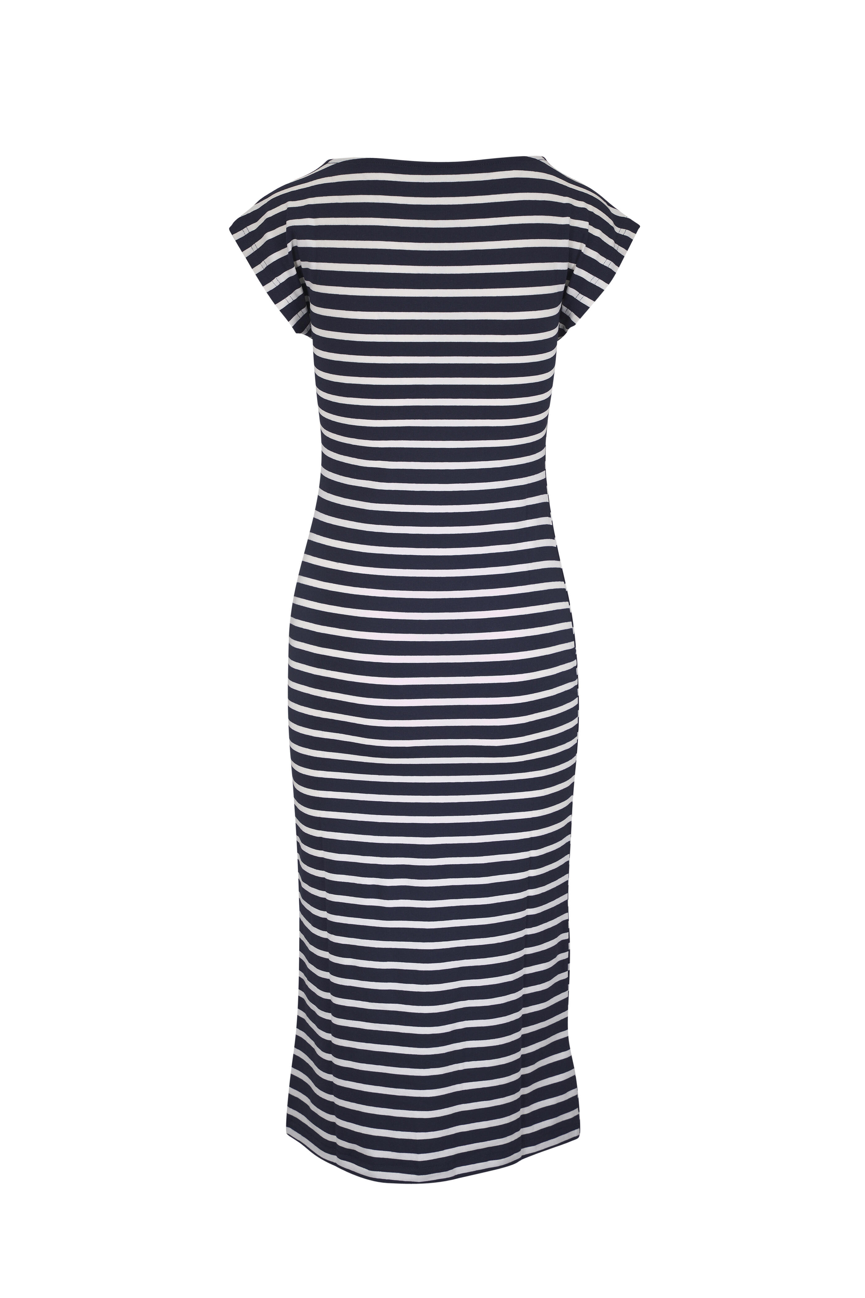 Round neckline. Slip-on style. Cap sleeves. Side-pleat detail. Imported. Length: 45 ½". 94.5% cotton, 5.5% elastane. Machine wash.