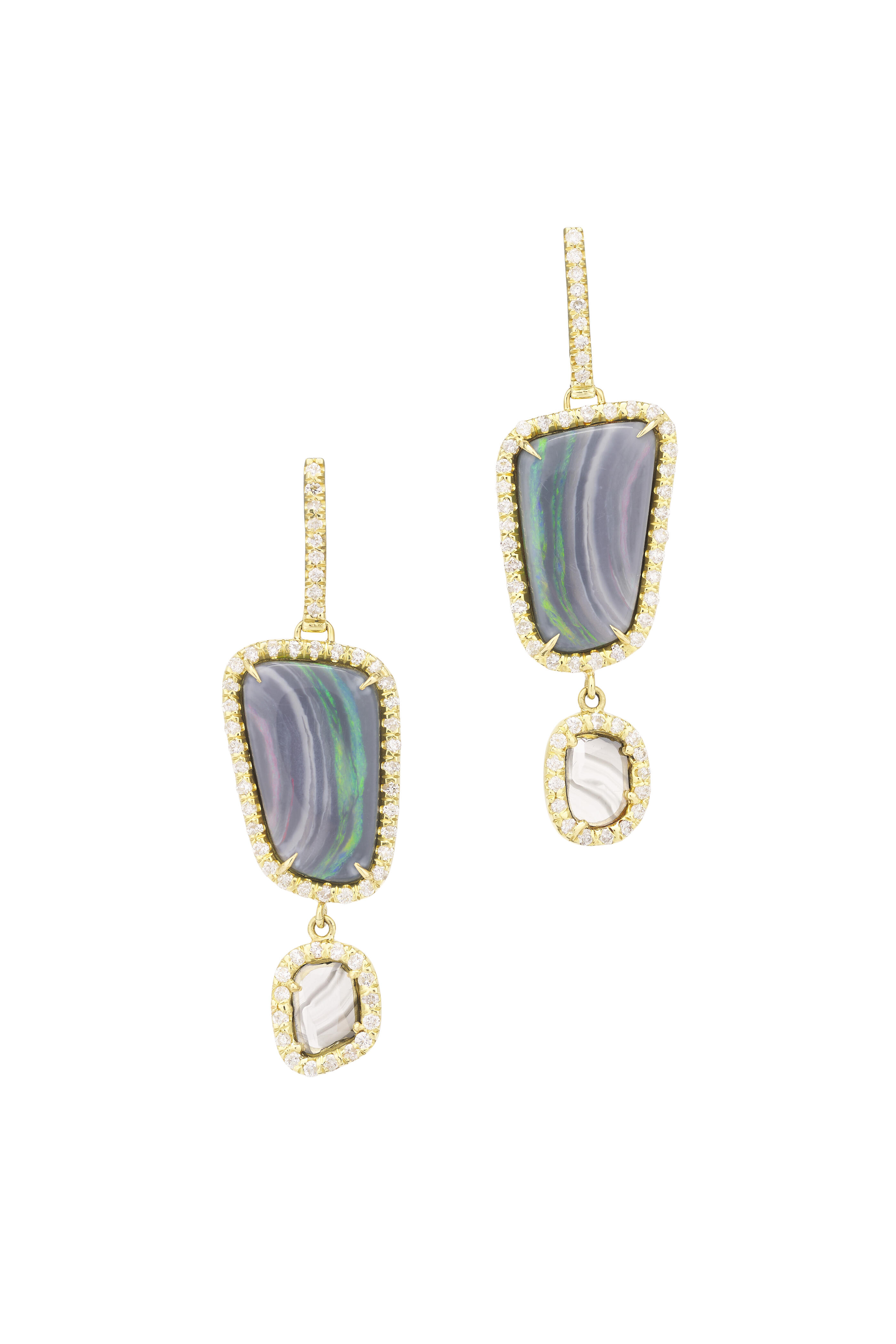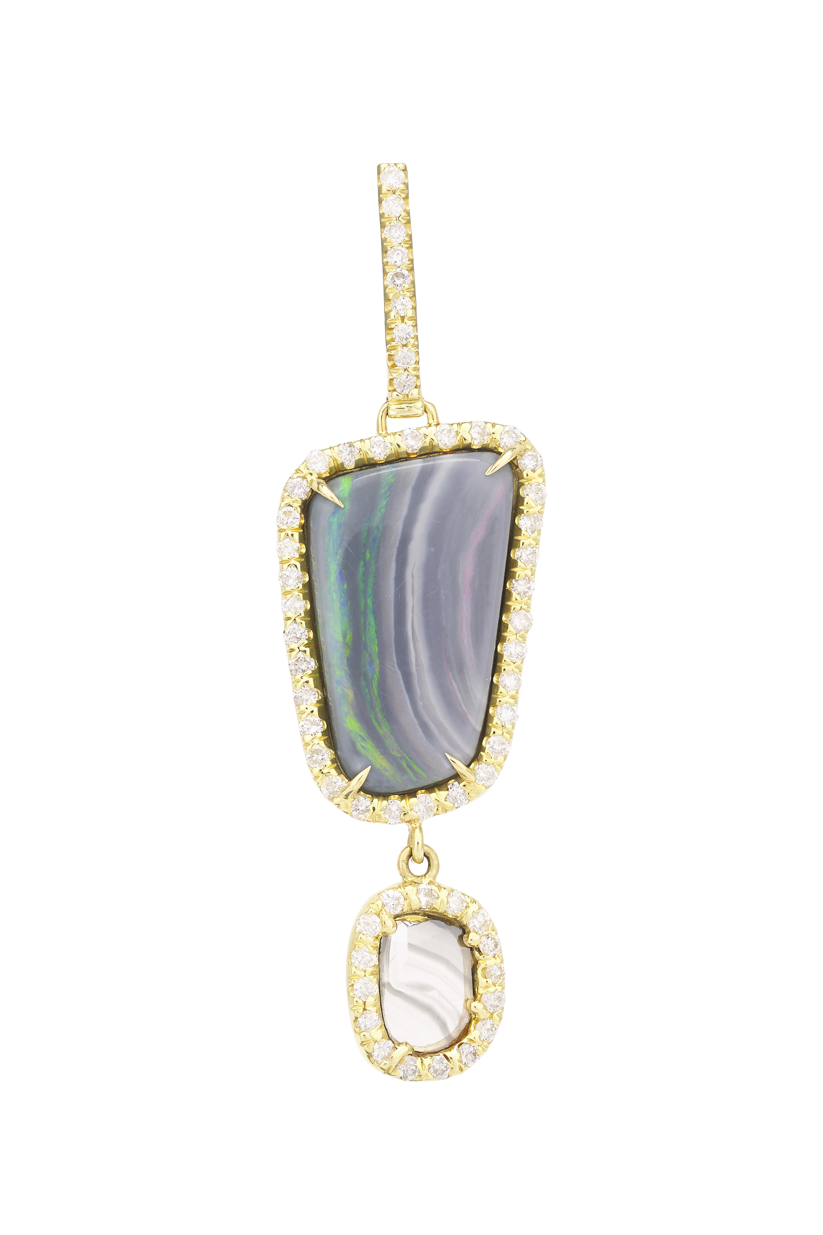 18k gold gilded. Black opal; 11.3 ct. Diamond slice; .6 ct. Diamond; 1.74 ct.