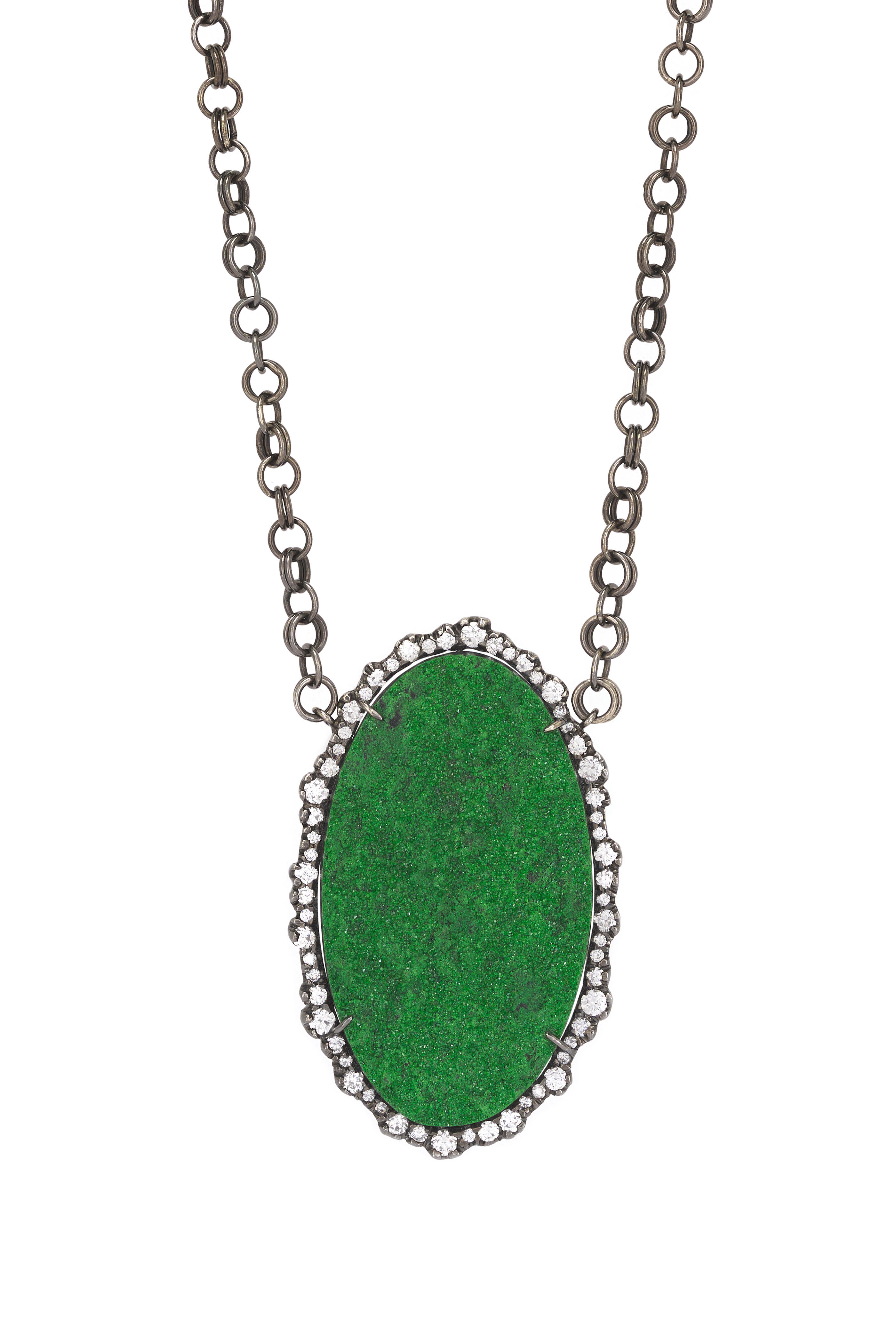 18k White Gold. 1.75 ct Oval Uvaravite Garnet. 17".