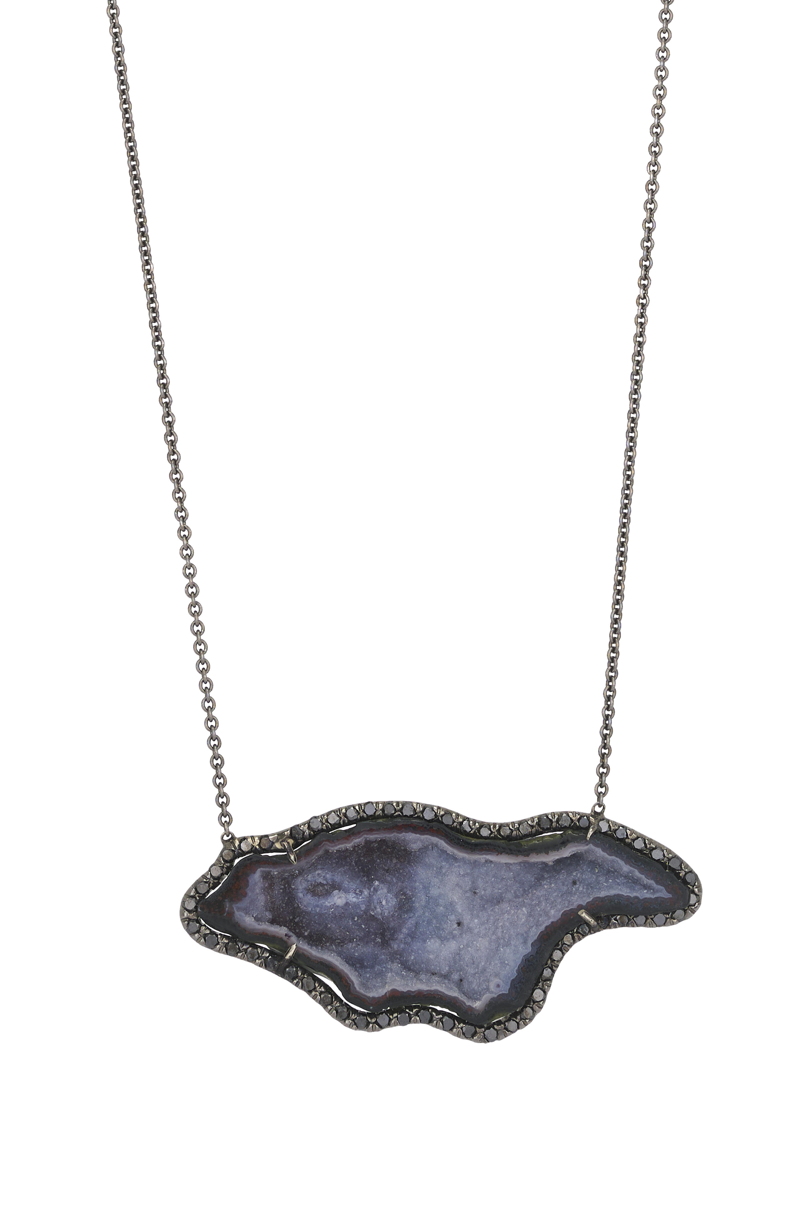 18k White Gold Ombre Gray Geode Pendant Necklace