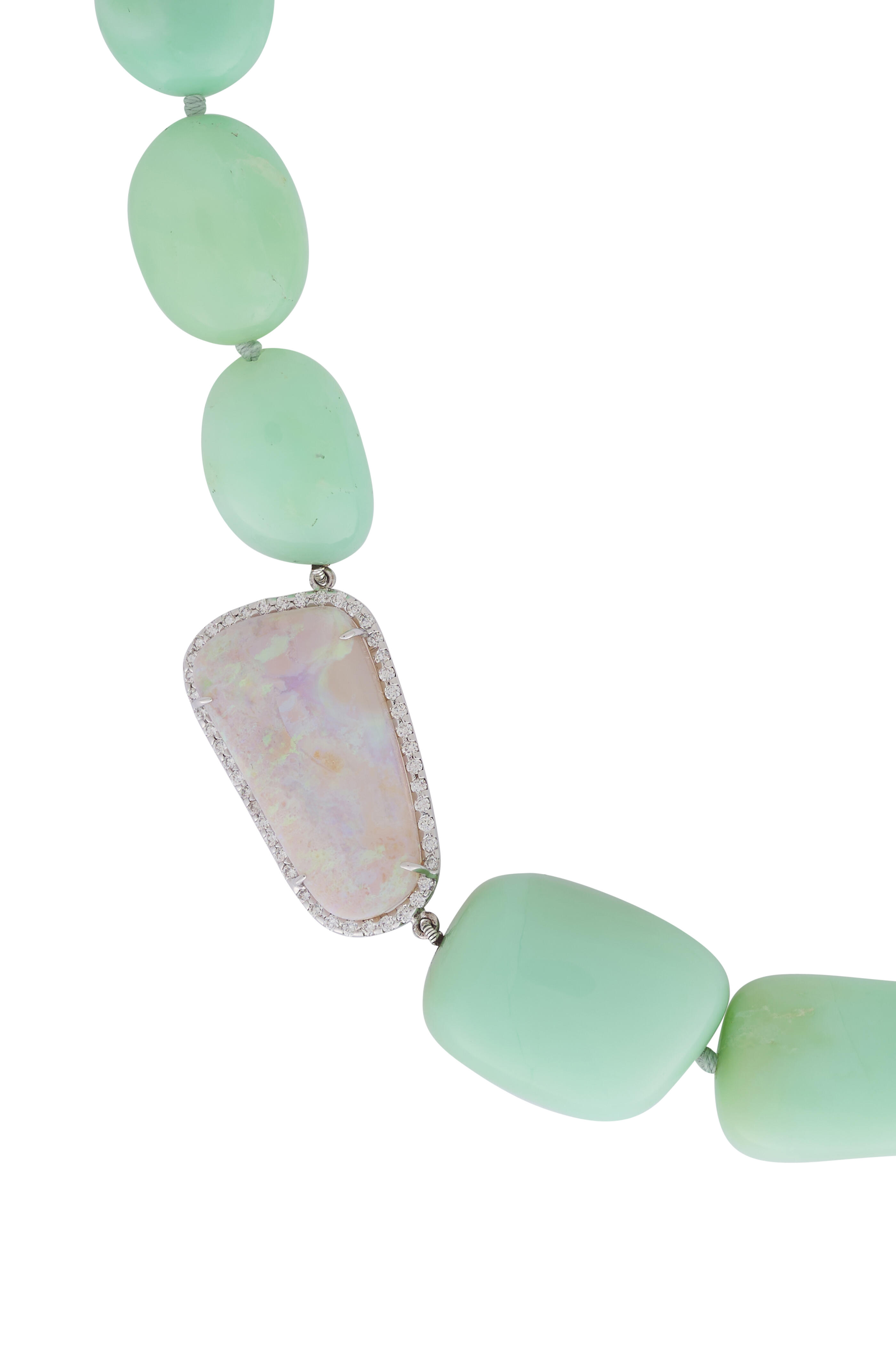 18k White Gold. 17.79 ct Opal. 0.70 ct Diamond. 0.68 ct Diamond. 16.5".