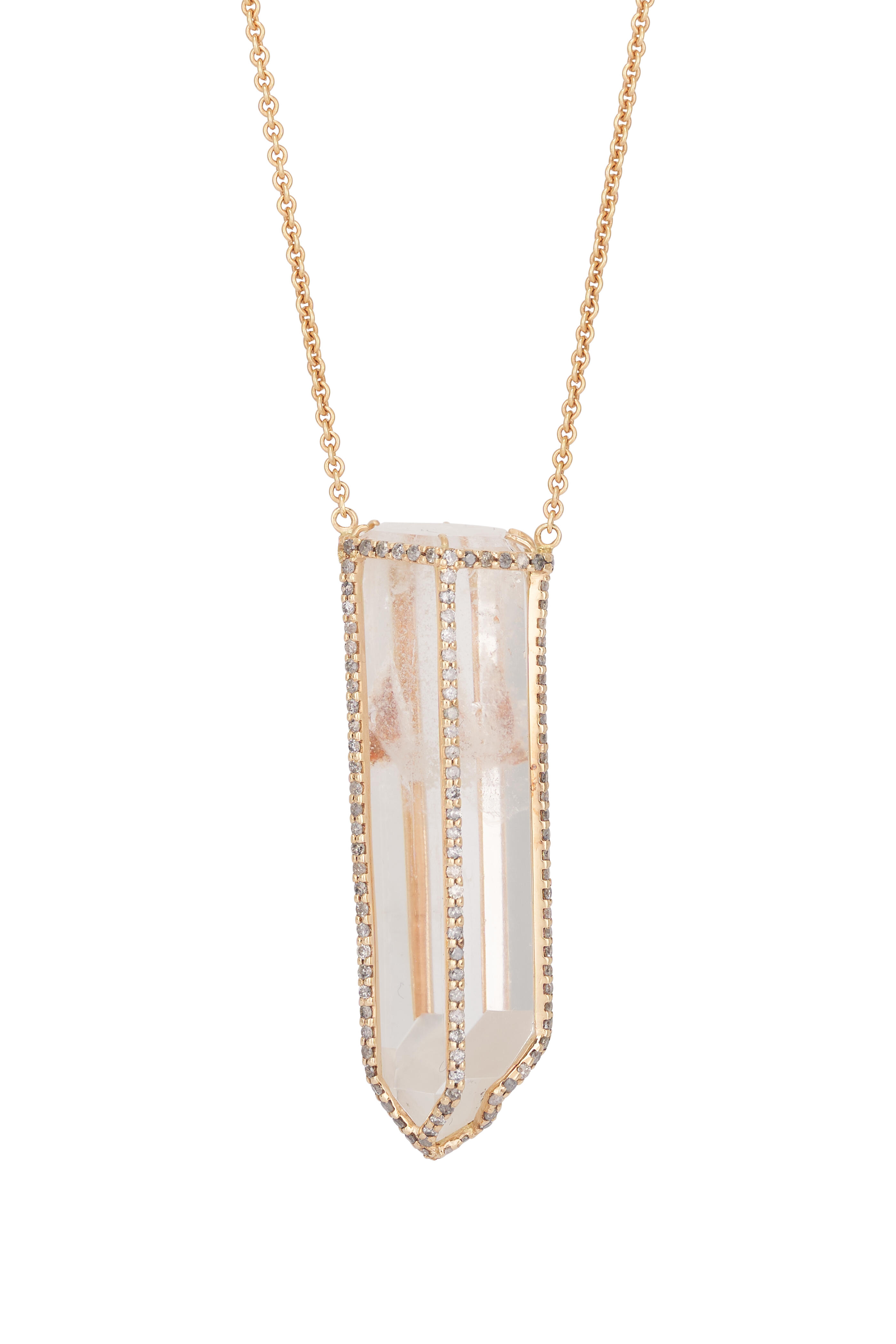 18k Rose Gold. 126.18 ct Crystal Quartz. 1.55 ct Gray Diamond. 24".