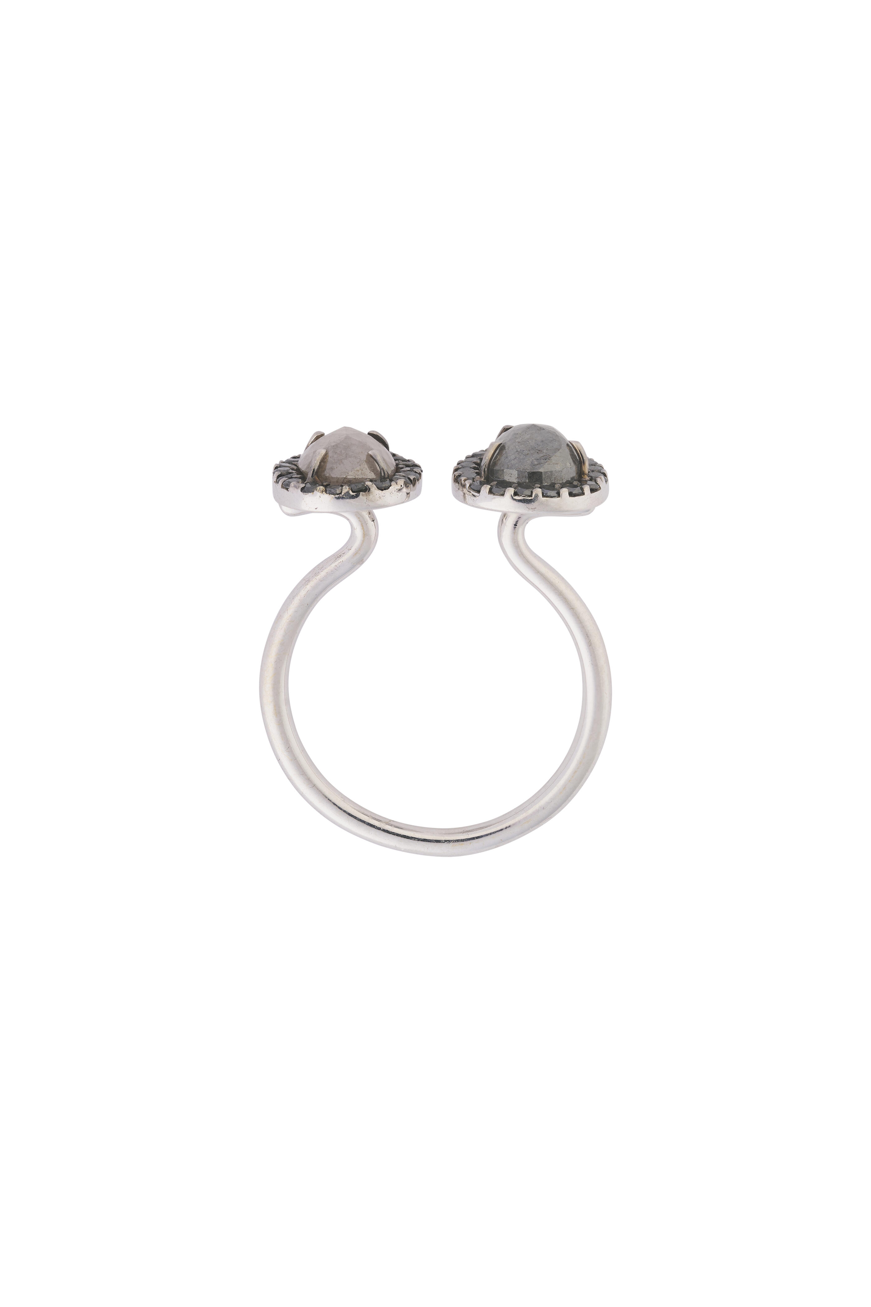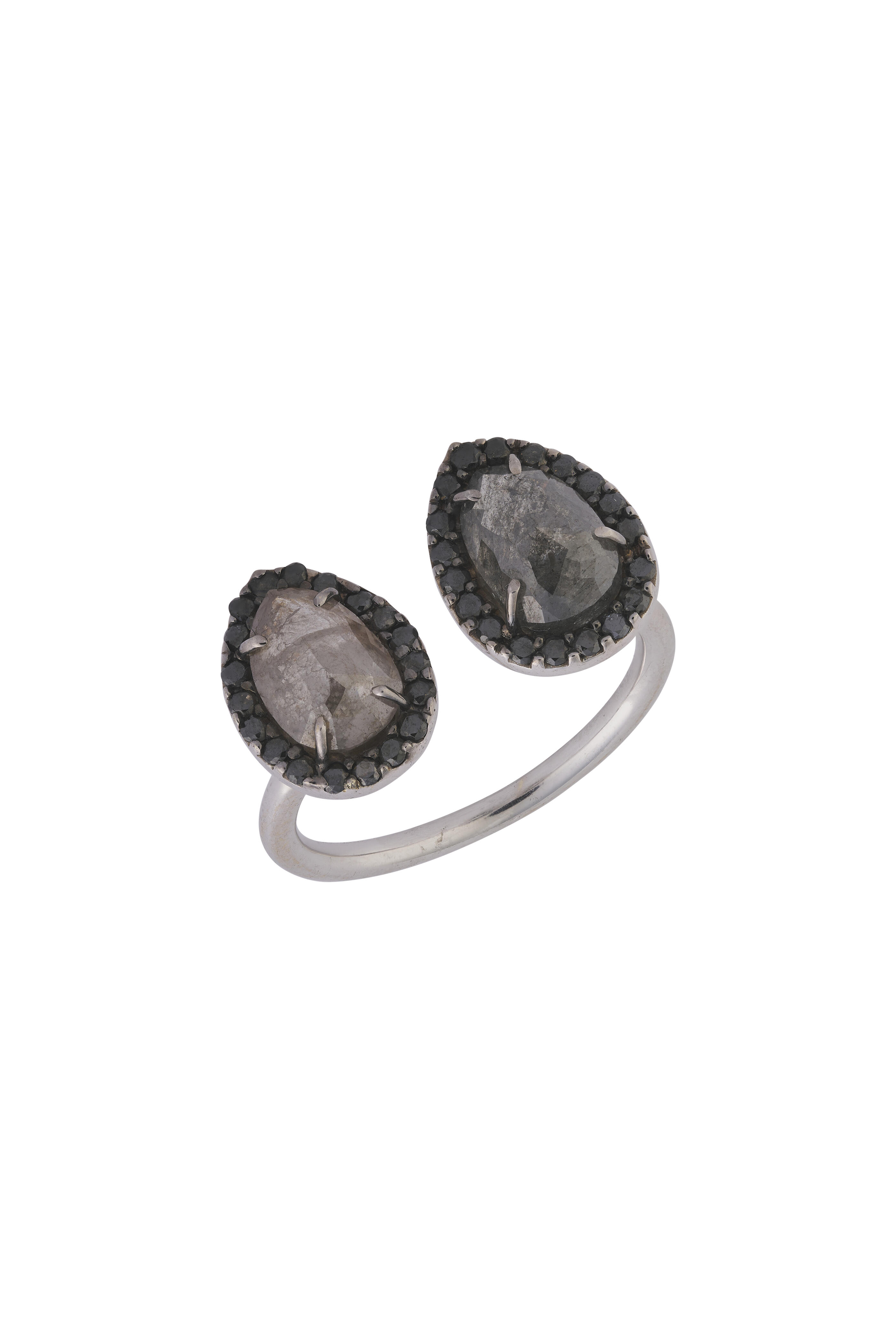18k white gold. Black white rose cut diamond; 3.25 ct. Black diamond; .42 ct.